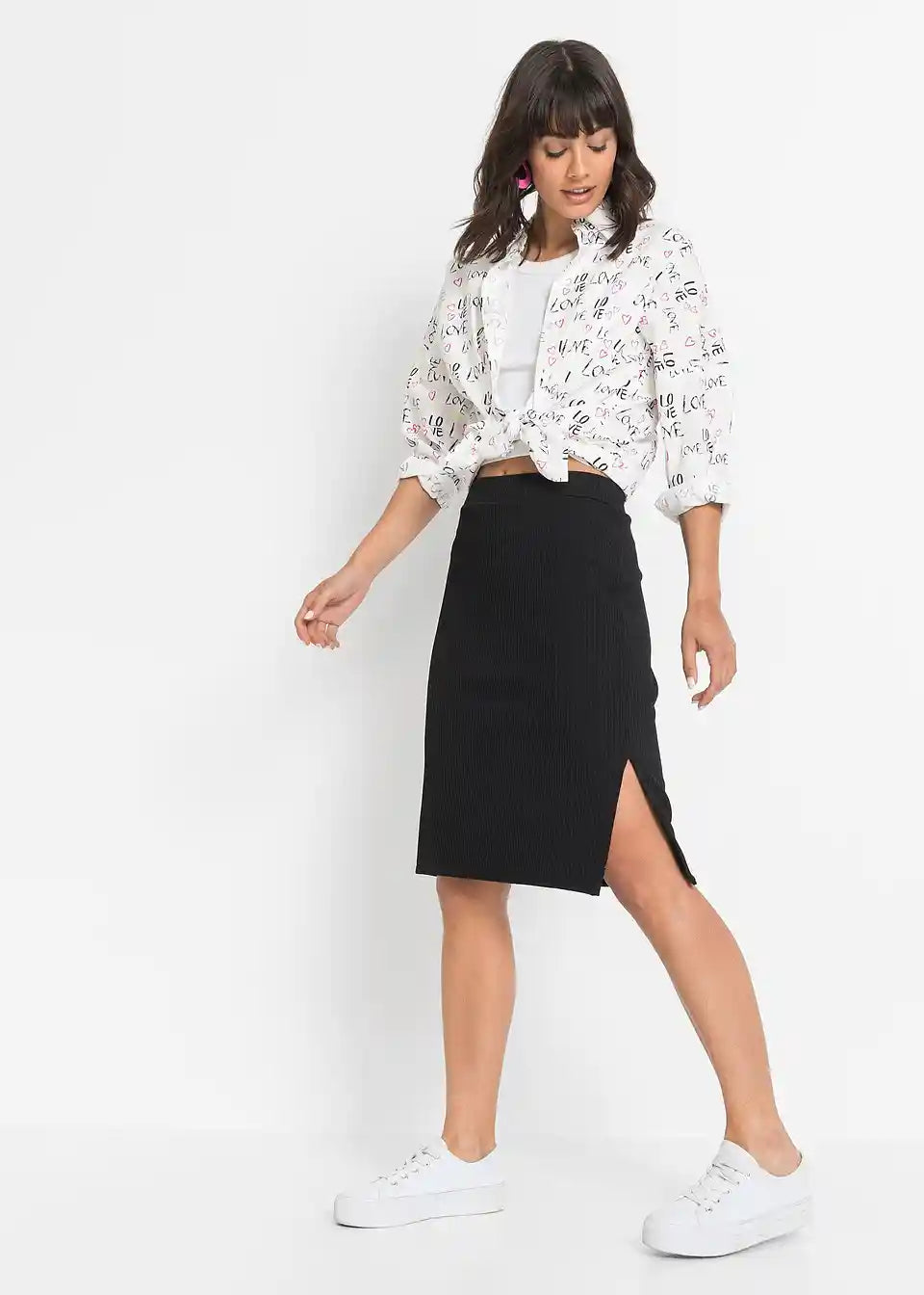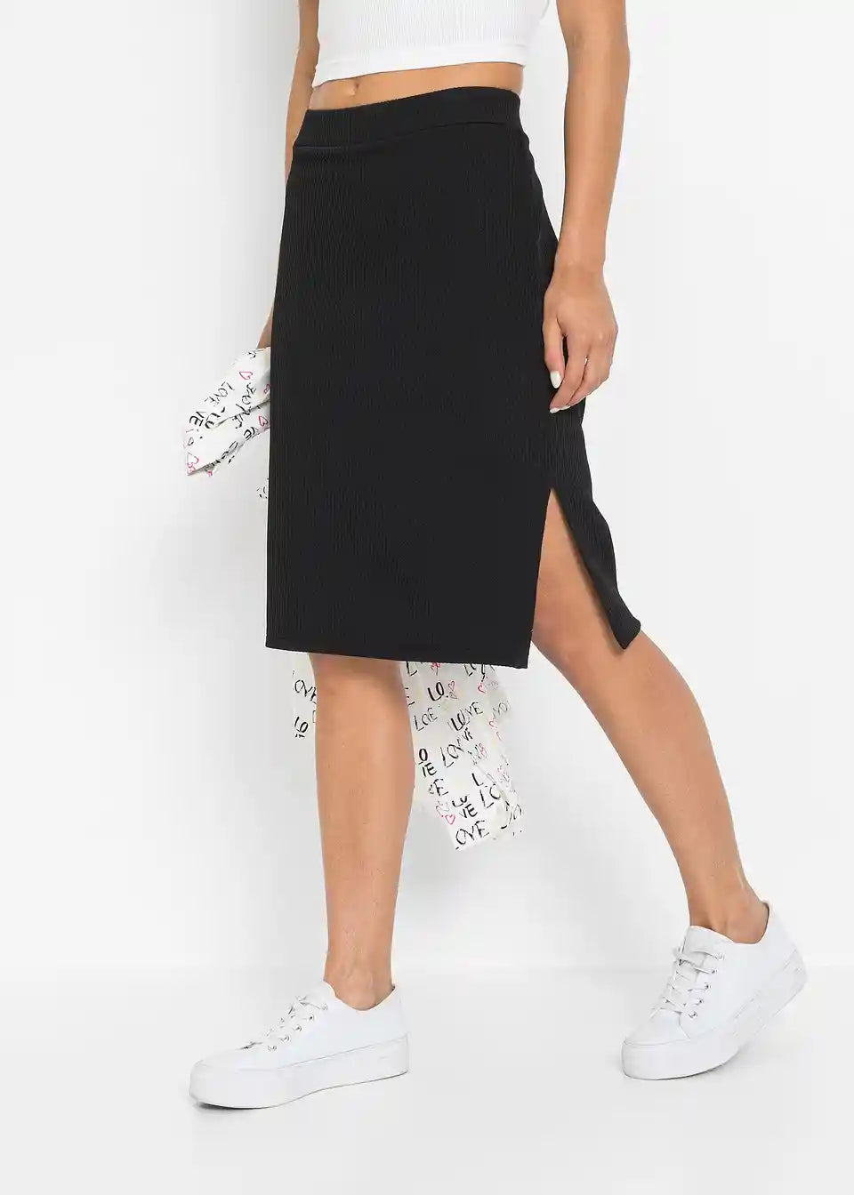 Privlačno krilo iz majicastega materiala z udobnim pasom, dolžine do kolen, s stranskim razporkom