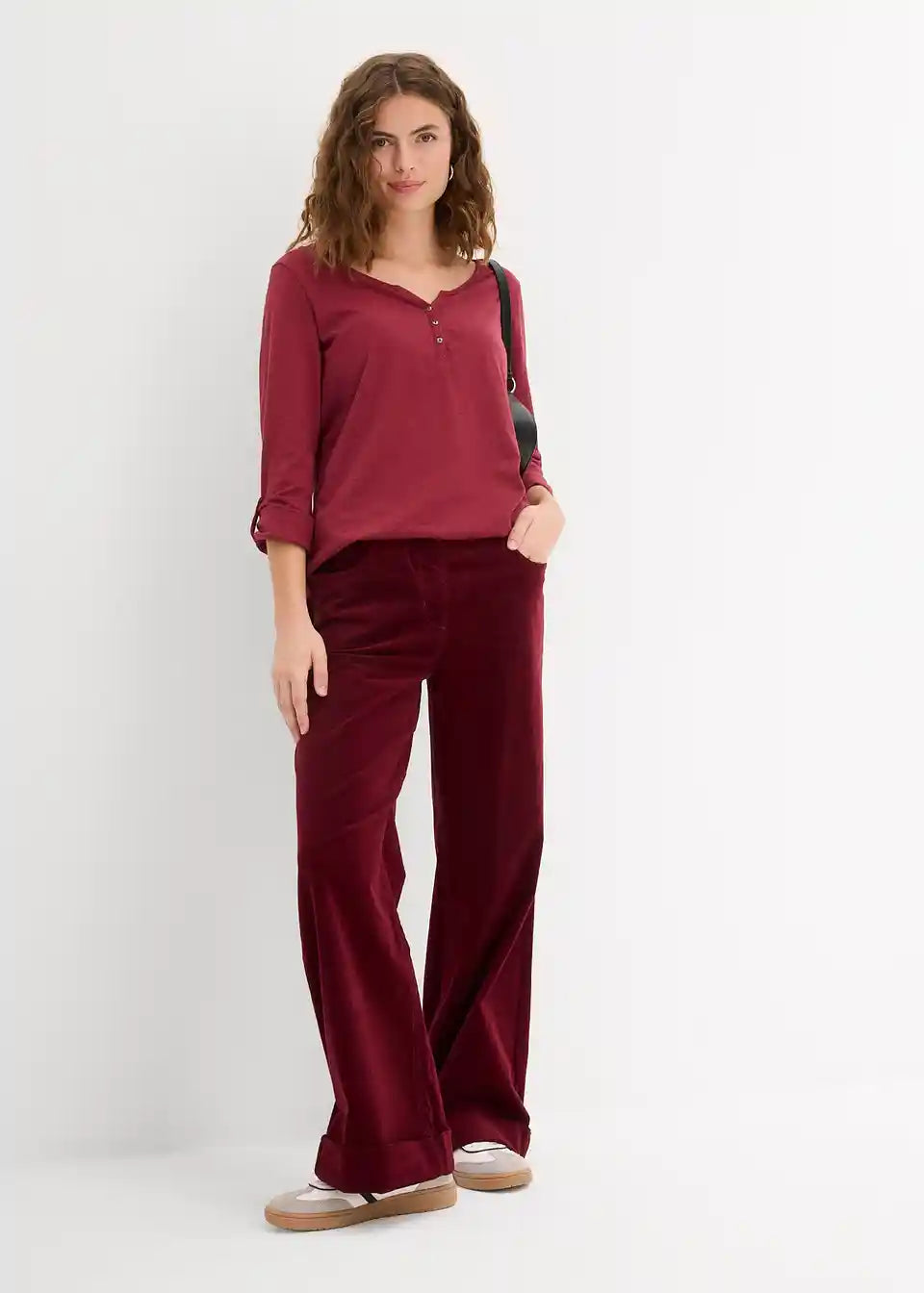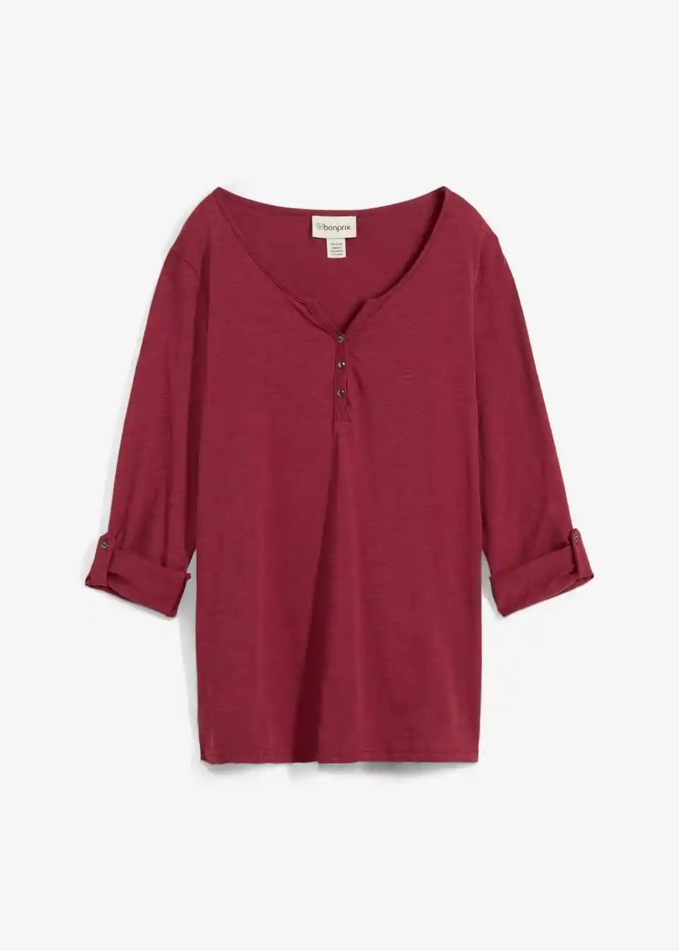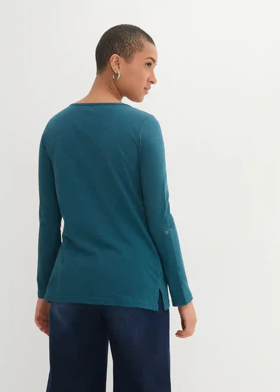 V tej majici z dolgimi rokavi lahko dame najdejo oblačilo za številne lepe kombinacije. Rokave je mogoče po potrebi enostavno zavihati in pritrditi z gumbom ter trakom. Mehko majicno blago in ohlapen kroj zagotavljata prijetno udobje pri nošenju. Na straneh ima majica znamke bpc razporke, ki poudarjajo občutek lahkotnosti in svobode gibanja.