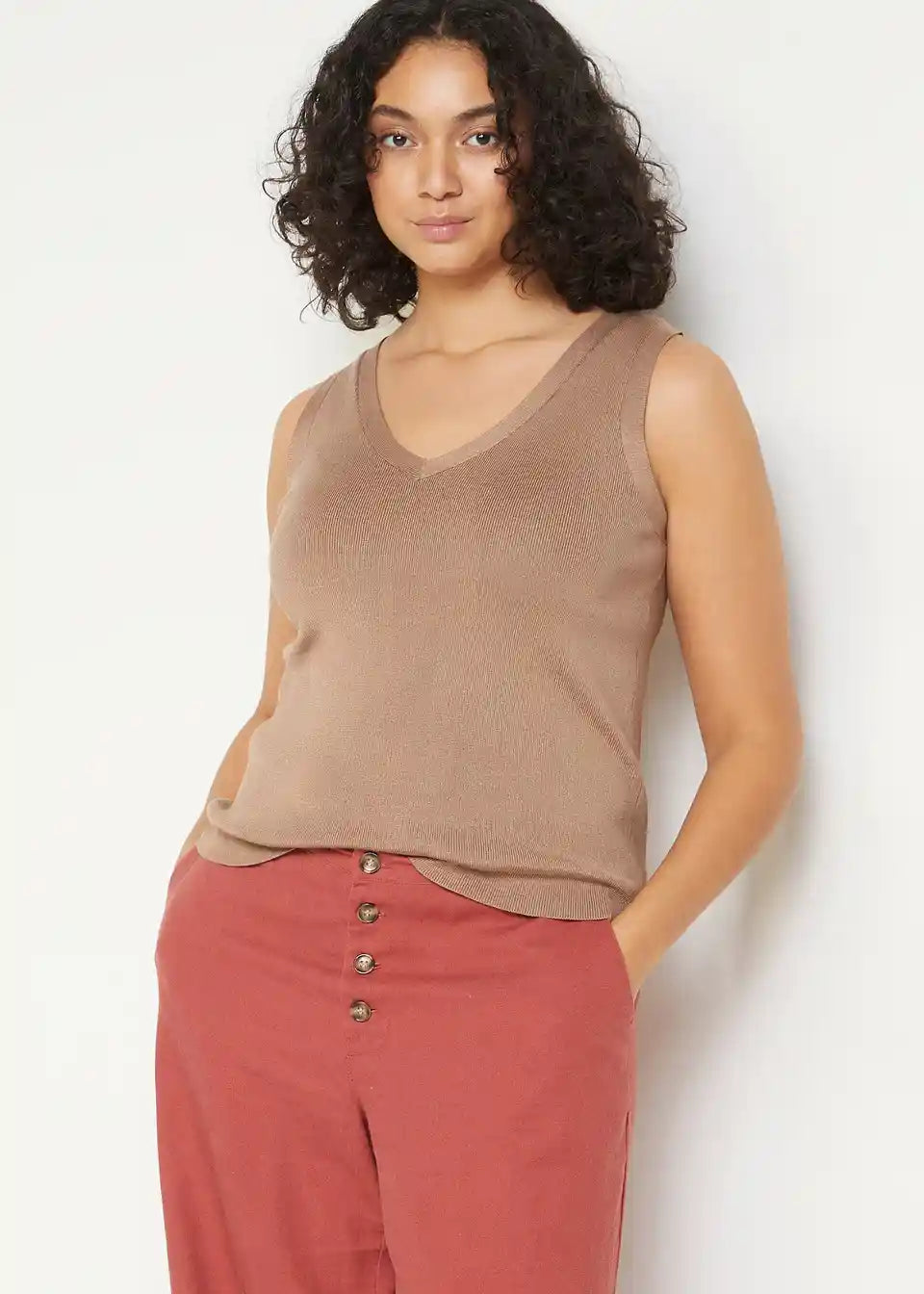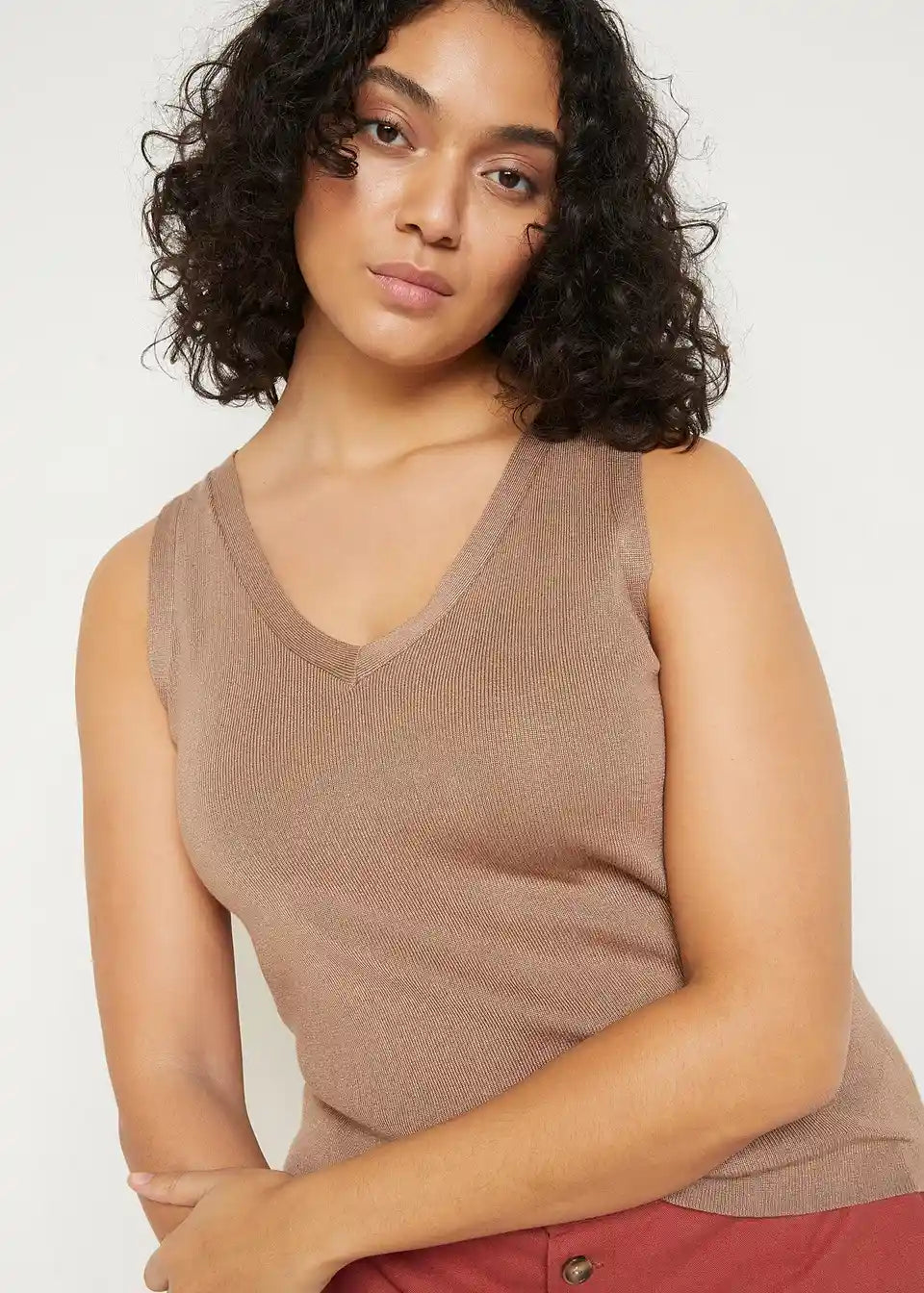 Lahek pleten top z V-izrezom
