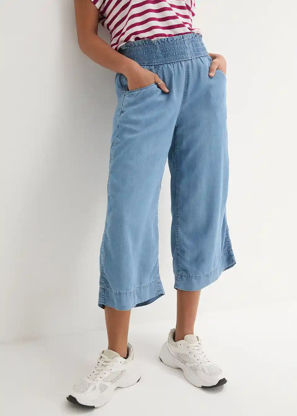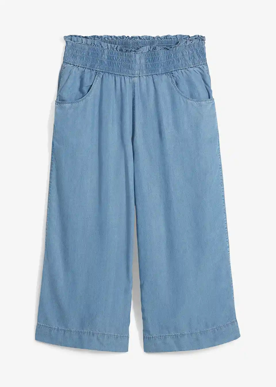 Zračna poletna hlača iz mehkega Lyocell materiala s širokim krojem in lepimi detajli na pasu