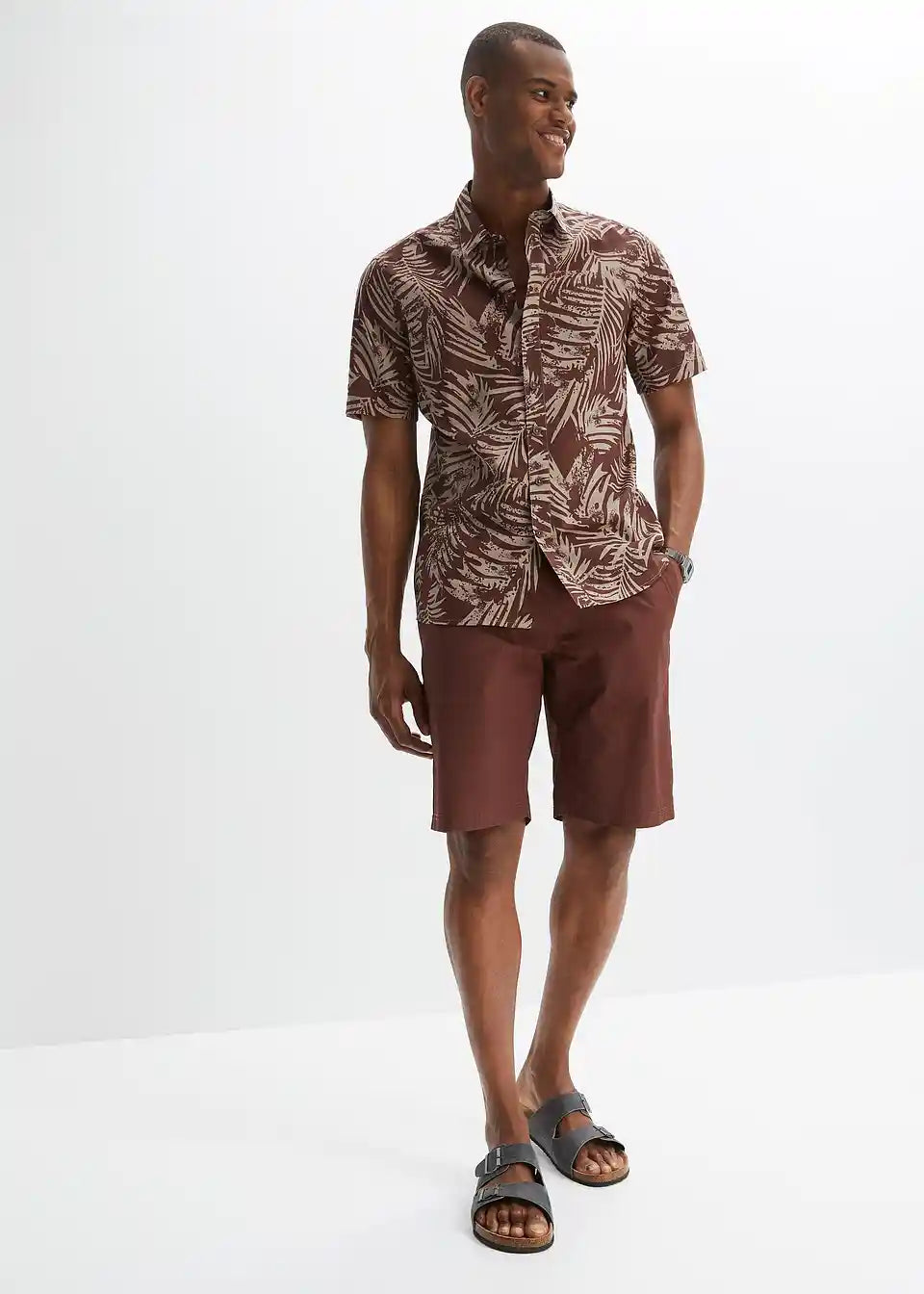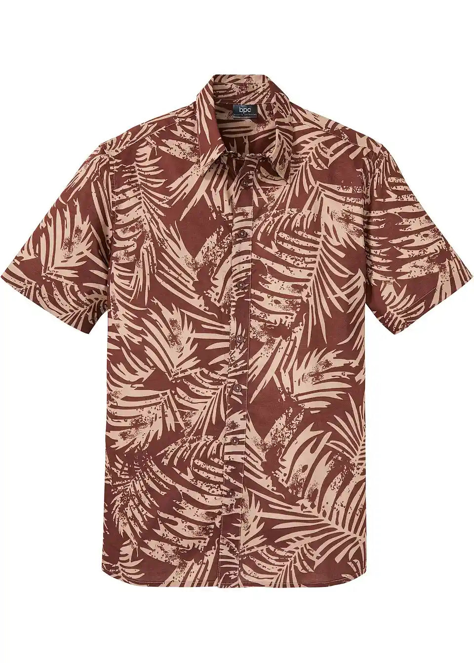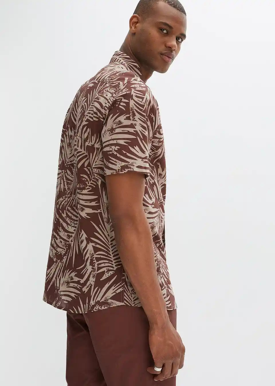 Lahka moška srajca s kratkimi rokavi in cvetličnim potiskom.