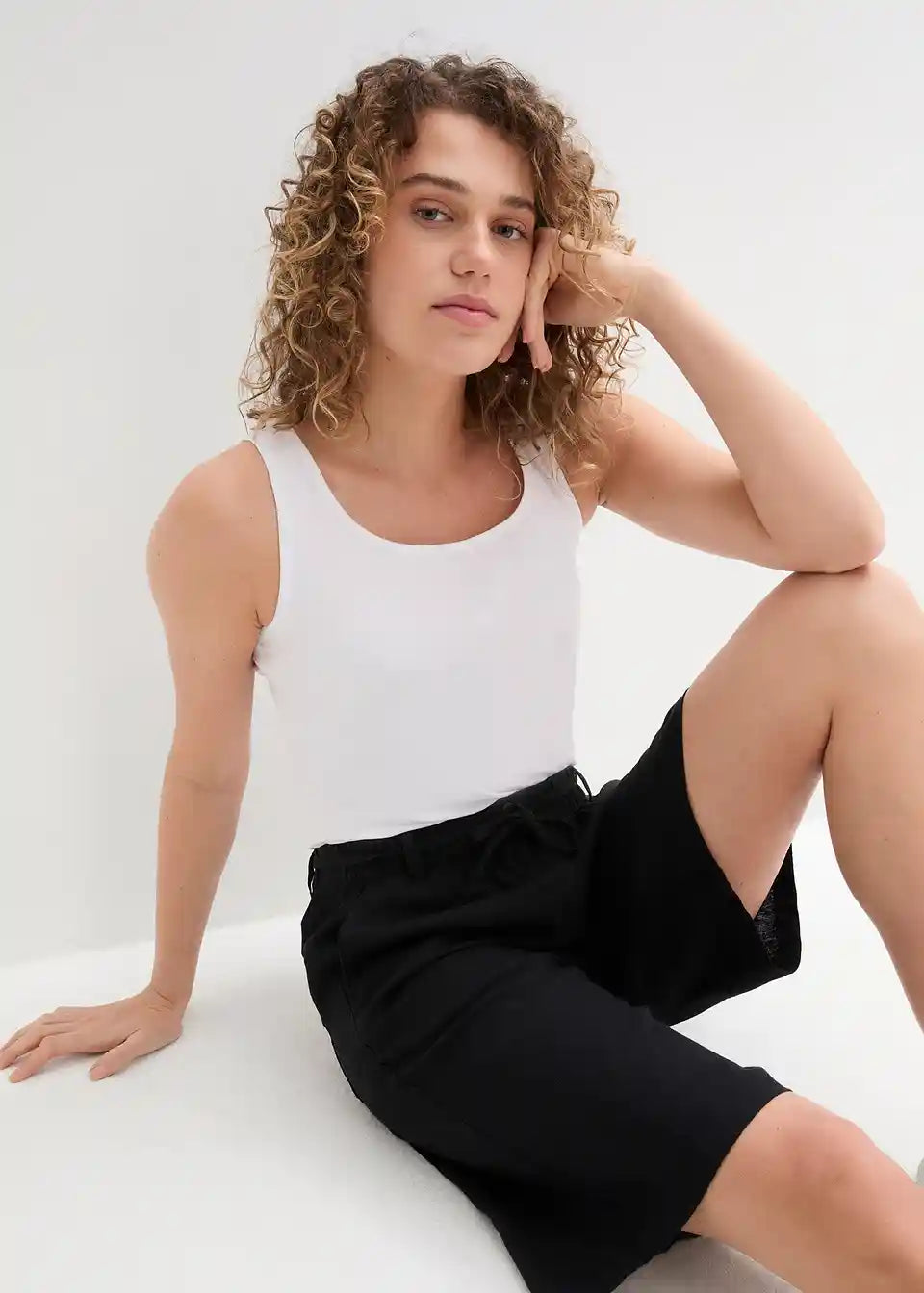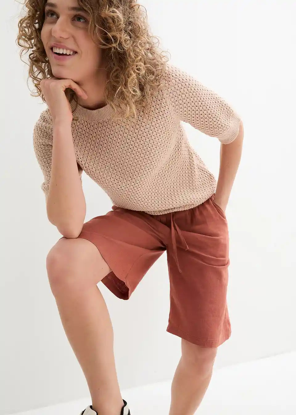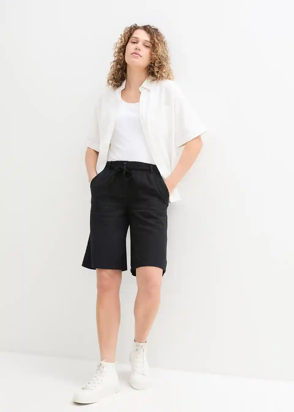 Kolenčkani kratki hlače iz zračne mešanice lana in viskoze