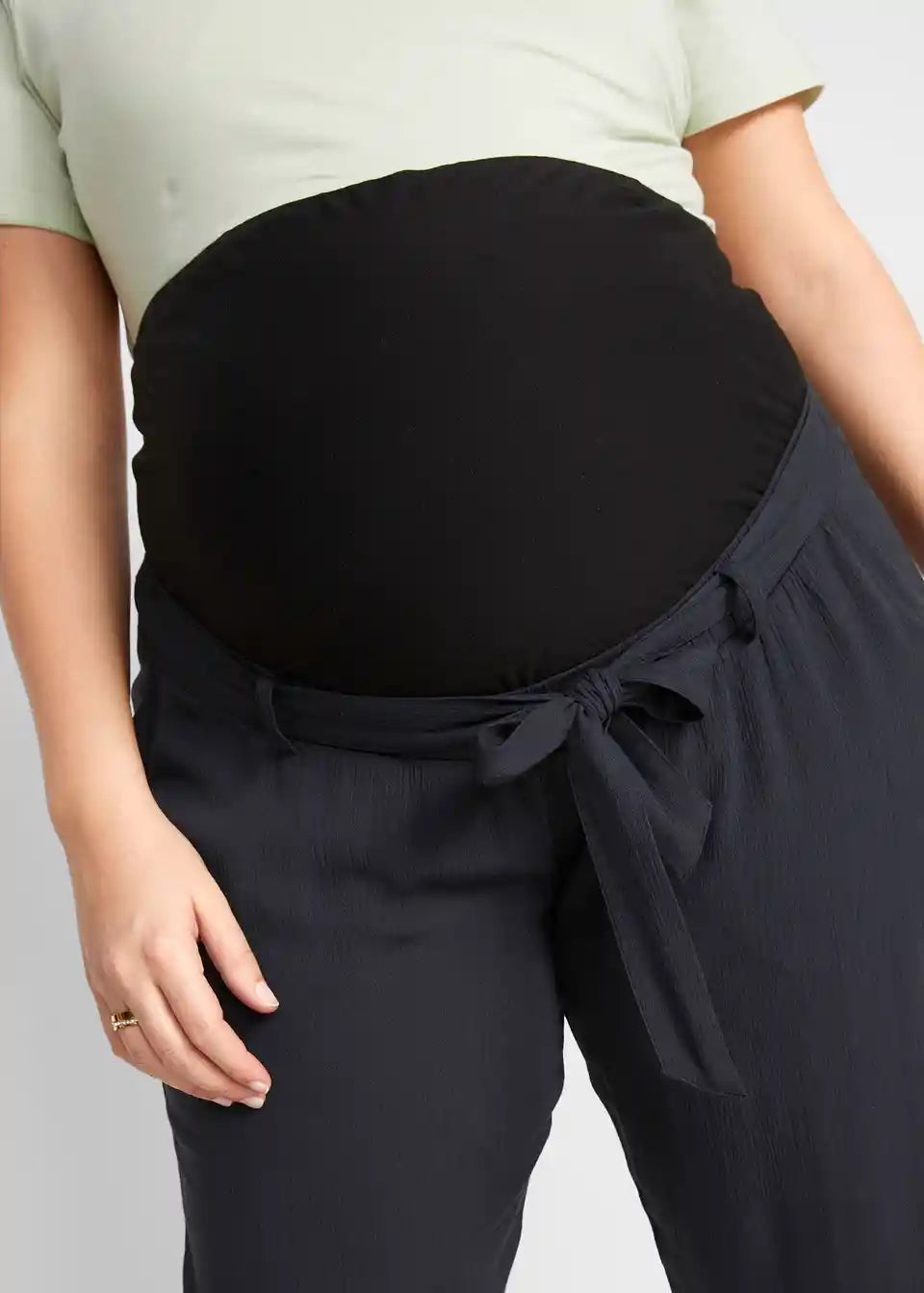 lahke nosečniške hlače z zavezovalnim trakom in bočnim žepom