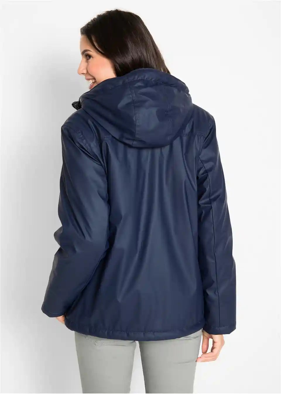 Zahvaljujoč rahlo gumiranemu materialu ta prehodna jakna zanesljivo ščiti pred dežjem in mrazom. Notranja podloga iz prijetno mehkega flisa nudi izjemno udobje pri nošenju. Prehodno jakno bpc je mogoče s praktično dvosmerno zadrgo odpreti tudi od spodaj. Z elastičnimi zateznimi vrvicami na robu lahko enostavno in hitro uravnavate širino. Velika kapuca poudari sproščen in športen videz jakne.