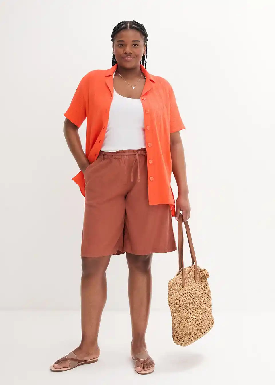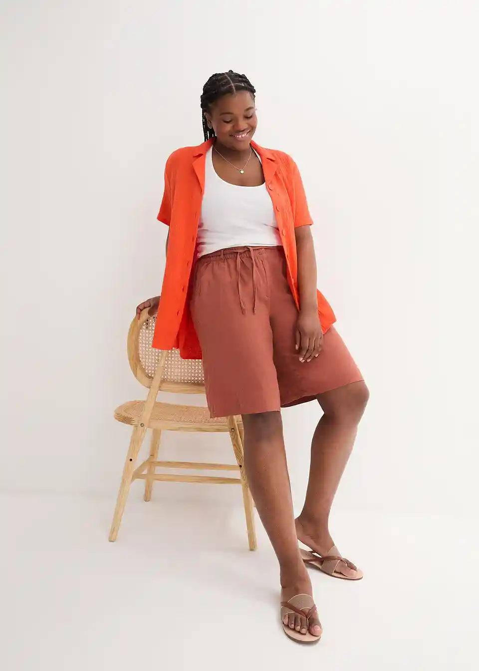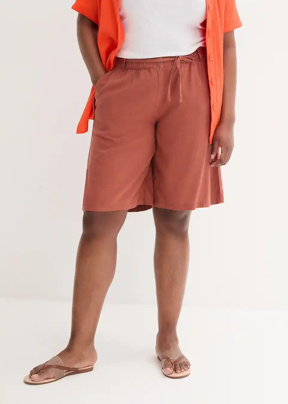 Hlače do kolen iz zračne mešanice lana in viskoze