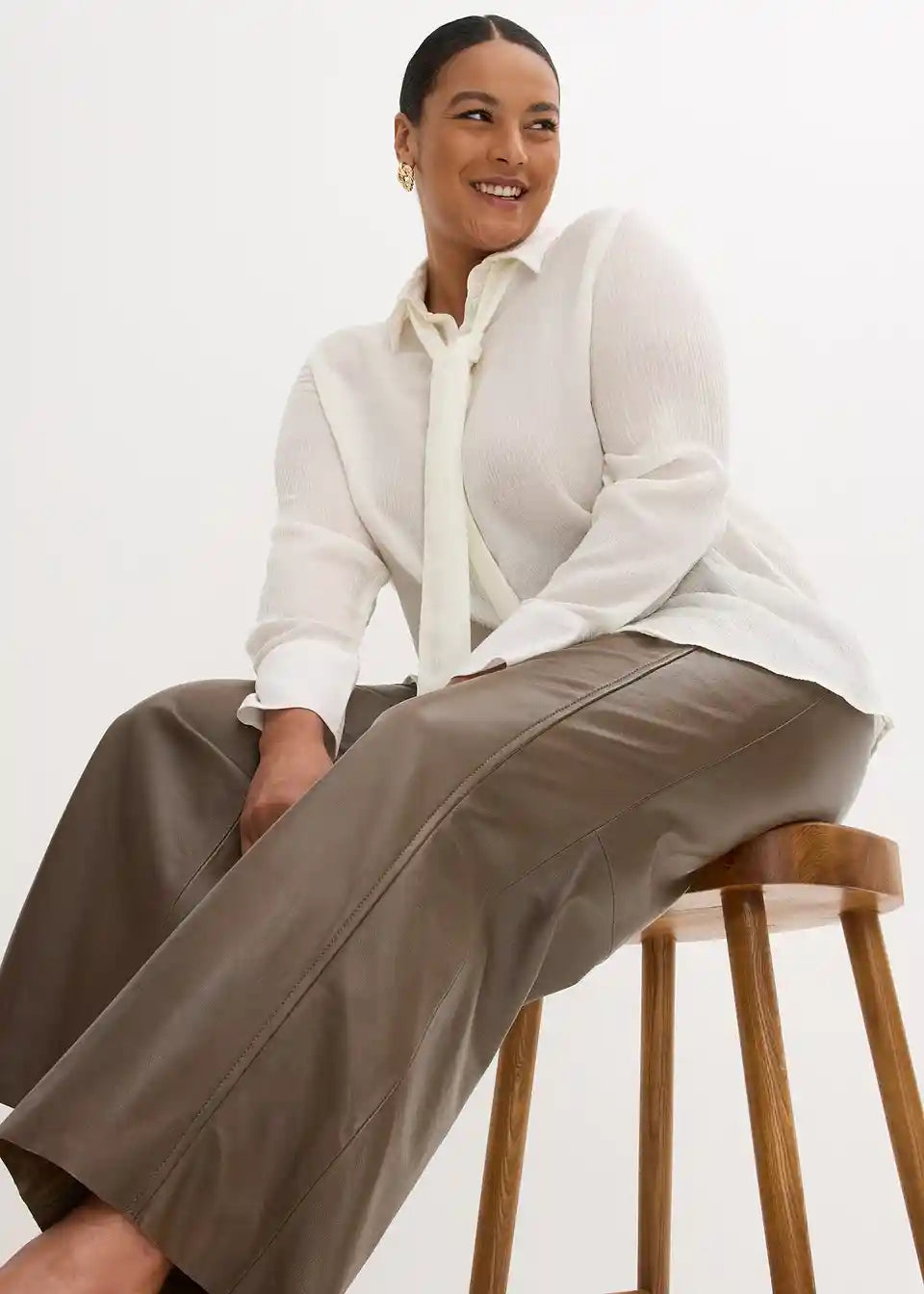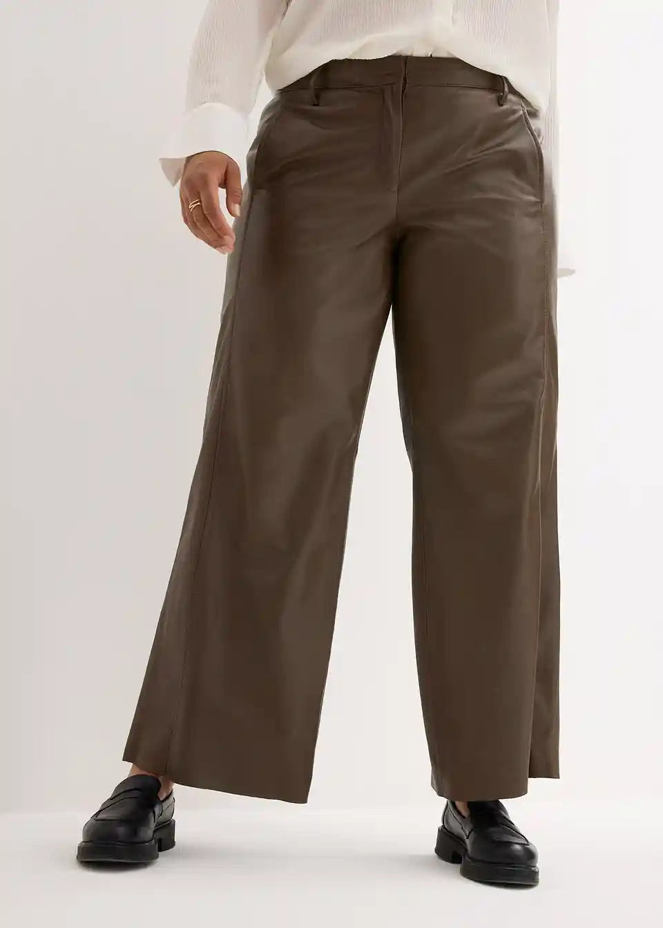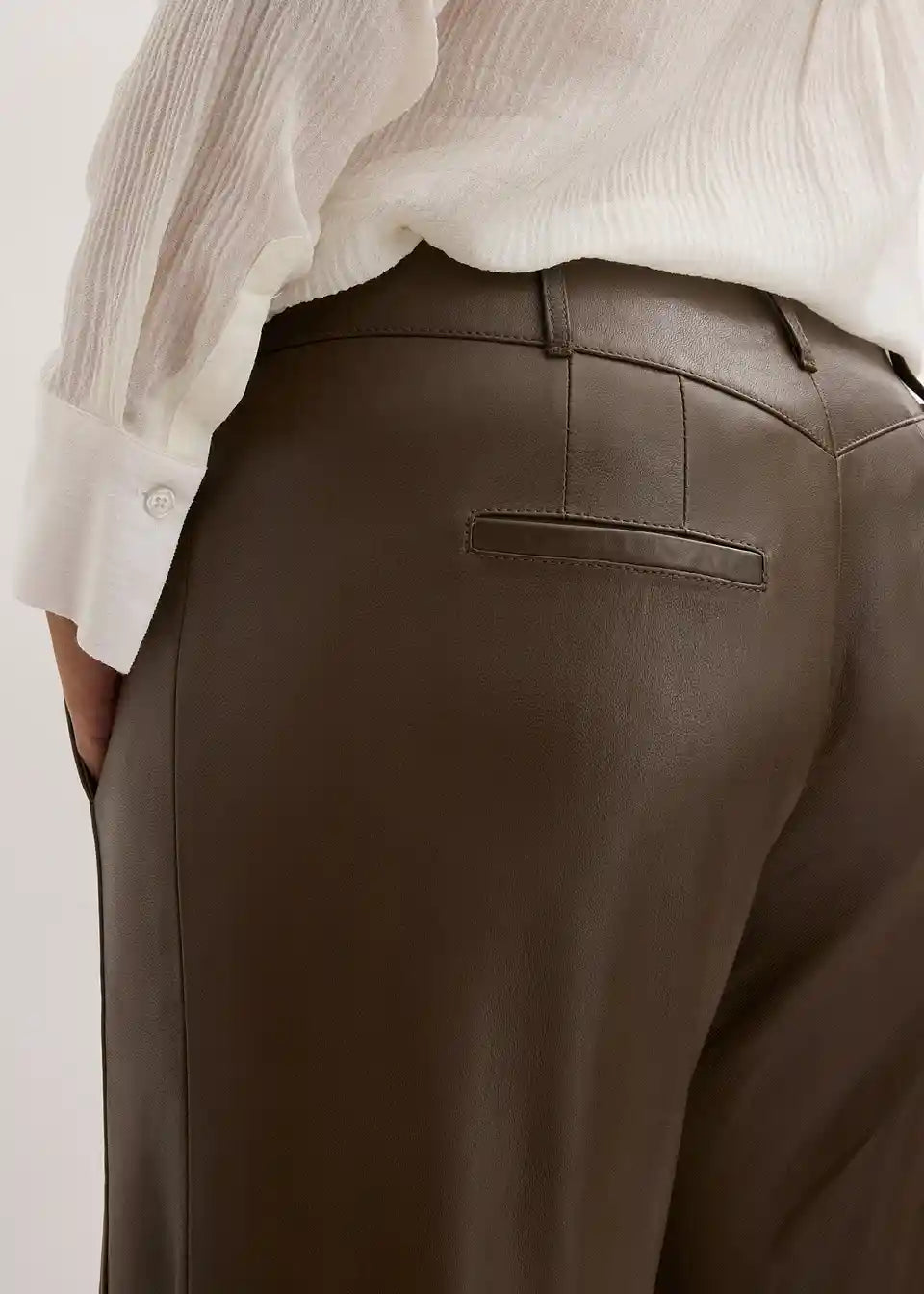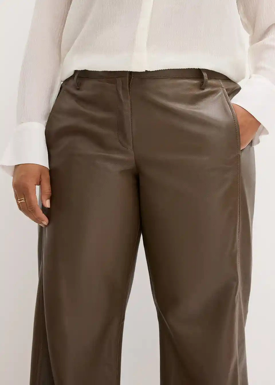 Moderne in prefinjene Marlene hlače iz jagnječjega nappa usnja, s podlogo na kolenih