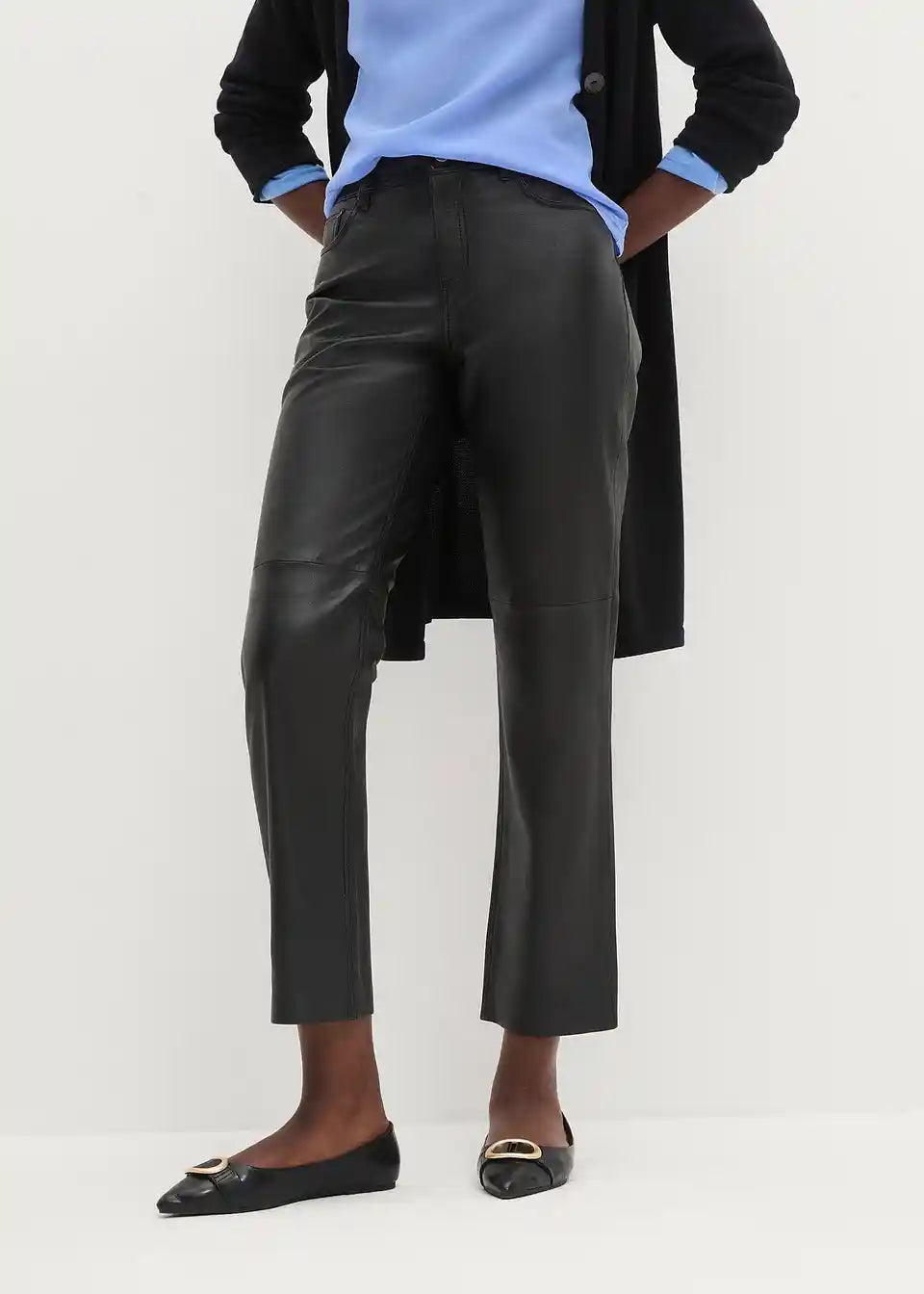 Elegantne usnjene hlače iz visokokakovostnega lammnappa usnja, s podlogo na kolenih