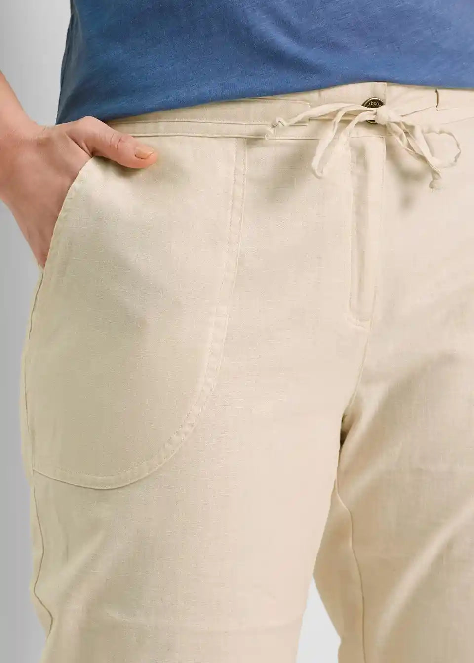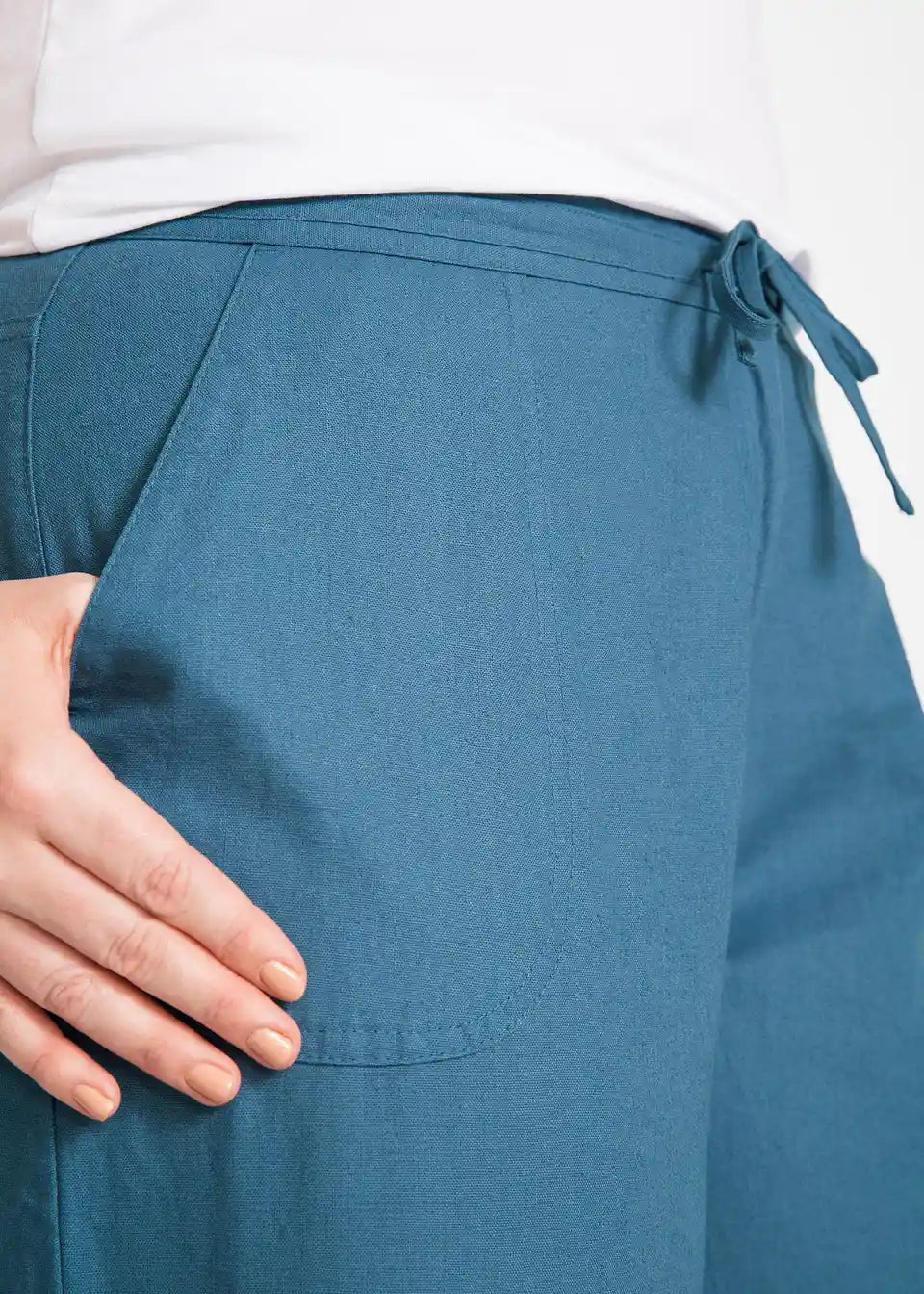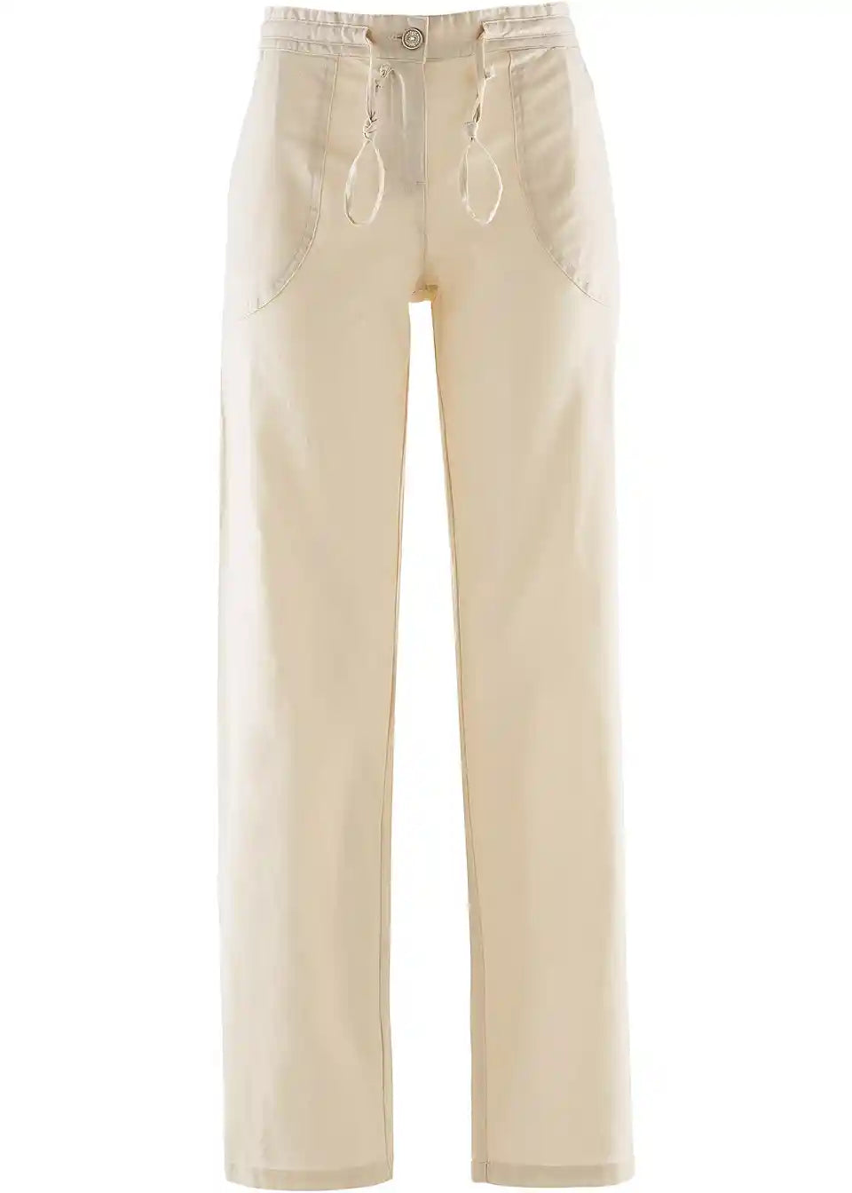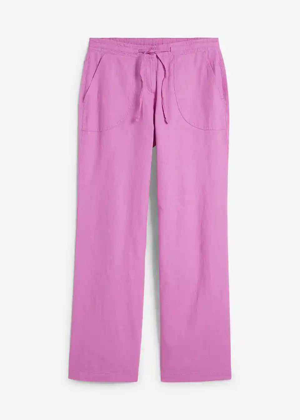 Te široko krojene lanene hlače znamke bpc so odlične za toplejše dni. Lahkotna in zračna tkanina naredi model udoben, pas pa je z vrvico prilagodljiv. Dolge lanene hlače so mehko oprane in oblikovane s prednjima dvema velikima žepoma ter dvema našitima žepoma na zadnji strani.