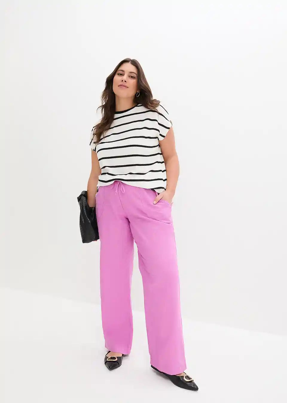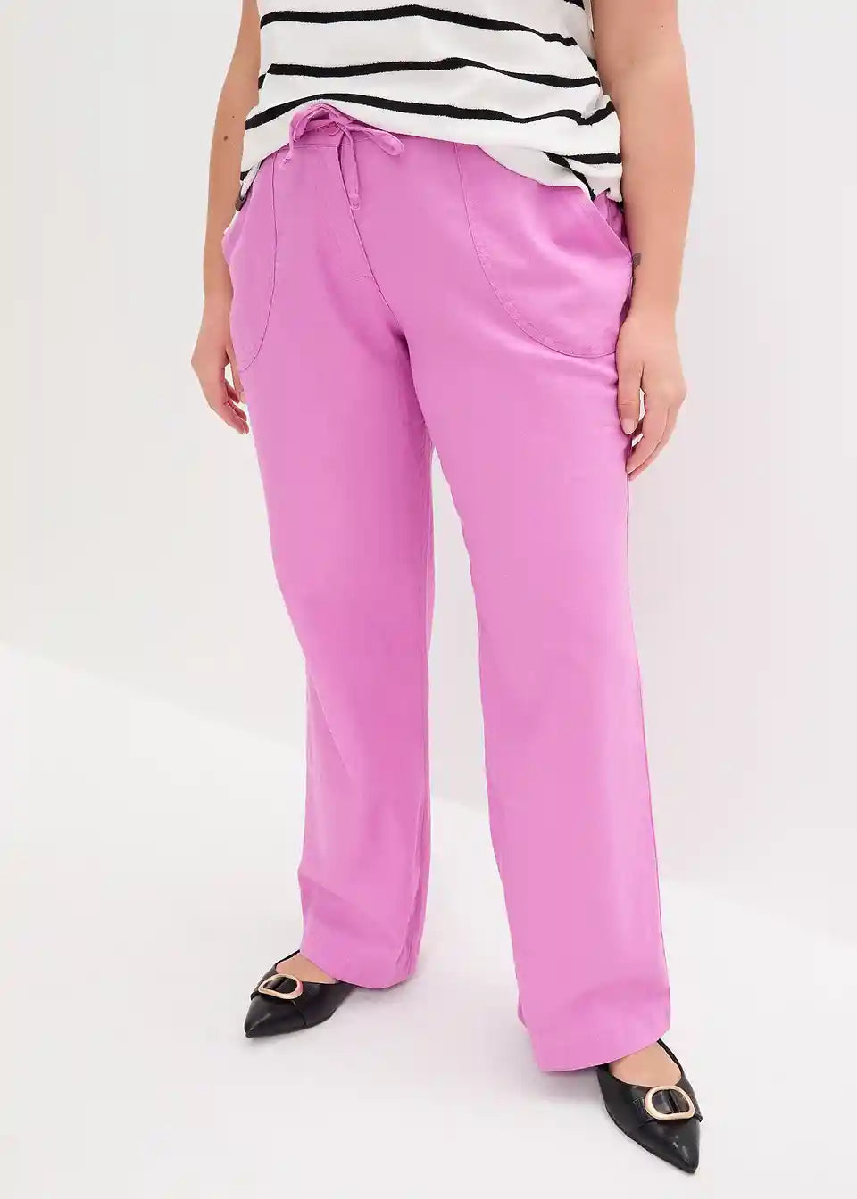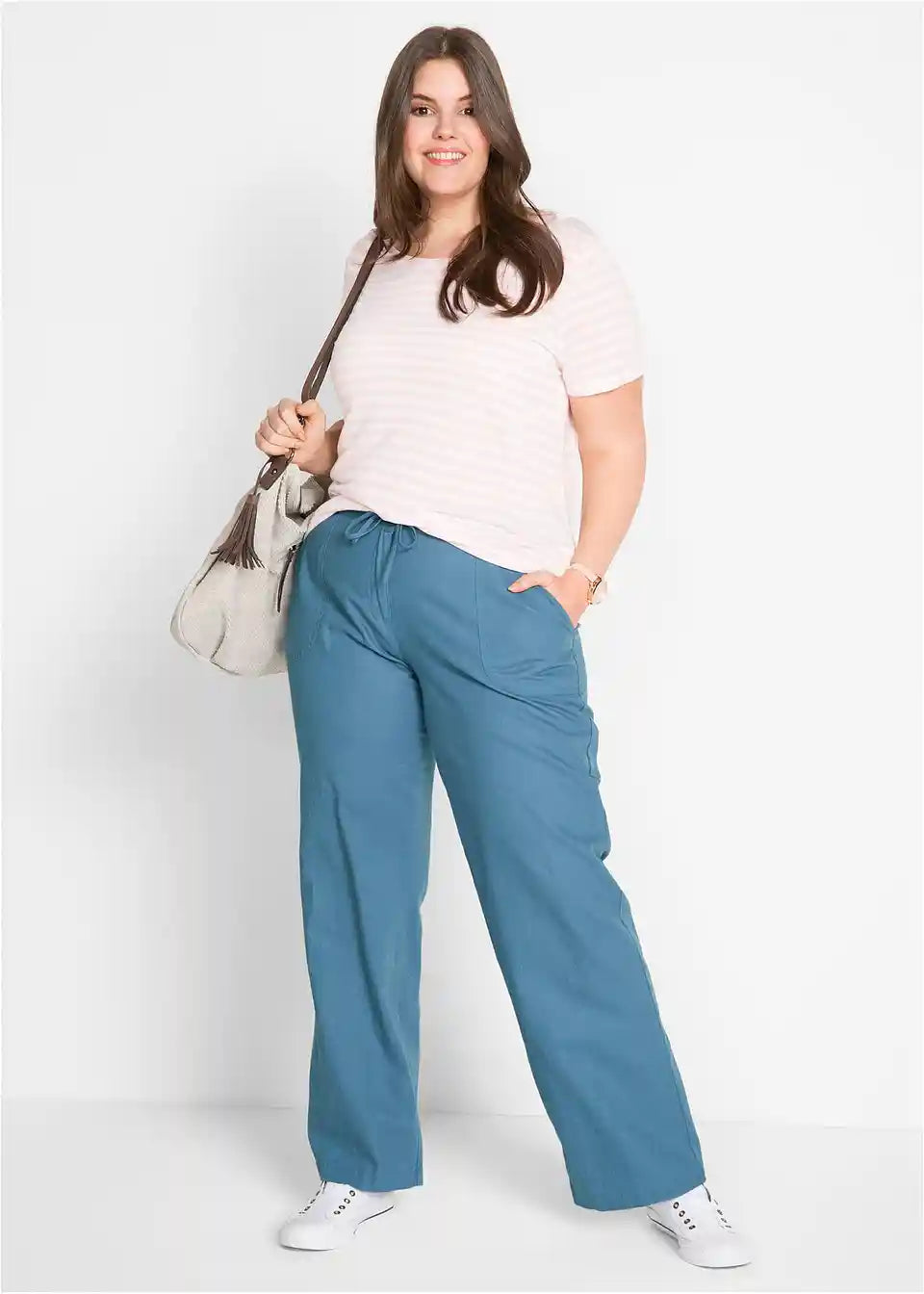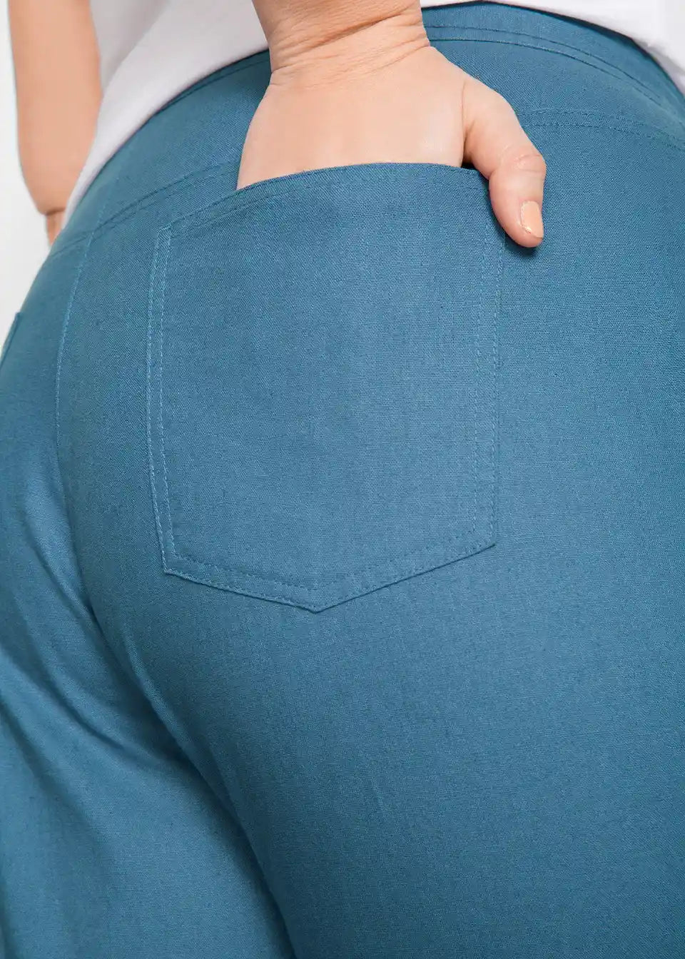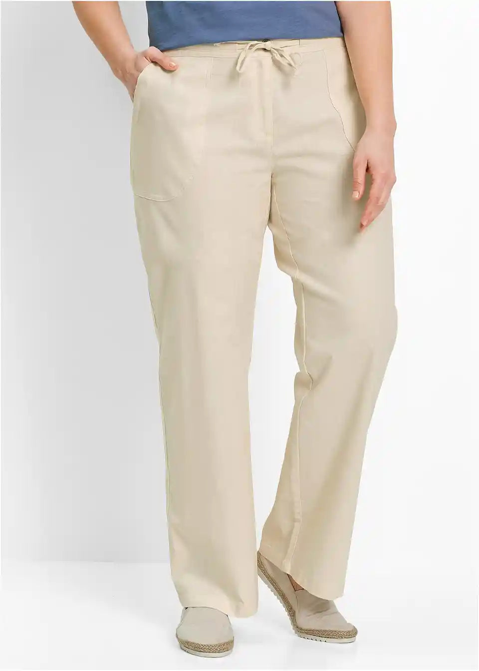 Te široko krojene lanene hlače znamke bpc so odlične za toplejše dni. Lahkotna in zračna tkanina naredi model udoben, pas pa je z vrvico prilagodljiv. Dolge lanene hlače so mehko oprane in oblikovane s prednjima dvema velikima žepoma ter dvema našitima žepoma na zadnji strani.