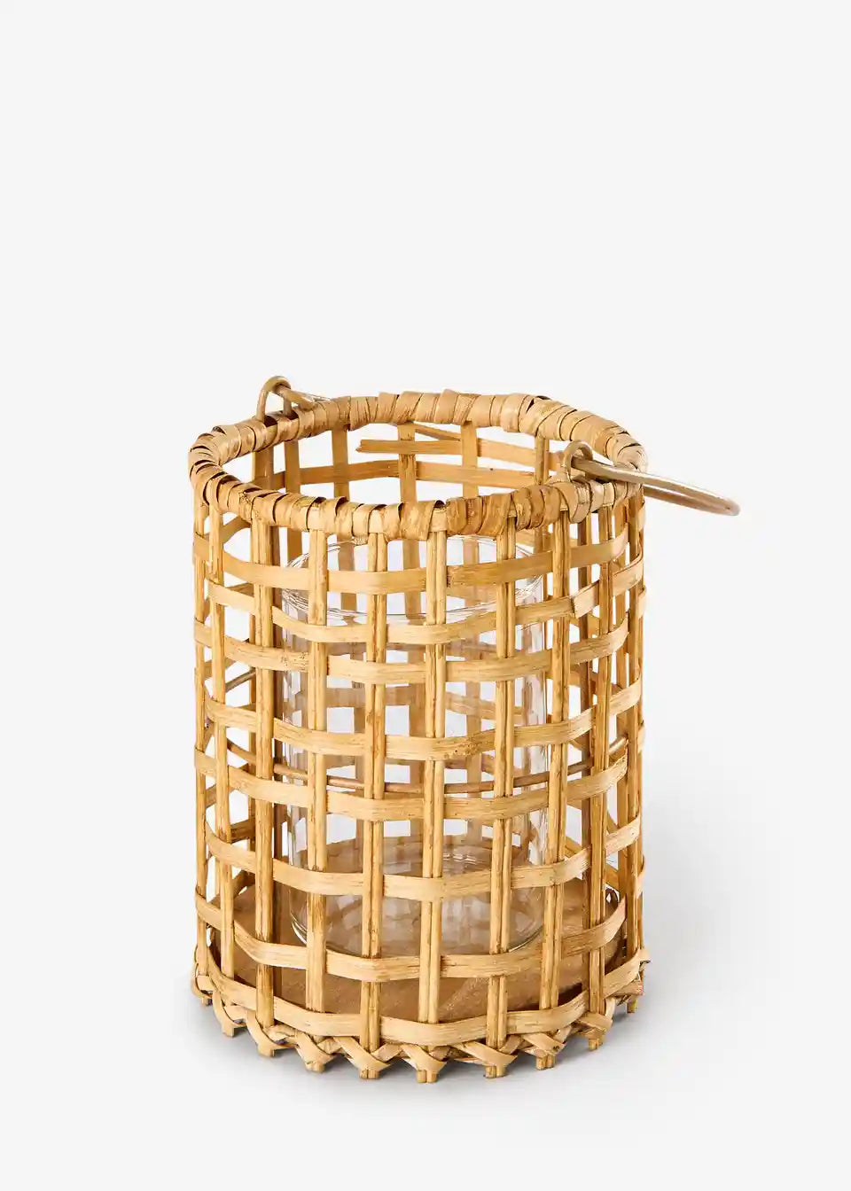 Lepa lanterna za svečo z naravnim videzom, s steklenim vložkom za čajno svečko. Dimenzije vklj. z držalom V/Ø 25x13 cm.