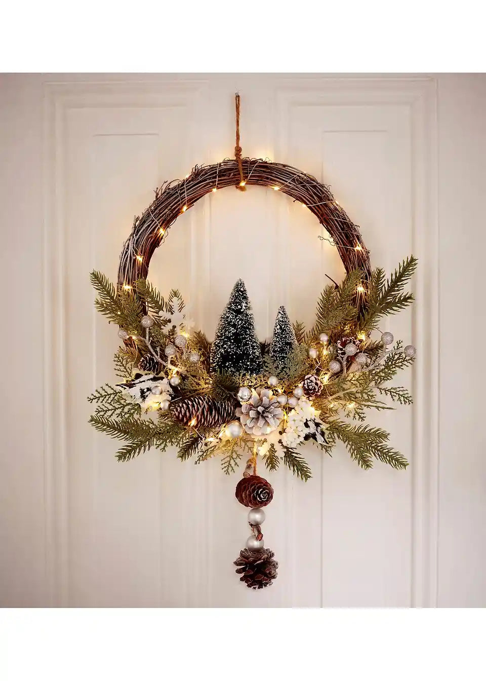 Bogato okrašen venec za vrata ali steno s številnimi podrobnostmi. Prava paša za oči v predsobi ali dnevni sobi.
