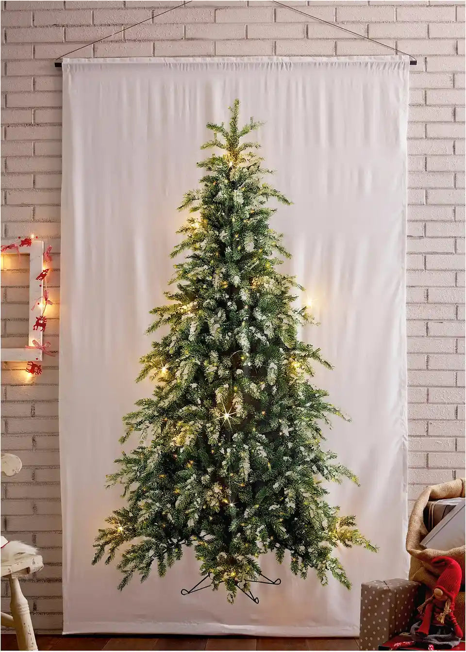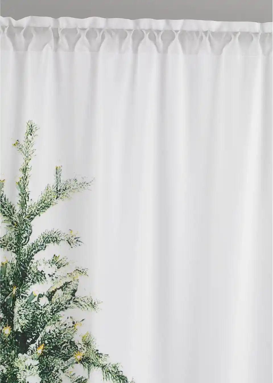 Iščeš posebno božično dekoracijo? Si se letos odločila, da ne boš imela okornega, iglastega božičnega drevesa, a si kljub temu ne želiš odpovedati svoji novoletni smreki? Potem je ta zavesa ravno prava! Božična zavesa iz neprosojne mikrofibre je na sprednji strani potiskana z velikim motivom smrečice. Obesi se s pomočjo prehoda za karniso. Posebnost tega izdelka je 15 LED lučk, ki so nameščene na zadnji strani in prosevajo skozi material. Tako lahko tvoja božična smreka zasije v polnem sijaju. Potrebni sta dve bateriji AAA (nista priloženi). Hrbtna stran je svetla, brez potiska, opremljena z LED lučkami, potrebnimi kabli in baterijskim vložkom. Velikost: ca. 230 x 140 cm.