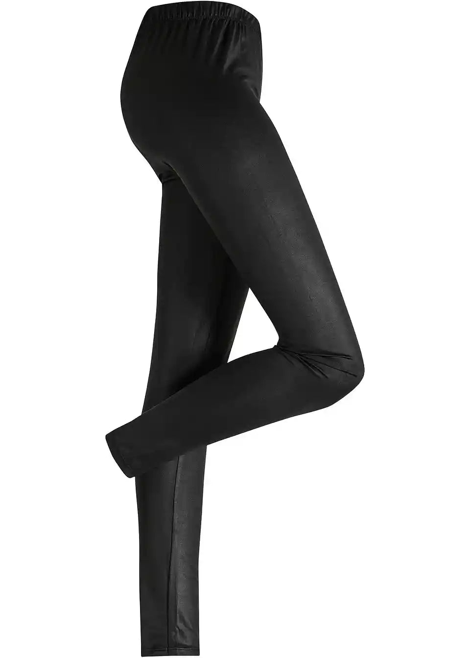 Vsakodnevni osnovni kos so te čudovite legice z diskretnim sijajem. Elastičen material zagotavlja dober oprijem, elastika v pasu pa omogoča veliko udobja. Zahvaljujoč rahlo sijočemu videzu usnja je ta neprosojni model primeren tudi za posebne priložnosti in elegantne kombinacije.