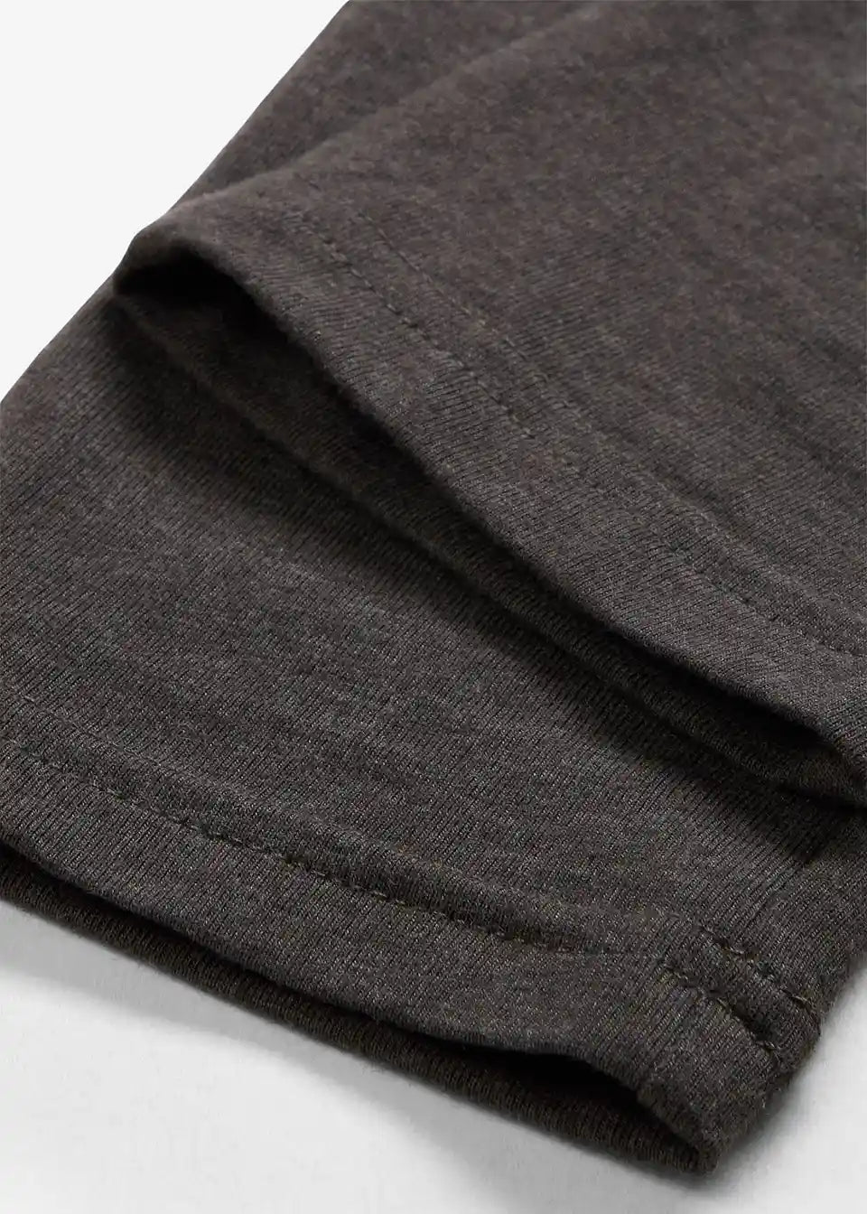 antracitna melirana: 55% bombaž (ekološki), 40% poliester, 5% elastan, ne melirane barve: 95% bombaž (ekološki), 5% elastan