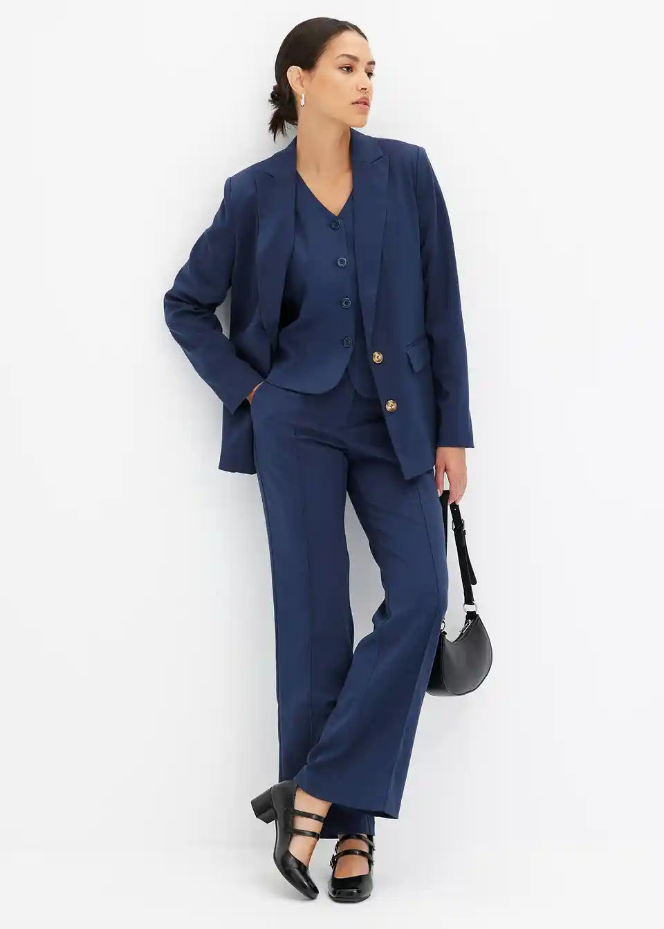 model je visok 1,76 m in nosi velikost 36