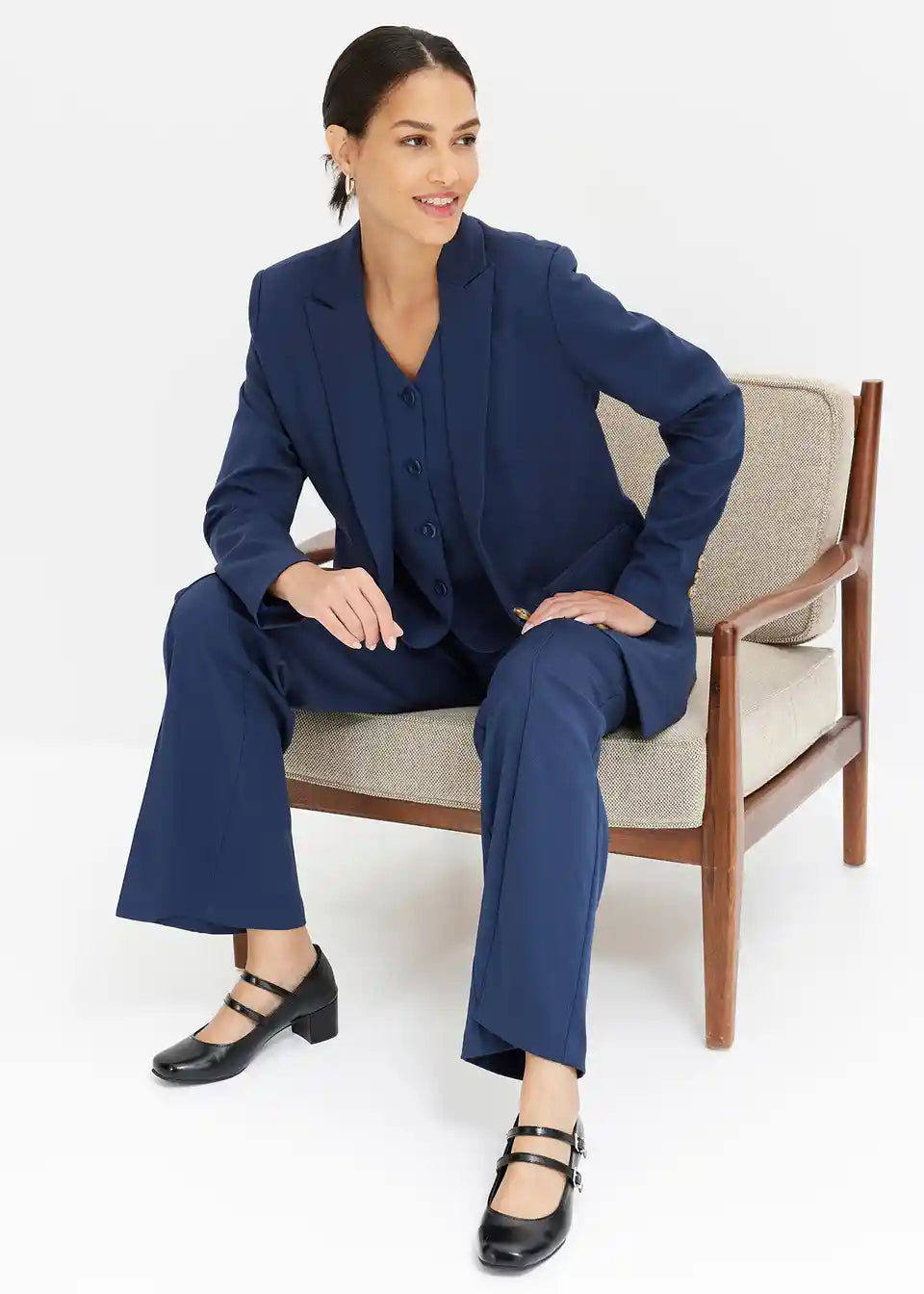model je visok 1,77 m in nosi velikost 36