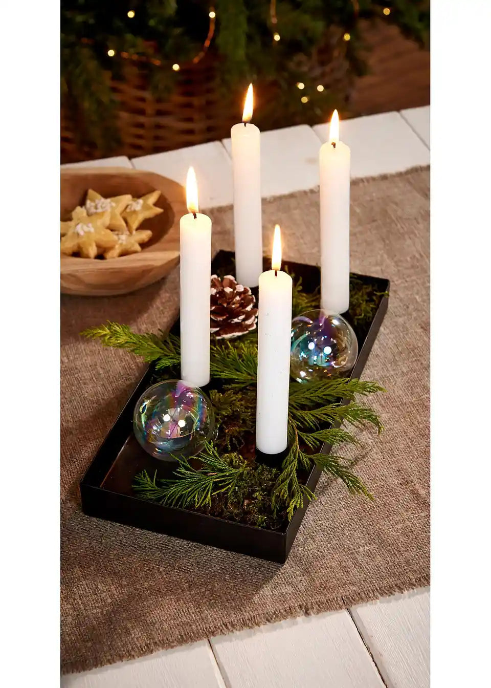 Izviren svečnik za 4 sveče. Svečniki so magnetni in jih lahko poljubno postavite na pladenj. Med svečami ostane dovolj prostora za lepo praznično dekoracijo.