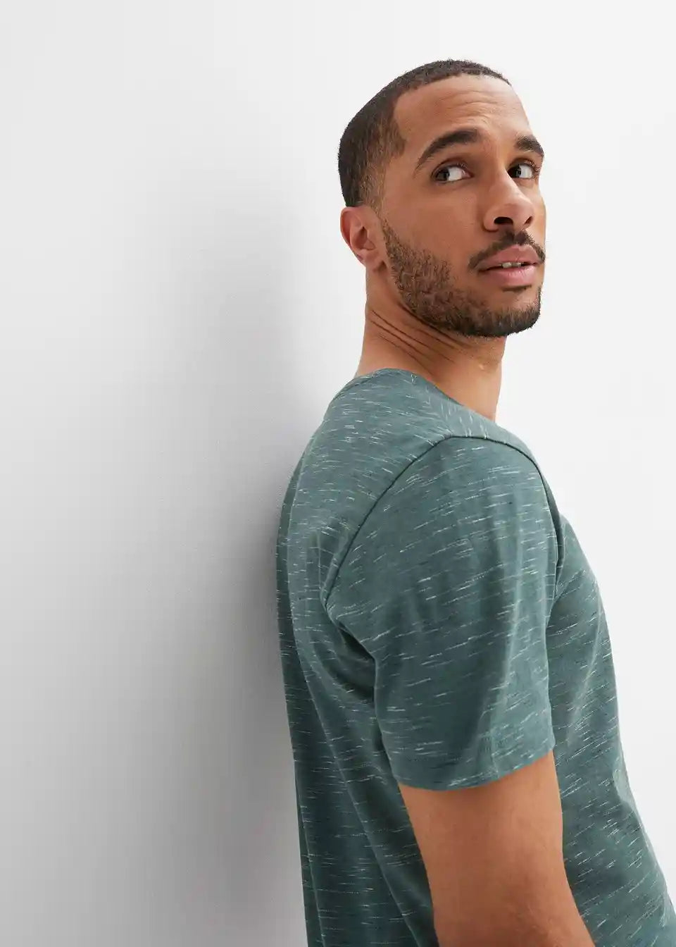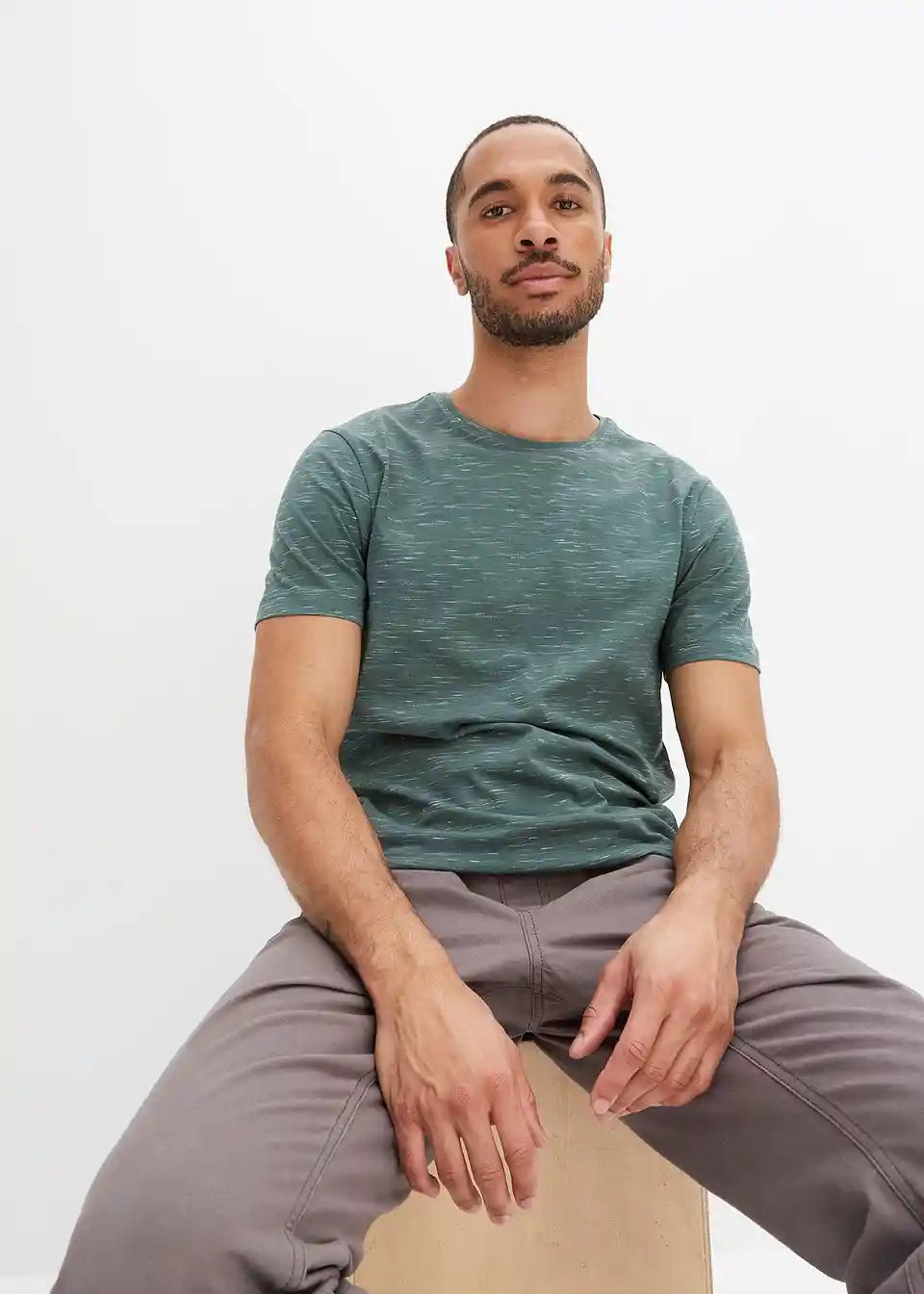 Popolna izbira za sproščene vsakdanje outfite je moška majica s krojem Regular Fit v modnem meliranem videzu. Sproščen kroj, mehka tkanina in udobna oblika zagotavljajo visok nivo udobja pri nošenju. Kratki rokavi, širok zaključek z okroglim vratnim izrezom in raven spodnji rob dopolnjujejo privlačen dizajn majice iz kolekcije bpc.