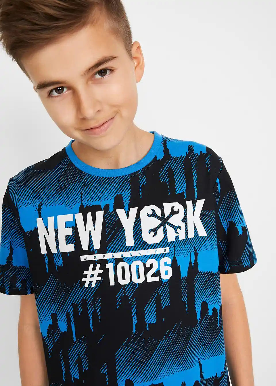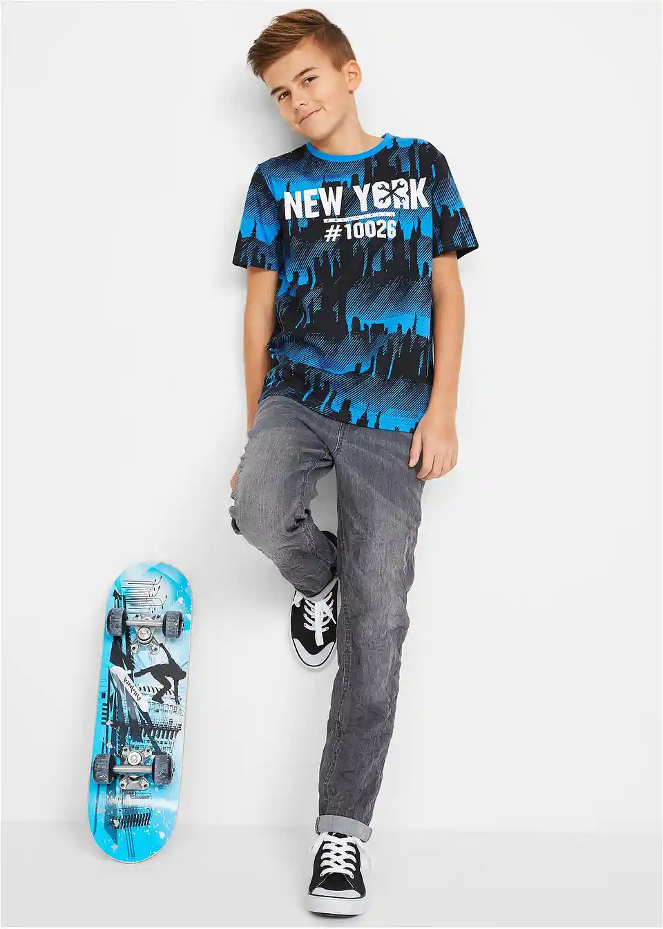 Ohlapna majica znamke bpc se po želji kombinira s športnimi oblačili za šolo in prosti čas. Udoben kroj z okroglim izrezom in enostavno vzdrževanje bombaža naredita to otroško majico dobro izbiro za številne priložnosti. V kompletu sta dve majici, ena s potiskom in ena enobarvna.