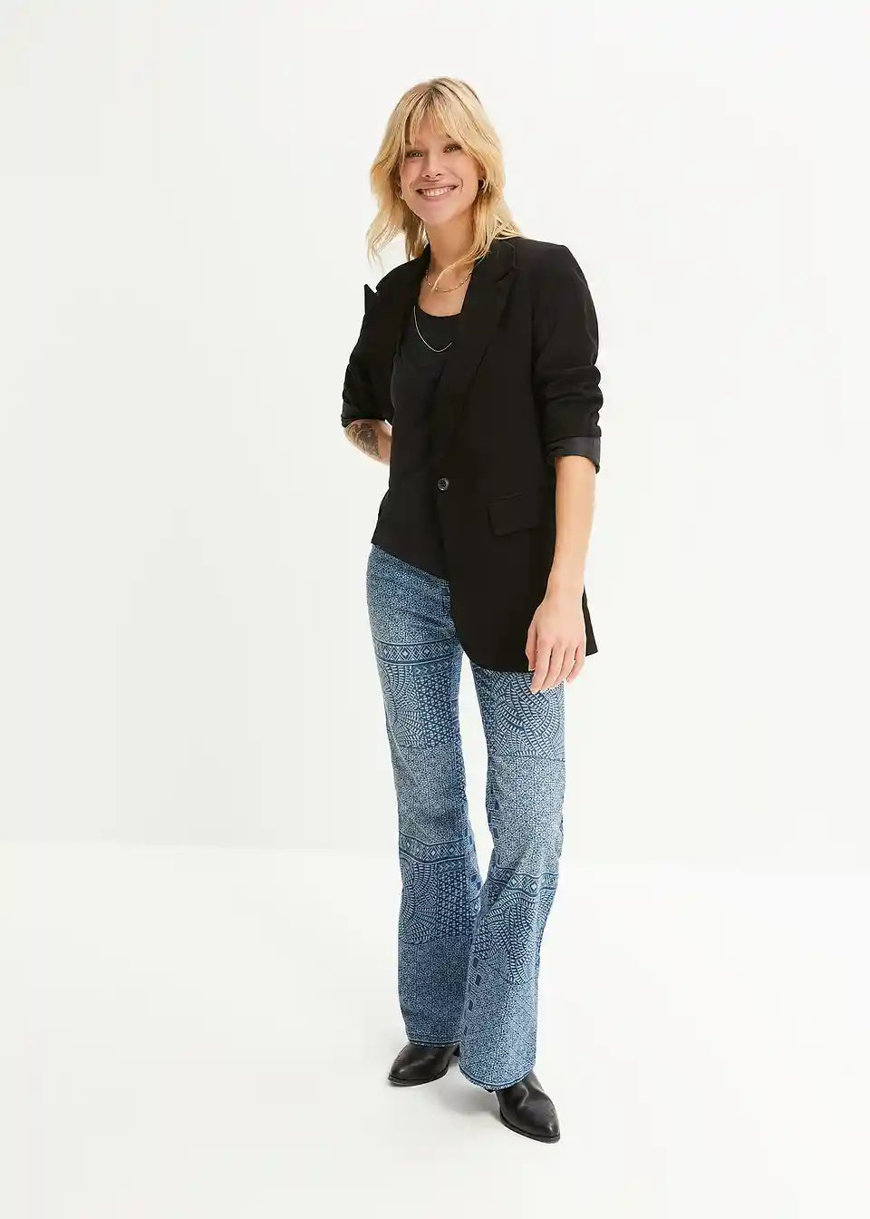 Ta majica znamke RAINBOW je navdihnjena z osemdesetimi leti. Cool potisk po celotni površini naredi majico prava privlačna točka. Sproščena prileganje se še posebno dobro poda ozkim hlačam in krilom. Hrbtni rob, ki je daljši, poudarja stilski videz majice. Globok okrogel izrez in kratki, pritrjeni rokavi dopolnjujejo videz.