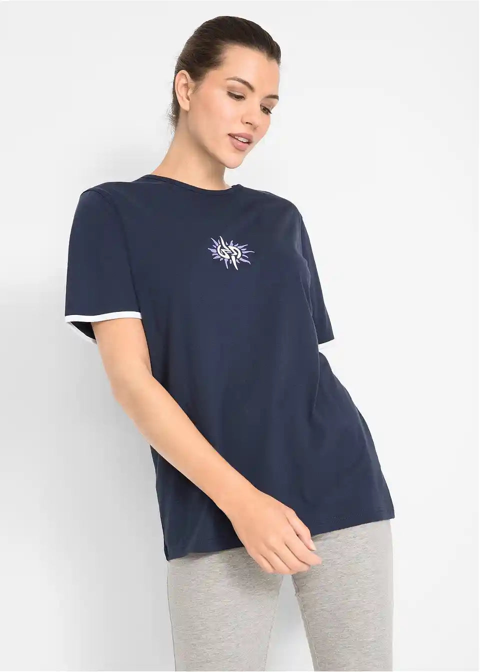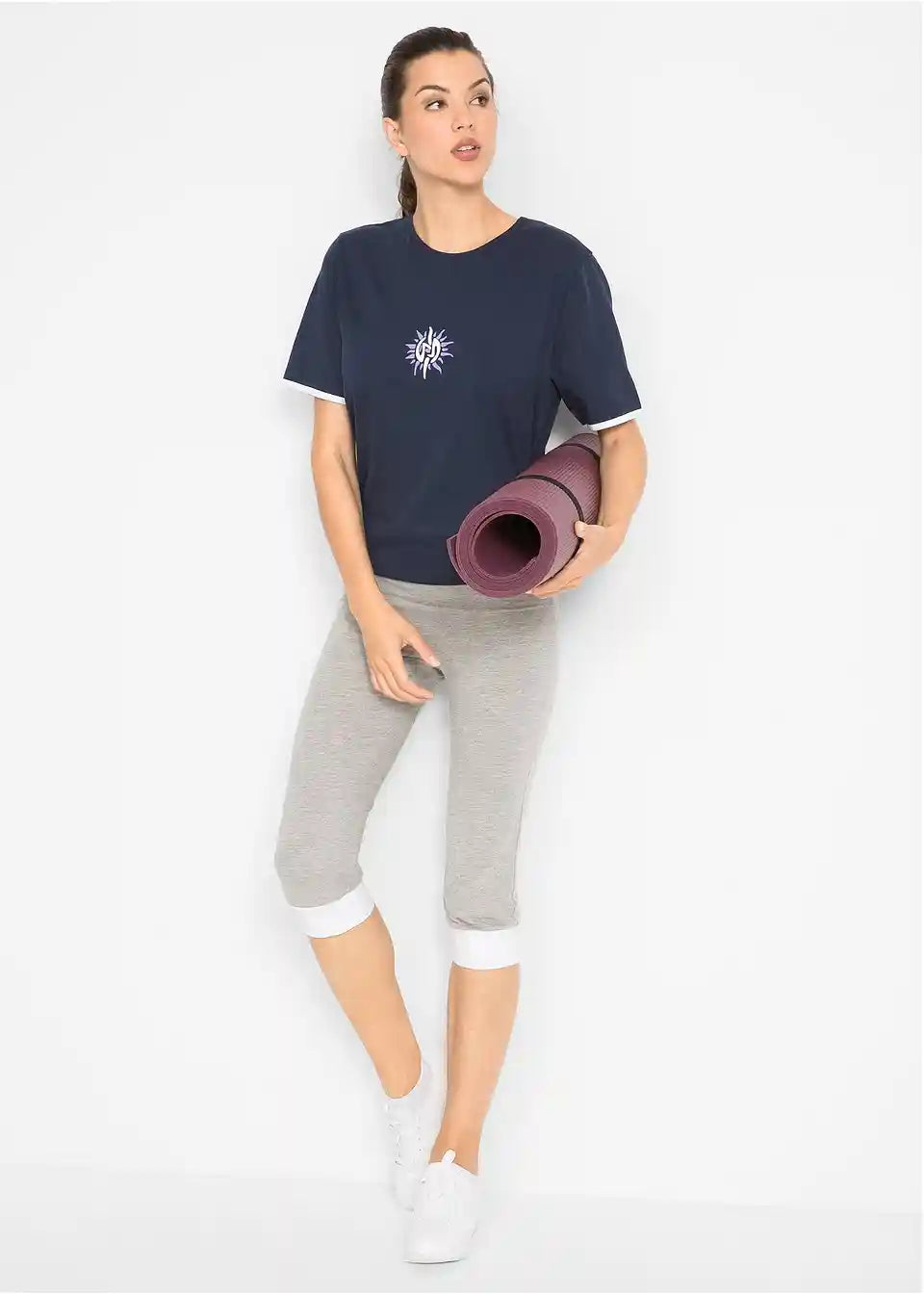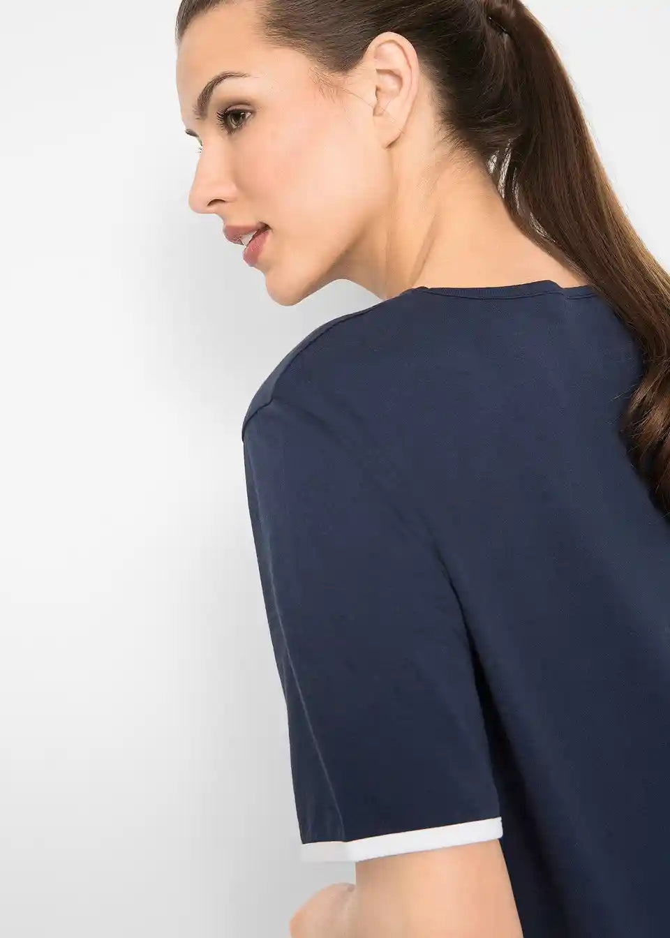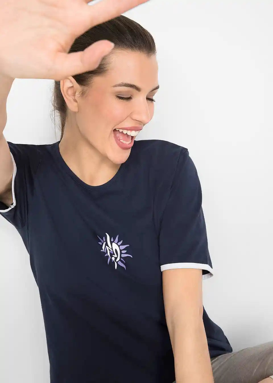 Ta dolga majica znamke bpc je idealna za šport in prosti čas. Za visoko udobje pri nošenju poskrbita sproščen kroj in koži prijazen bombažni material. T-shirt z okroglim izrezom dobi moderen videz z različno obrobljenim robom rokavov in diskretnim potiskom na prsih. Naj bo s kratkimi hlačami, kavbojkami ali krilom – ta cenovno ugodna dolga majica je obvezna v vsaki garderobi.
