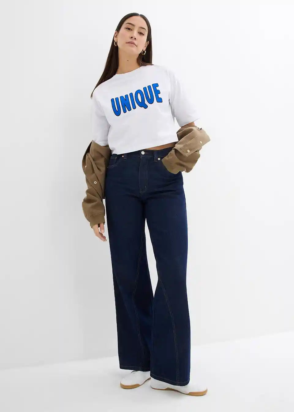 Kratka majica iz čiste bombaža z bisernim potiskom