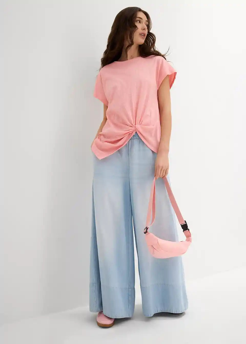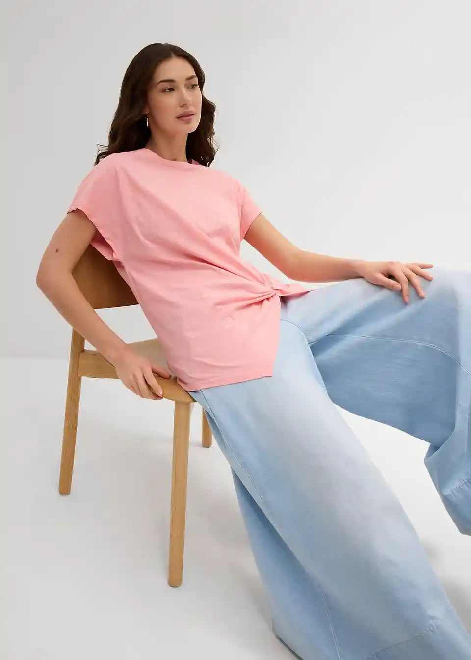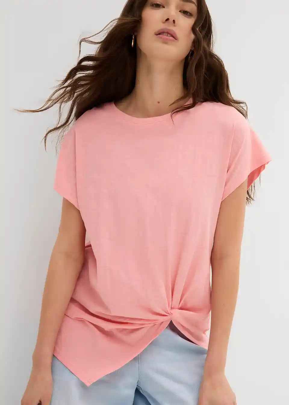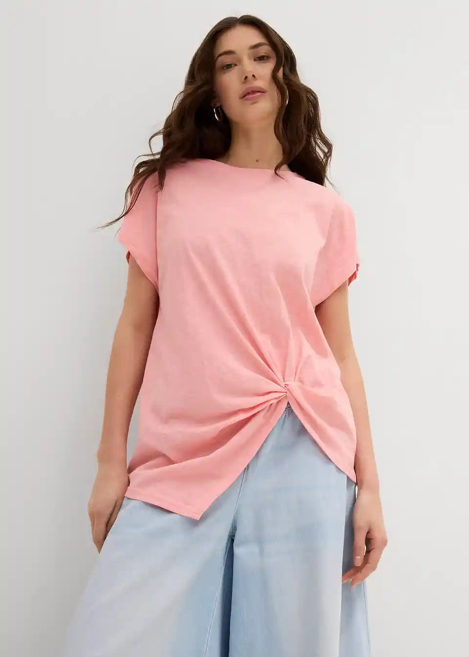 Stilska majica s preklanim ramenom in detajlom z vozlom