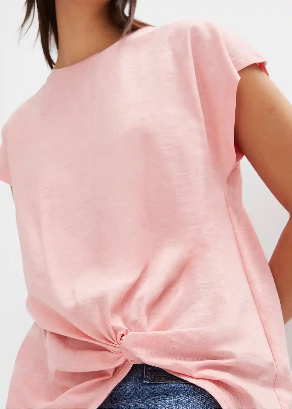 Stilna majica z obrnjenimi rameni in detajlom vozla
