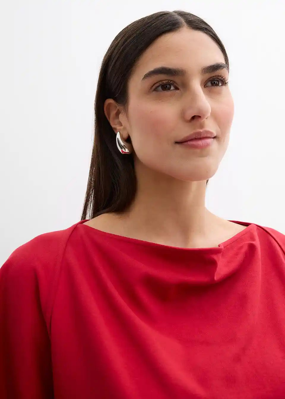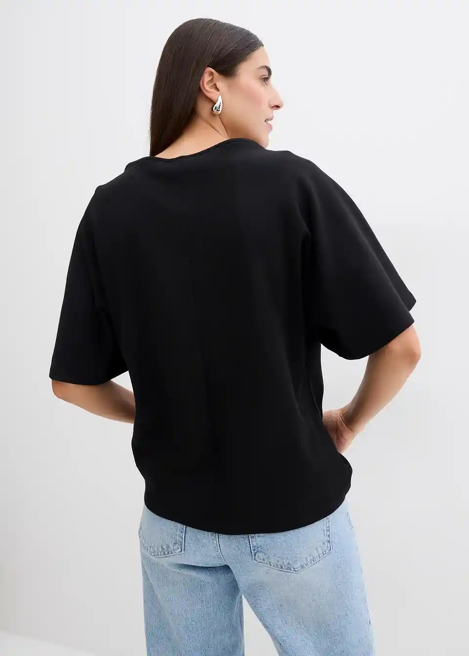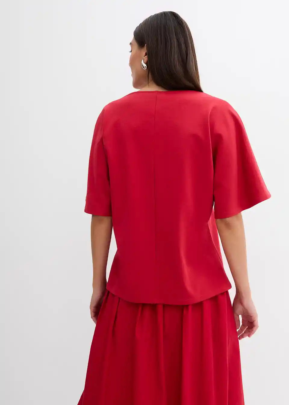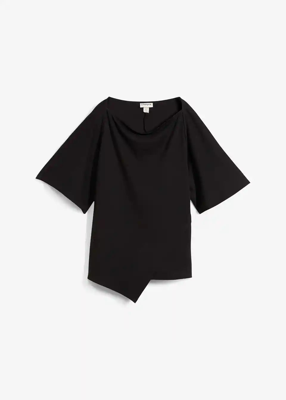 Majica s padajočim nabranim izrezom in asimetričnim spodnjim robom