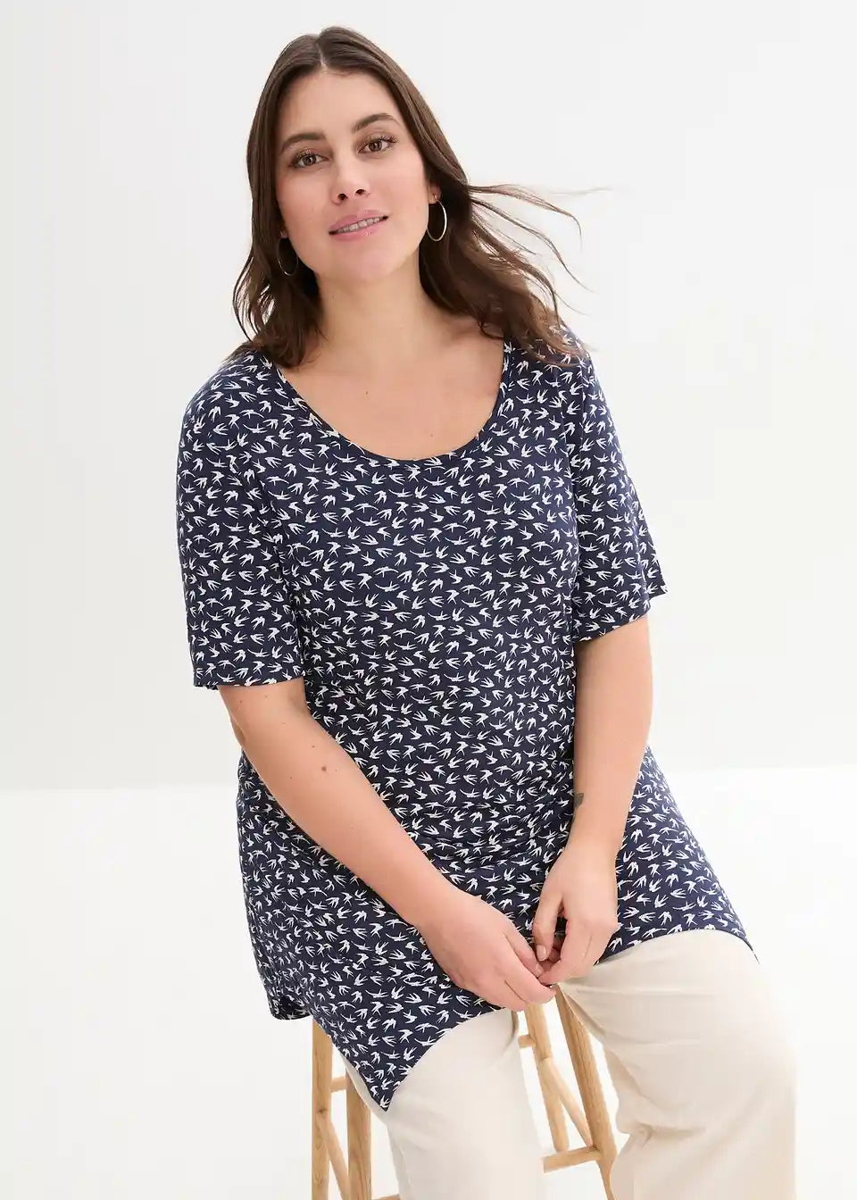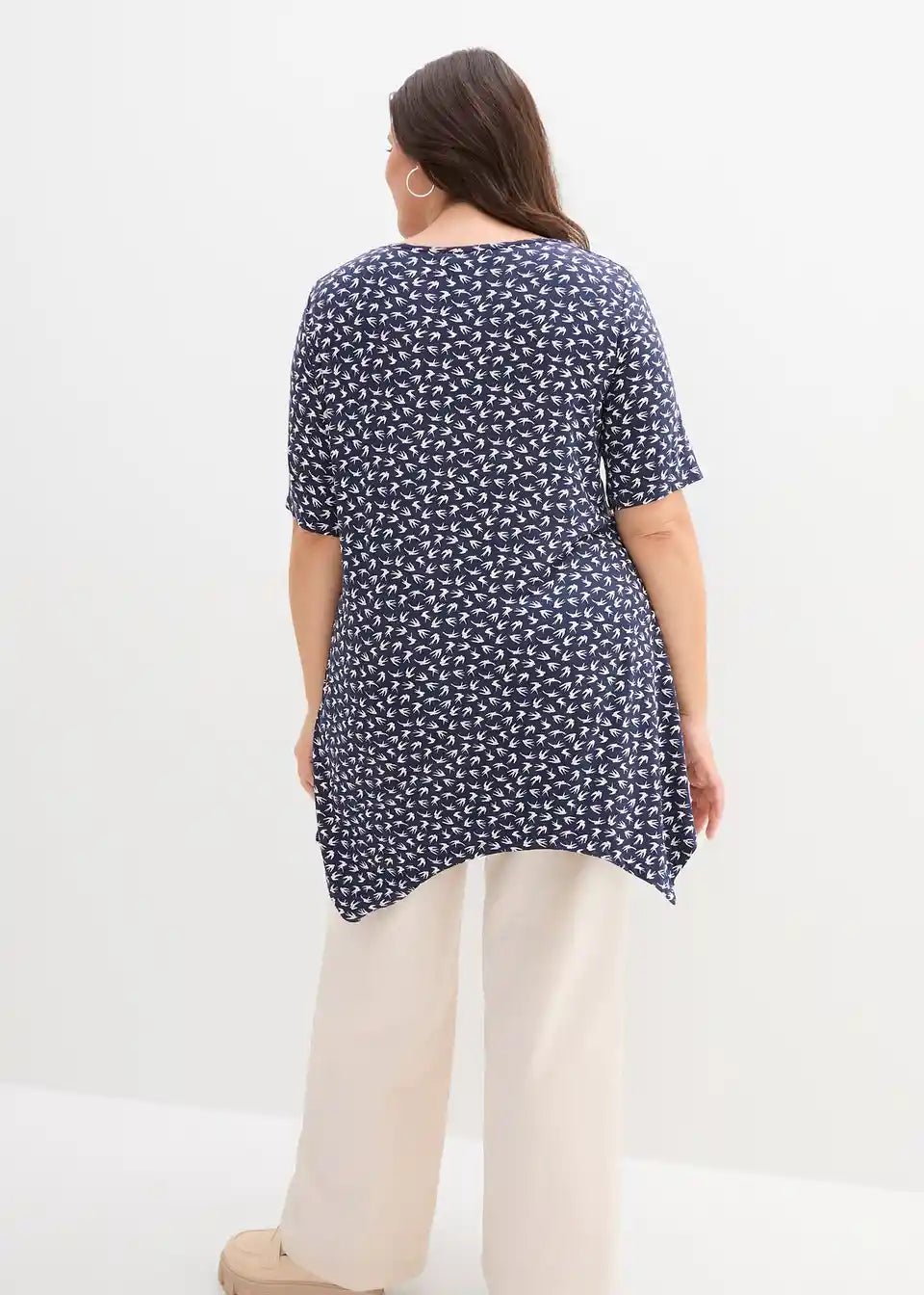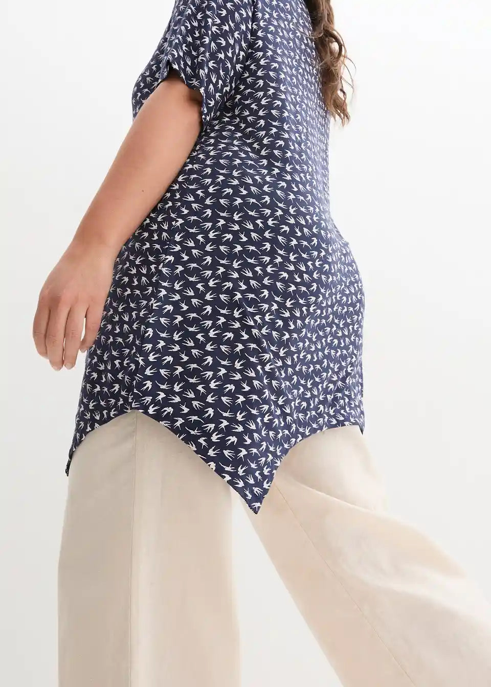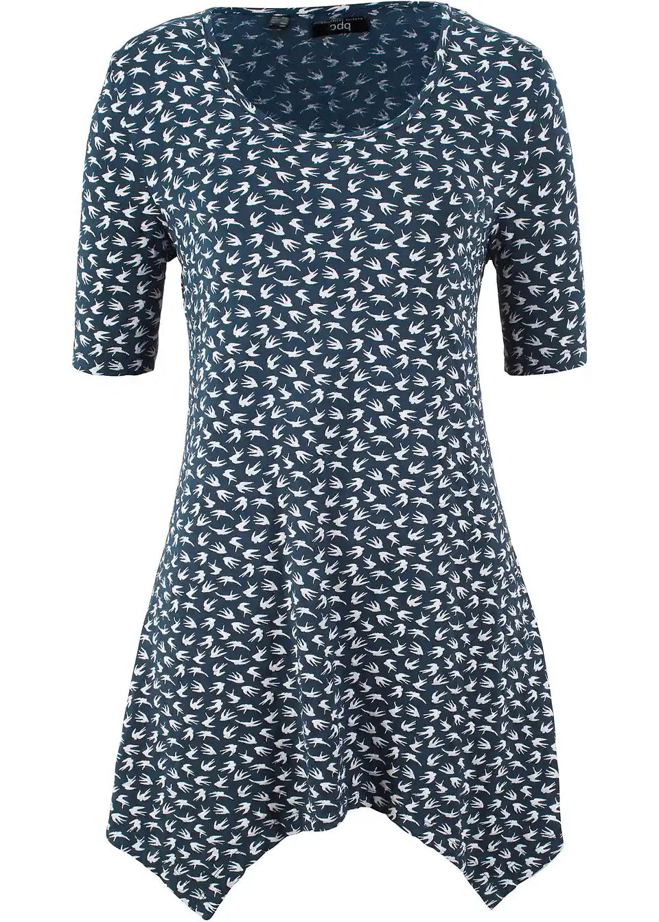 Lepo potiskana majica s kratkimi rokavi v asimetričnem videzu
