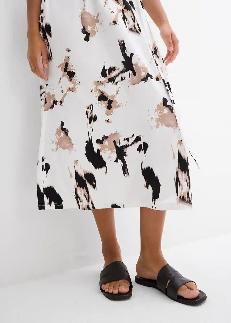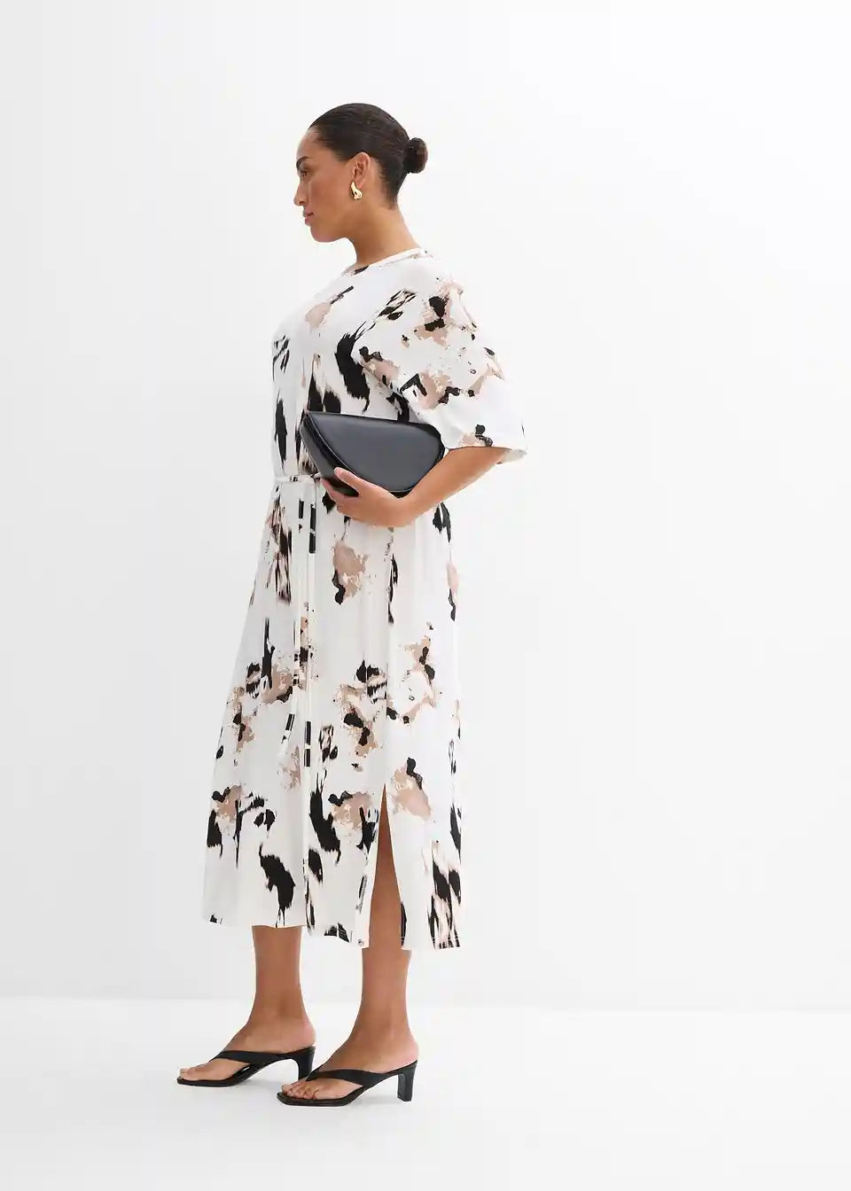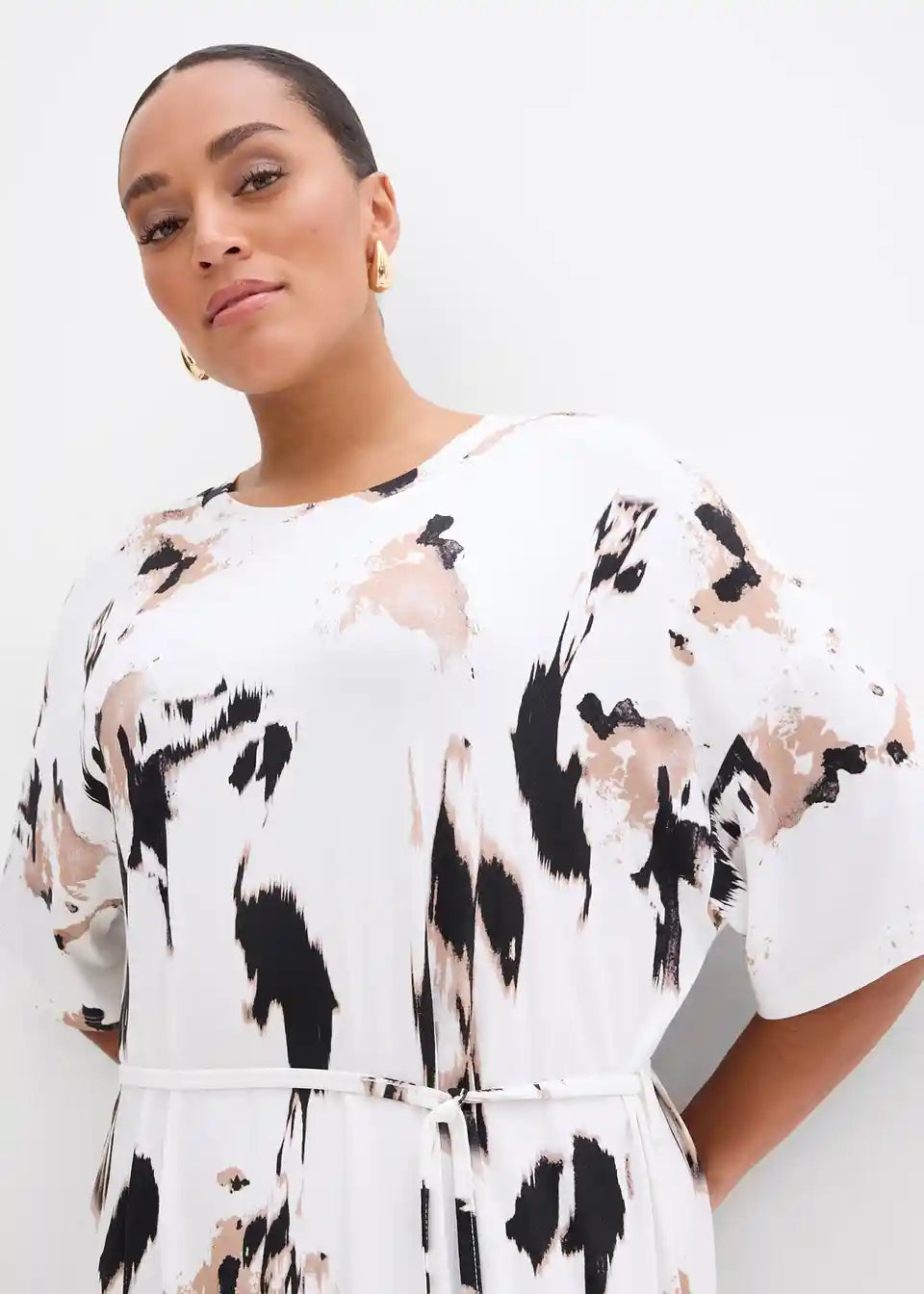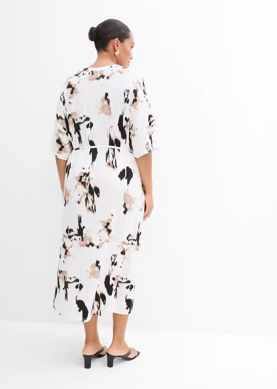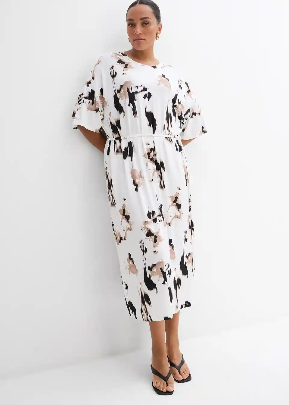 Midi majica obleka iz fine viskoze z ohlapnim krojem in detajlom za zavezovanje