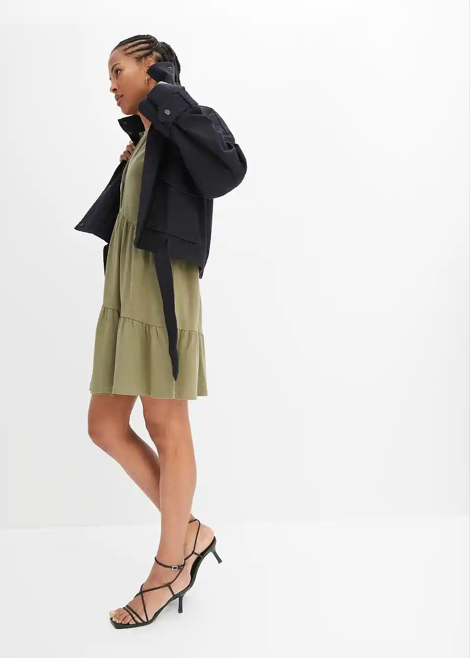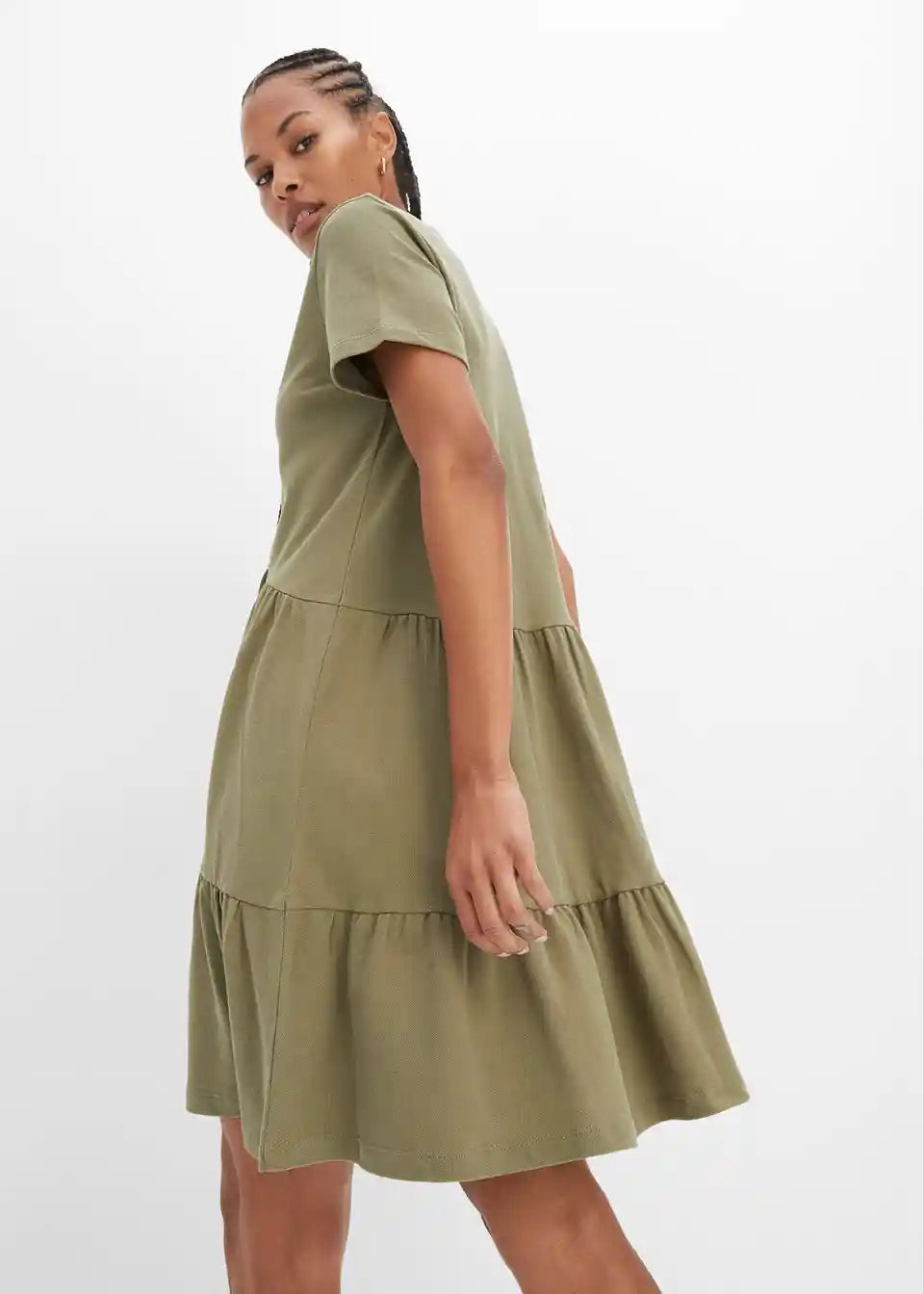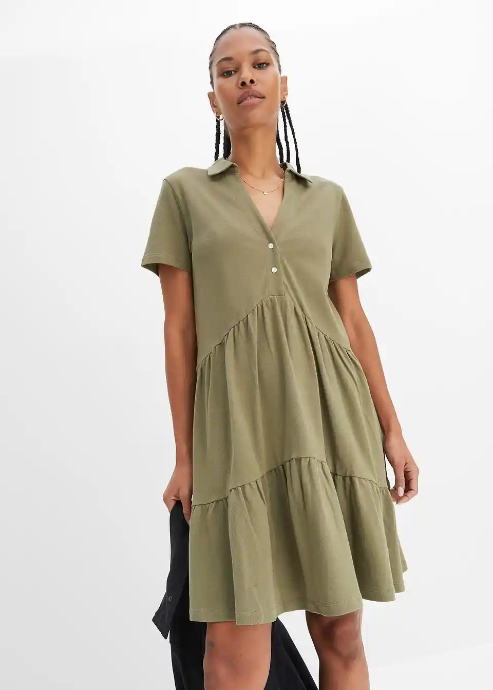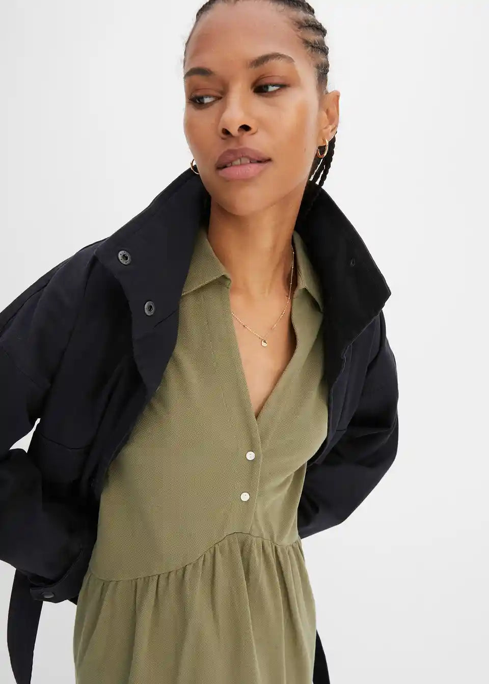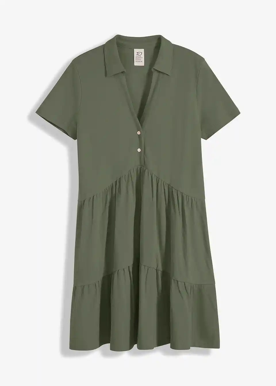 Obleka iz trikoja s polo ovratnikom in ekološkim bombažem