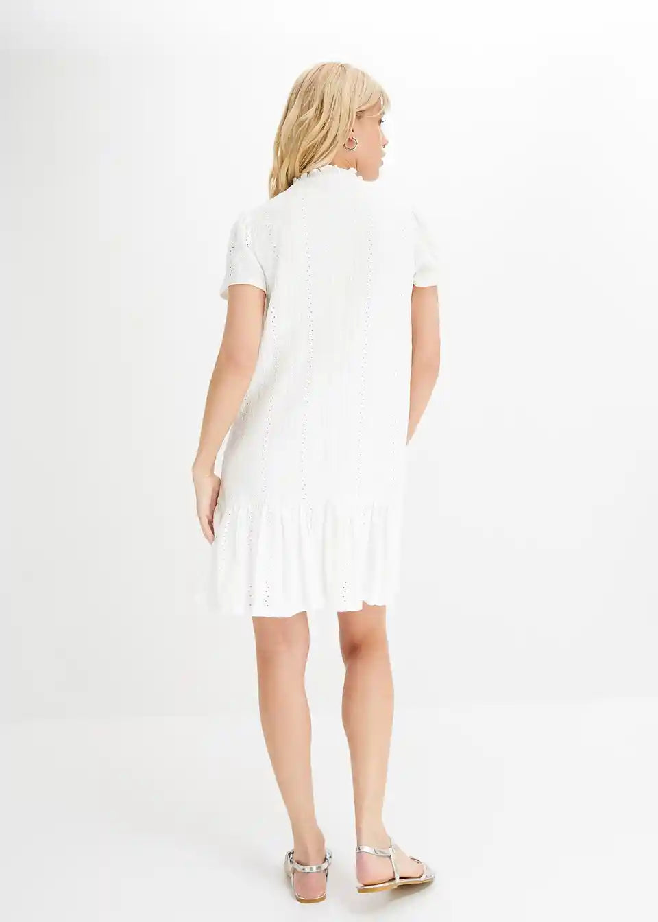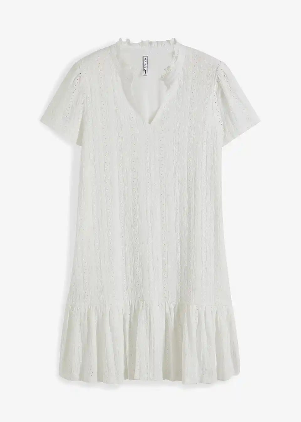 Majica obleka v moderni luknjičasti čipki z igrivimi detajli