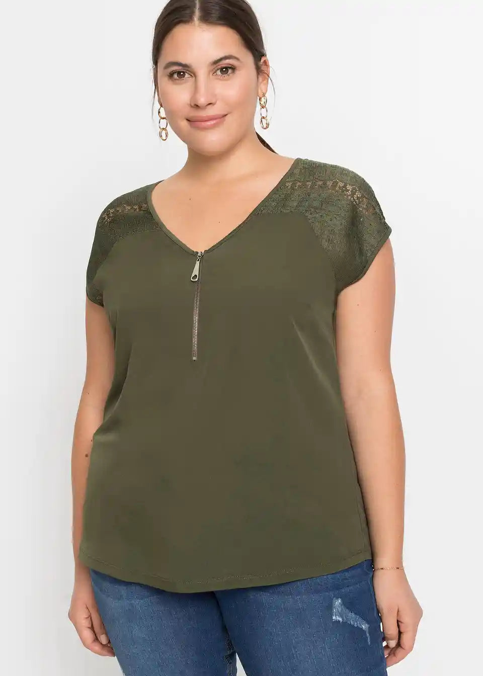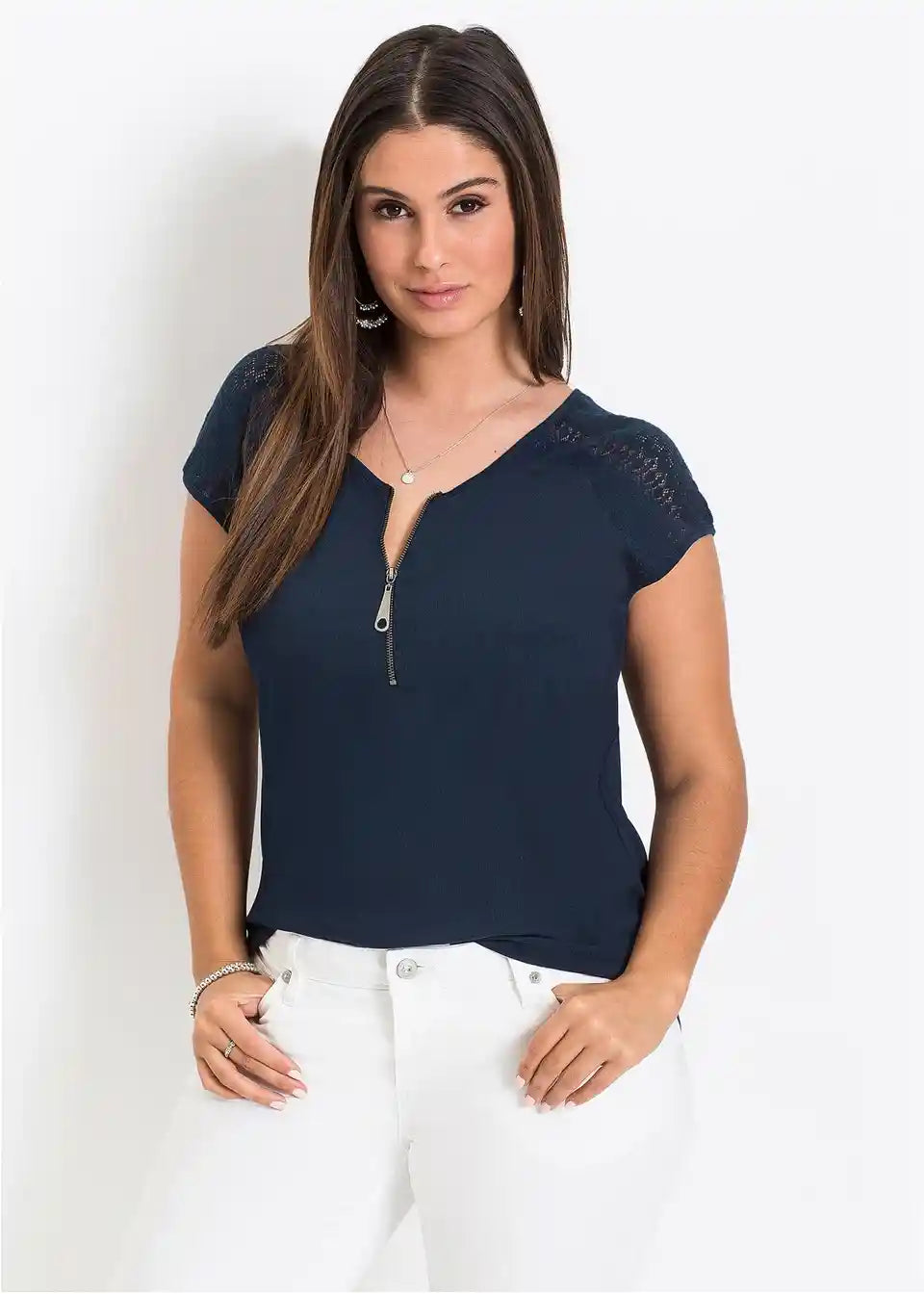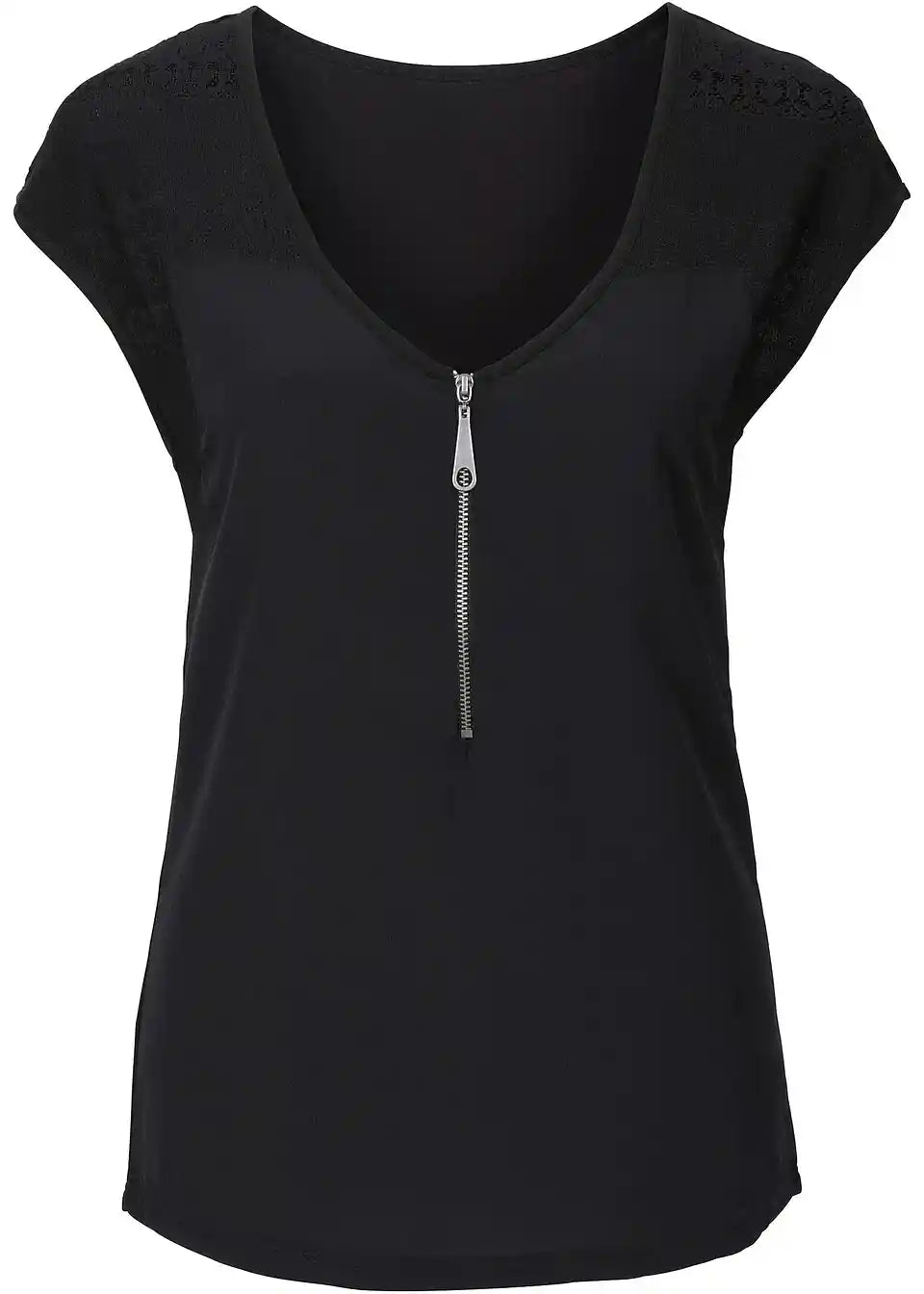 Izvirna majica z zadrgo in lepimi čipkastimi vložki