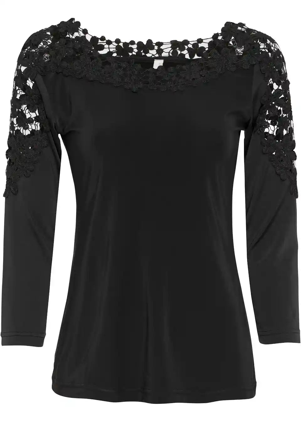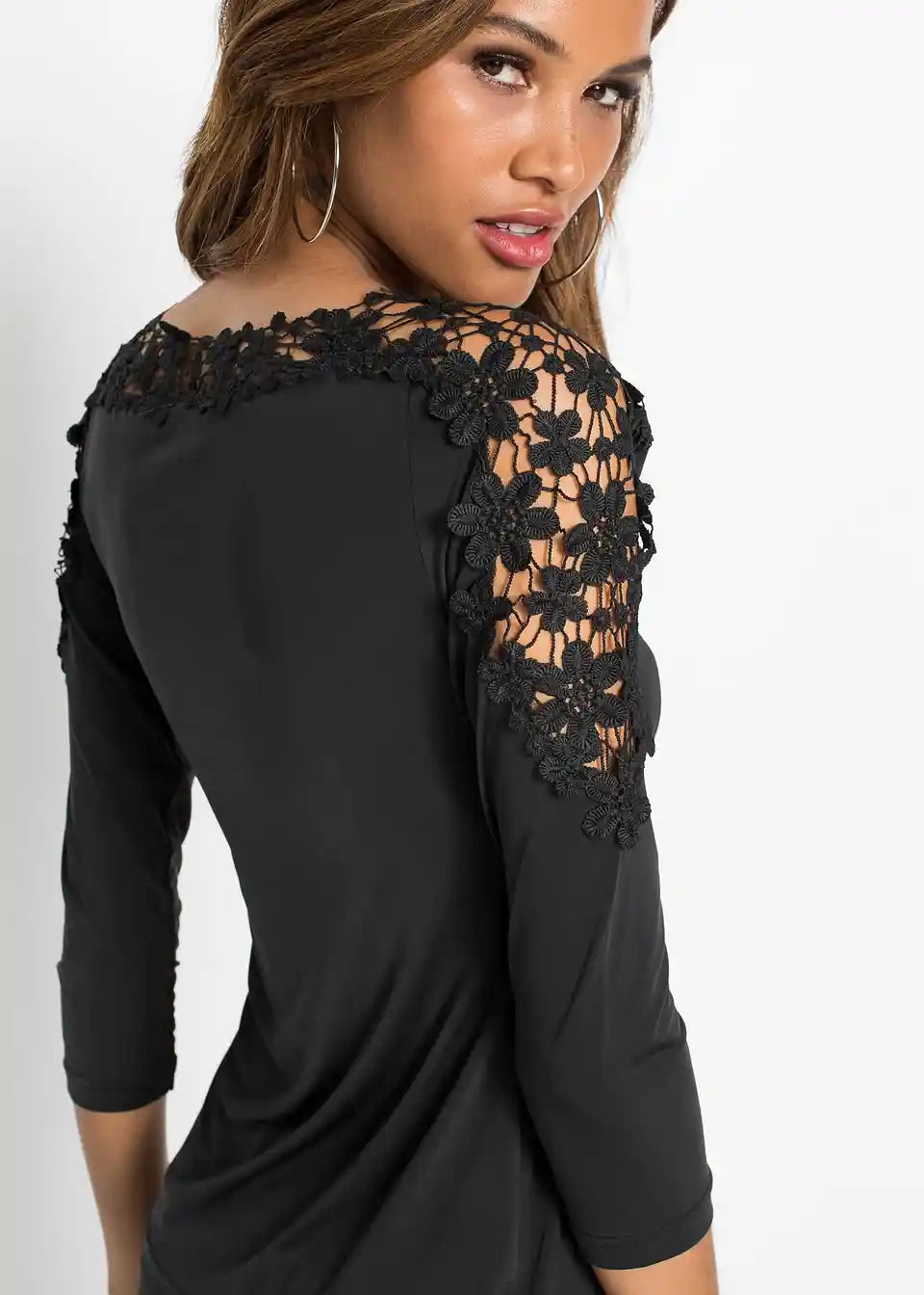 Majica s kvačkanim všitkom in 3/4-rokavi