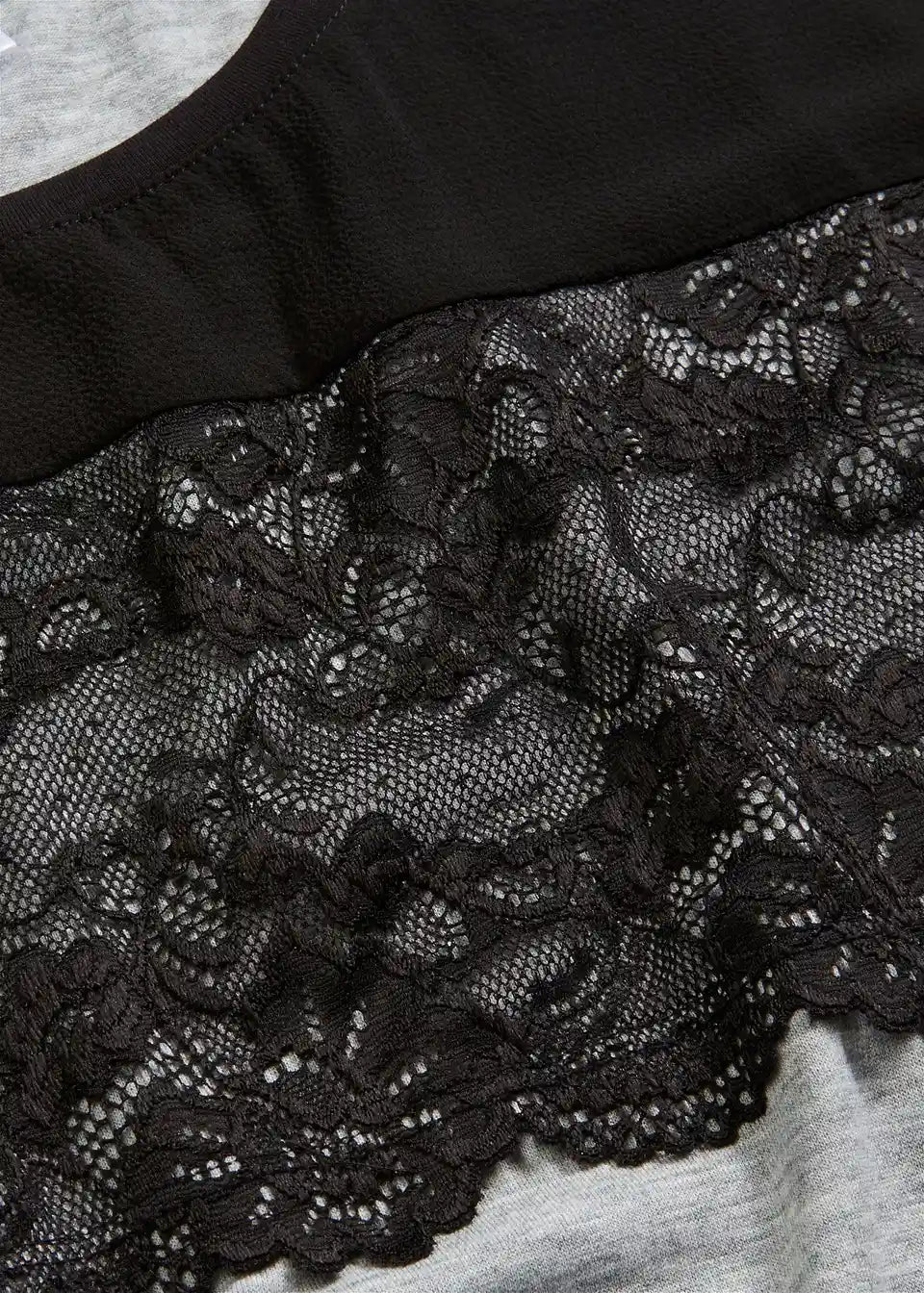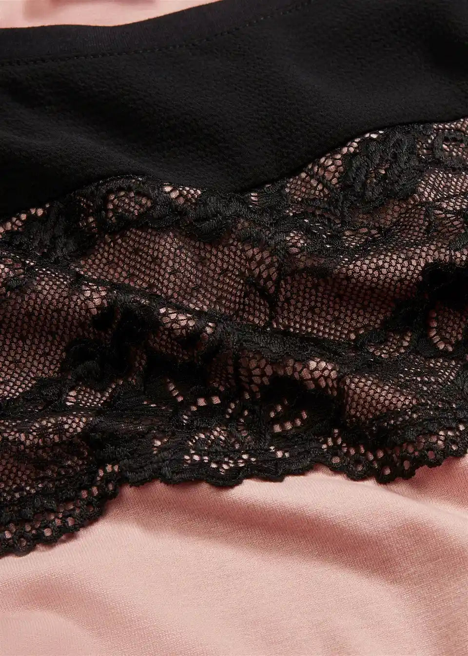 Material:zgornji material: 65% poliester, 35% viskoza, čipka: 92% poliamid, 8% elastan, všitek: 100% poliester