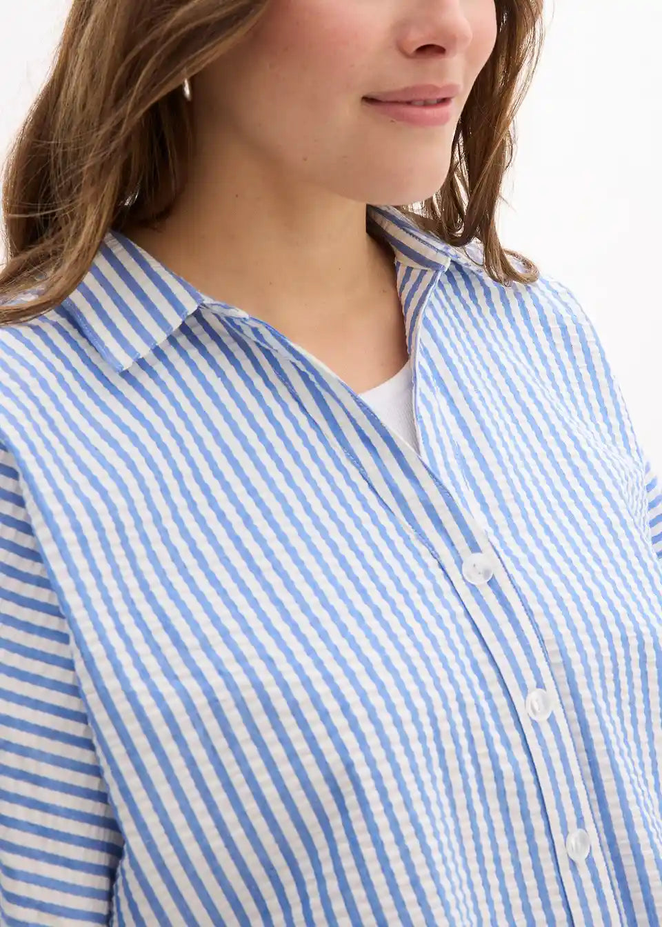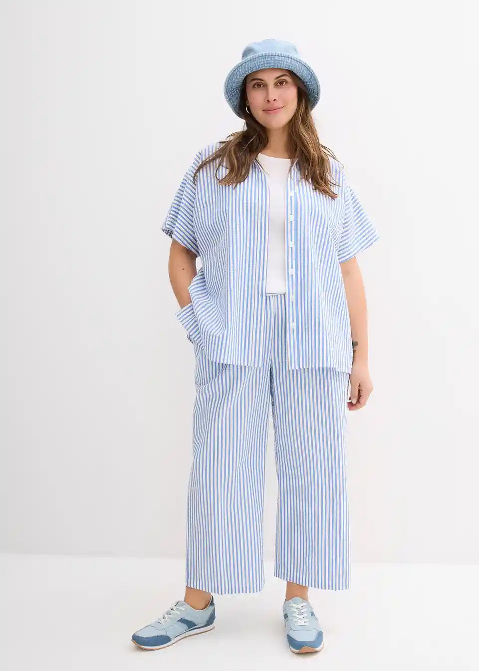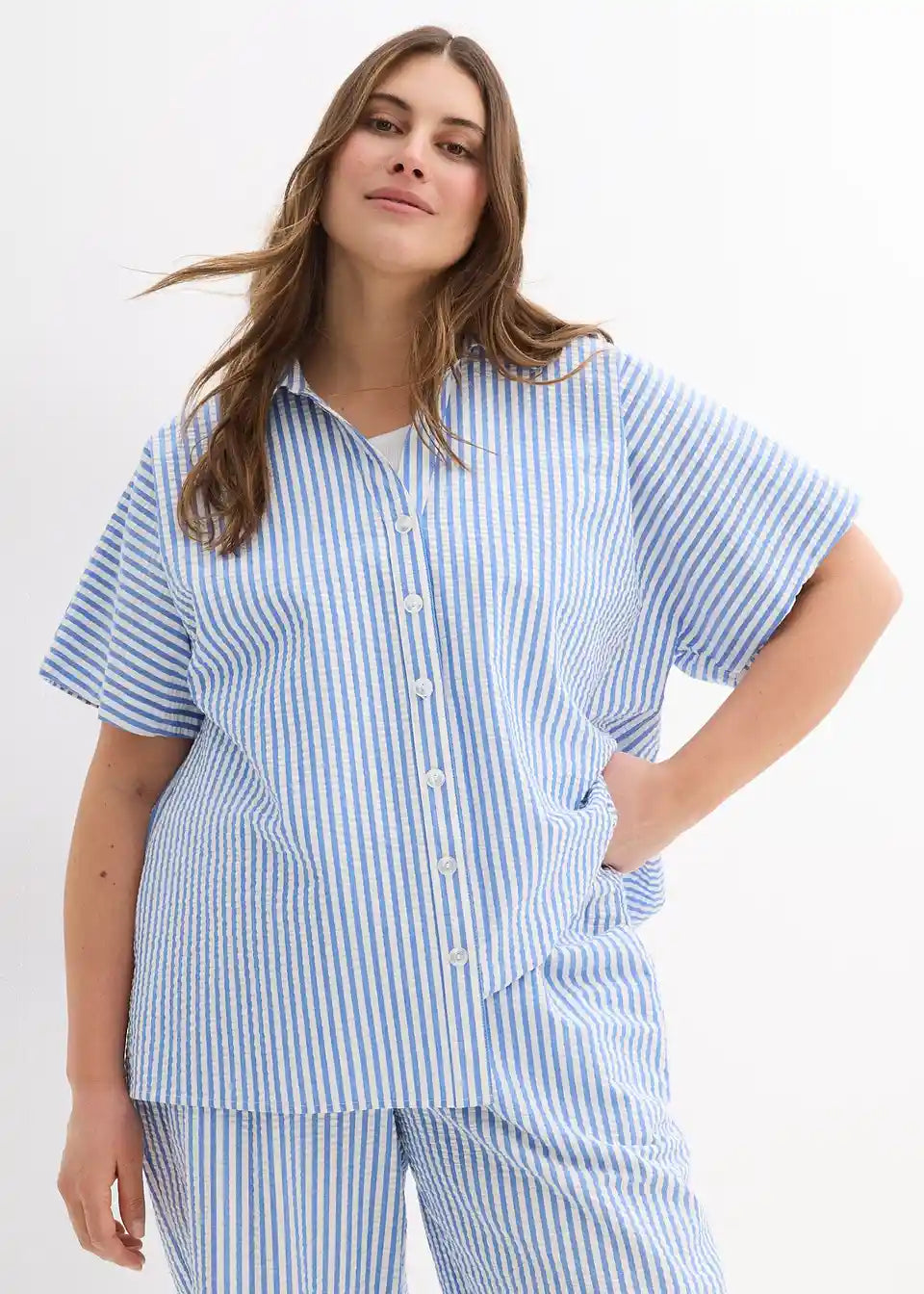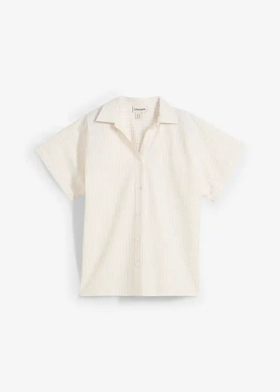 Majica s kratkimi rokavi iz lahkega strukturiranega materiala z gumbi. Ohlapen kroj.