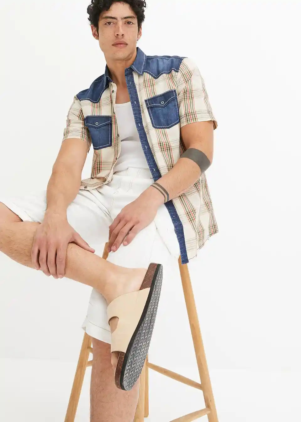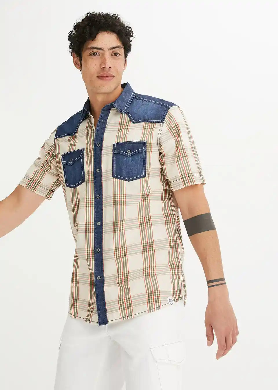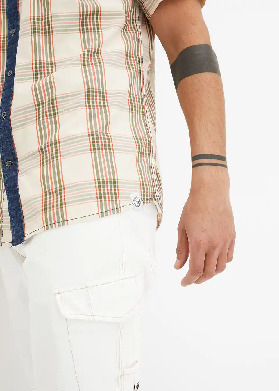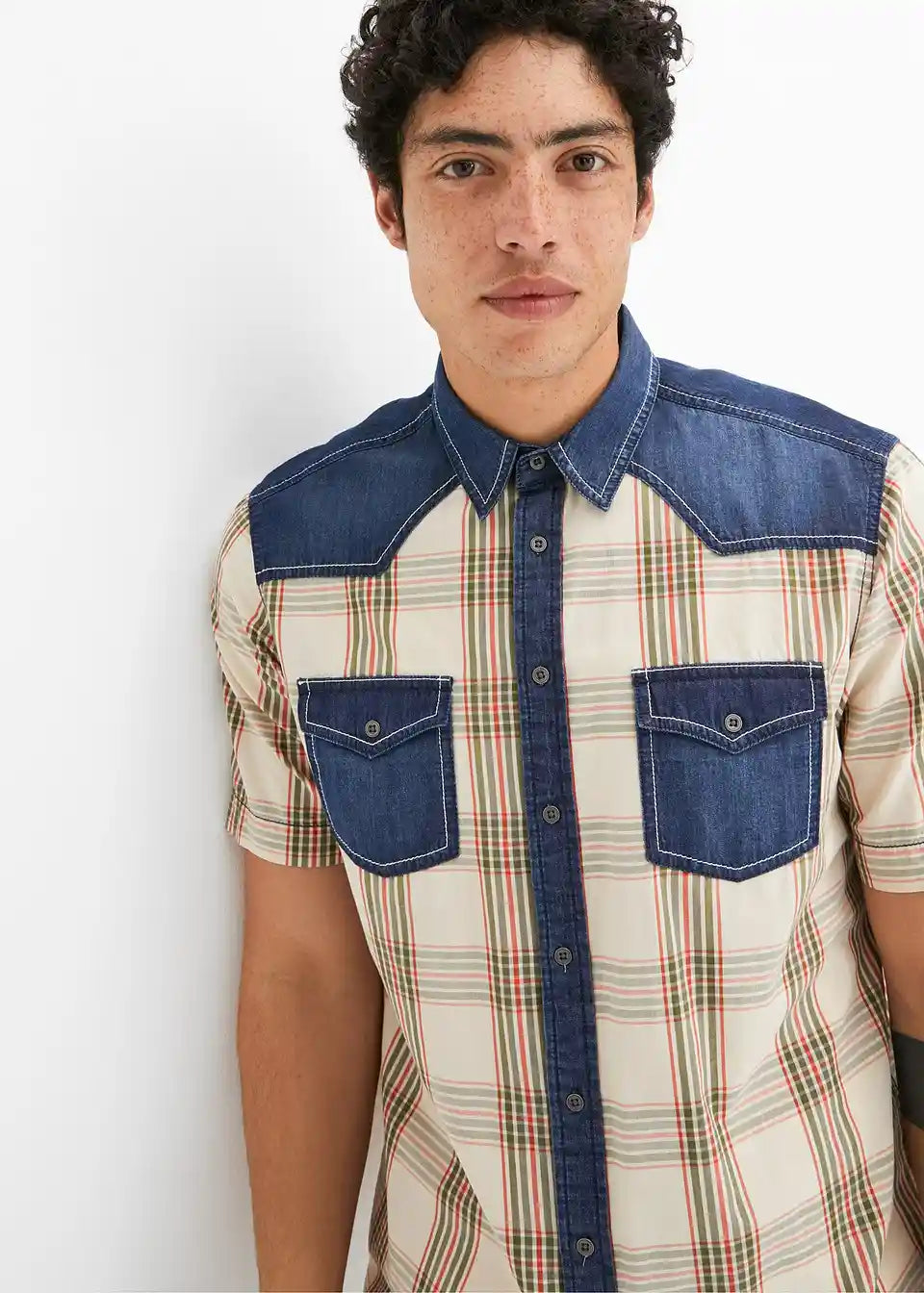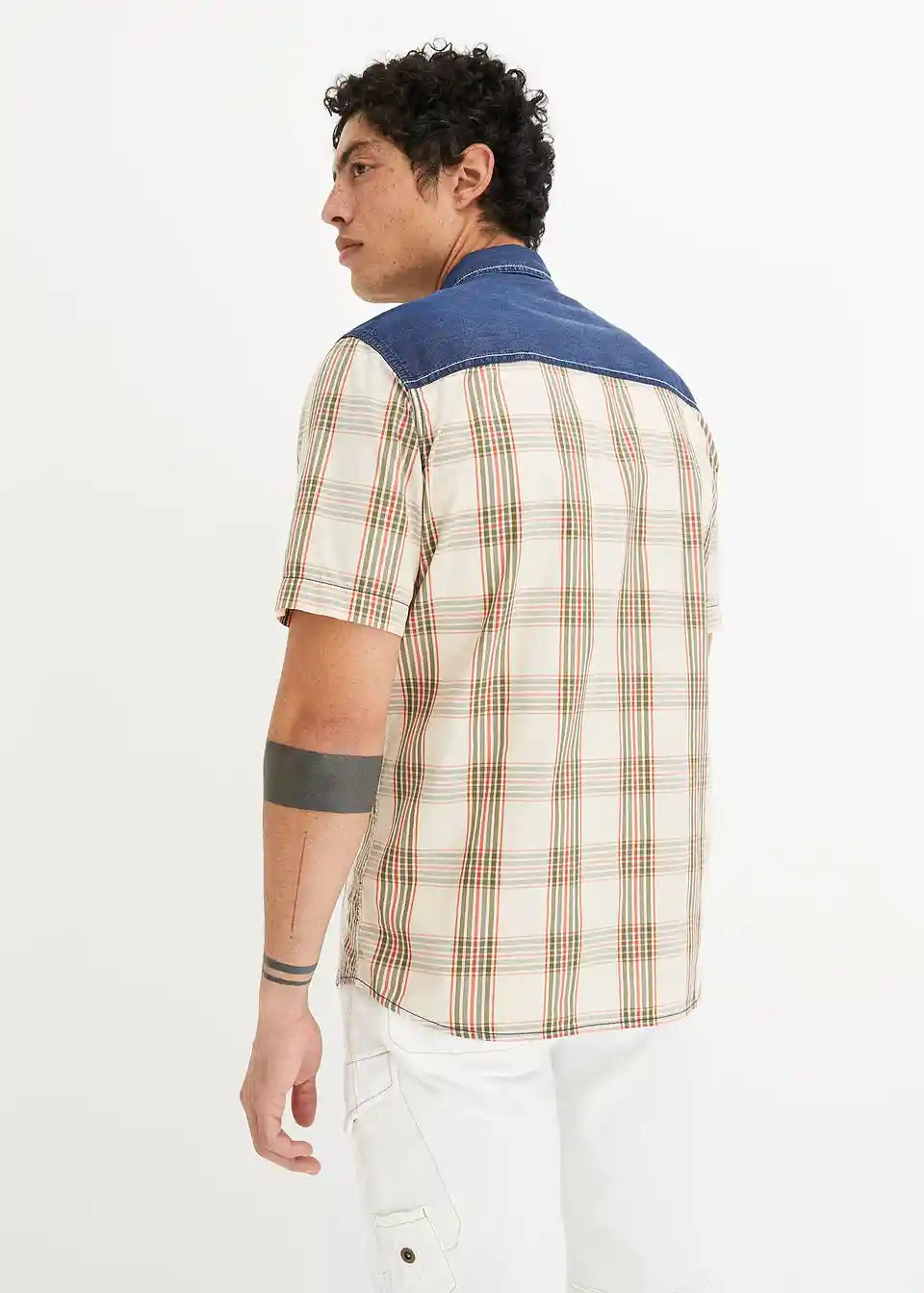 Robustna majica s kratkimi rokavi z denim podrobnostmi v videzu uporabe