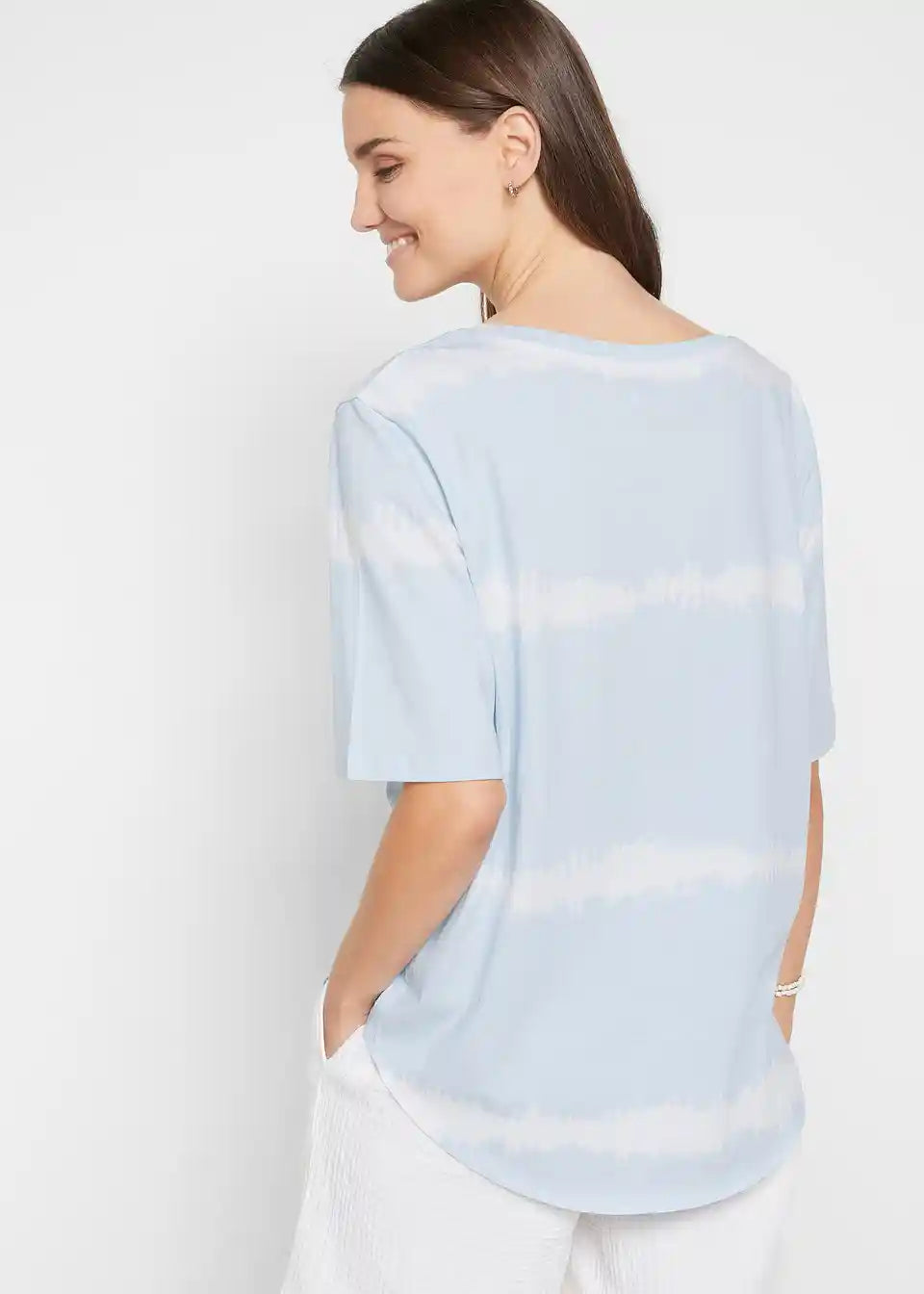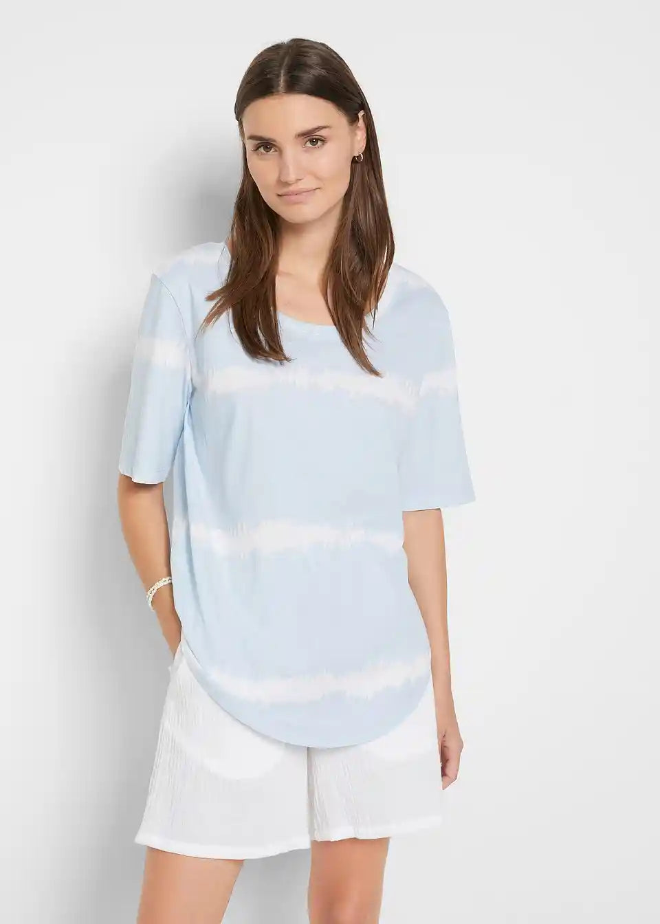 Ležerna majica z okroglim izrezom in zaobljenim robom v modernem batik videzu iz bombaža
