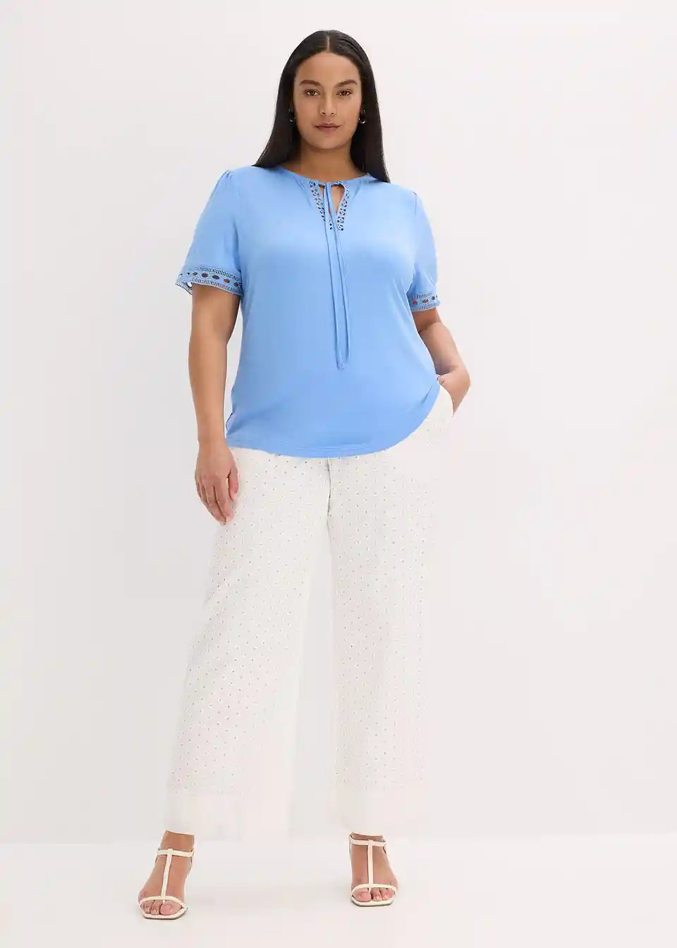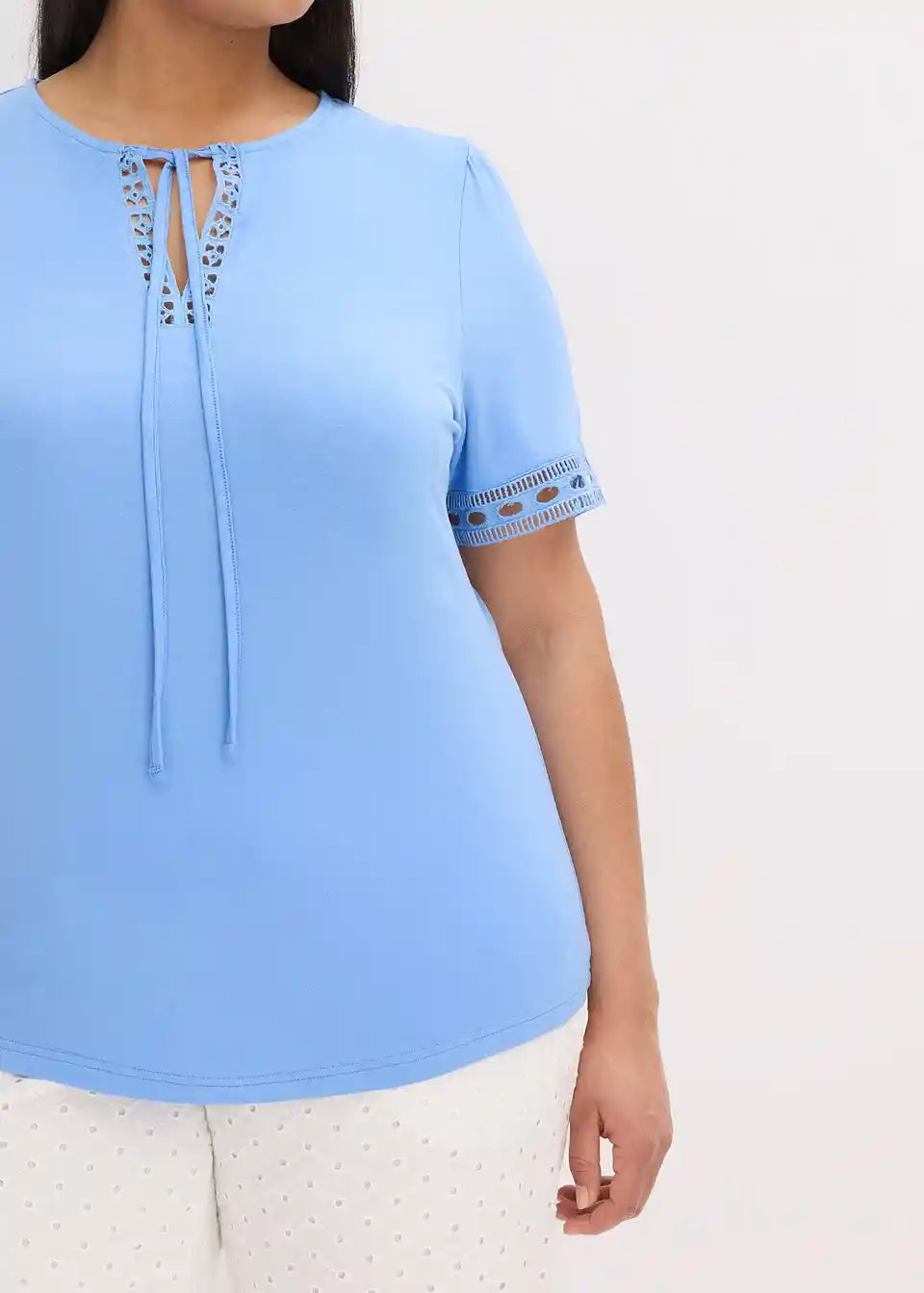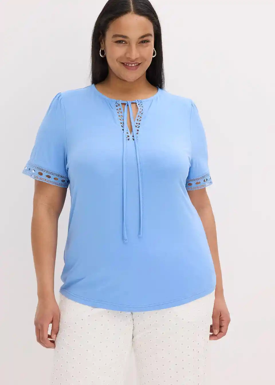 diskretna majica-tunika z elegantnim čipkastim trakom