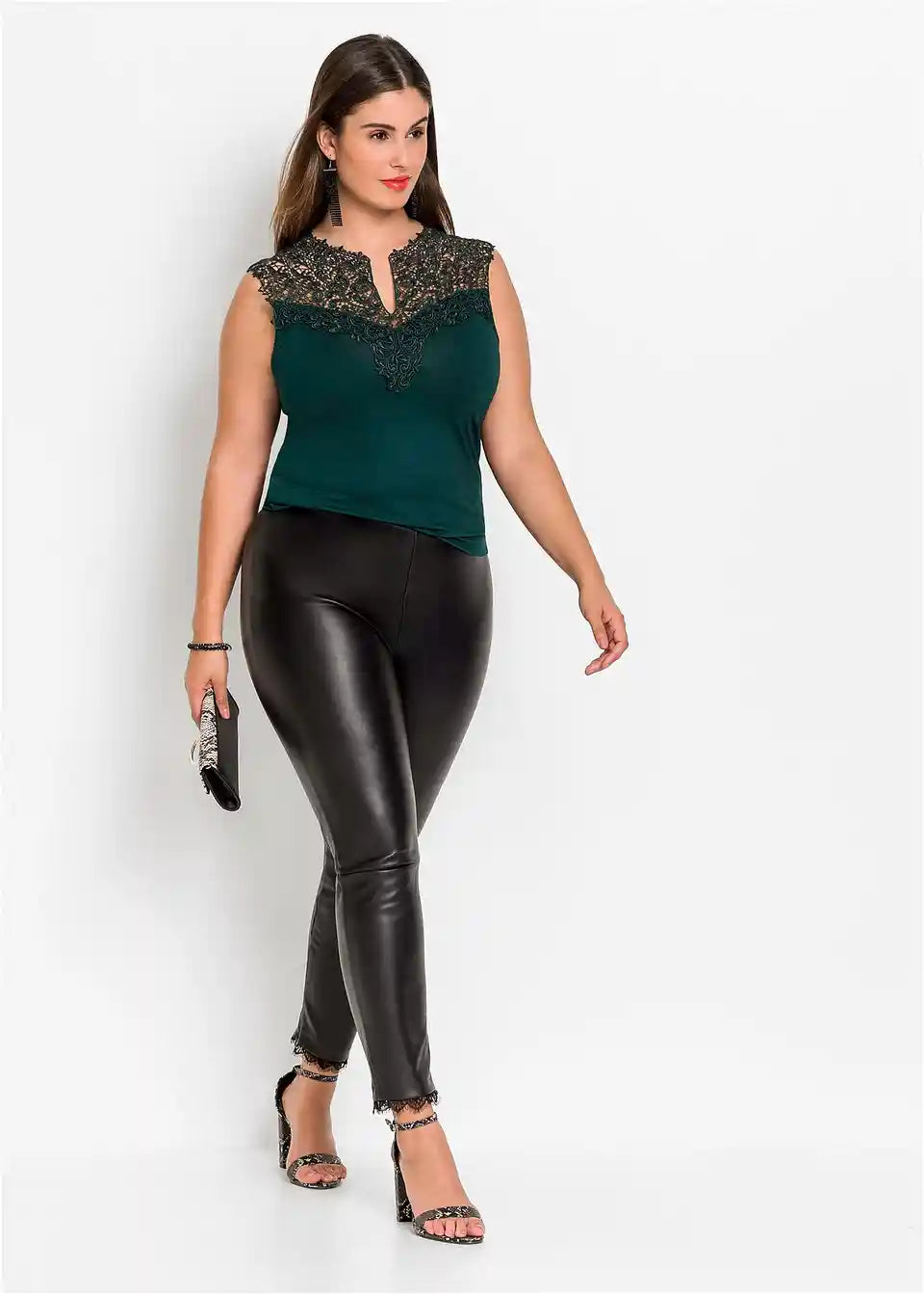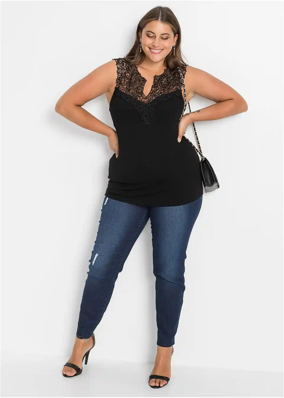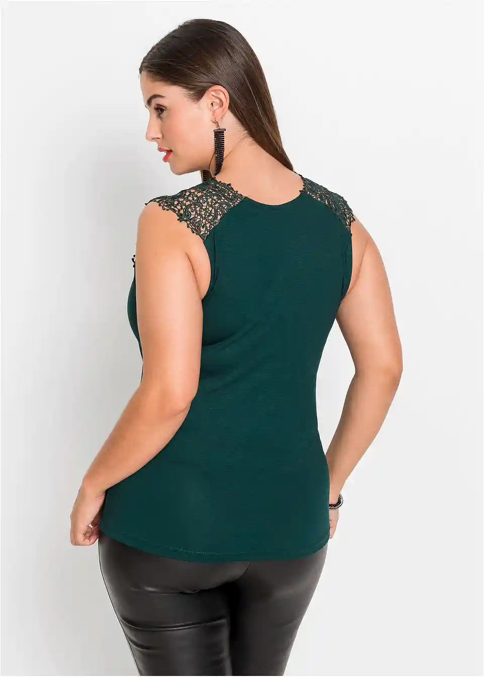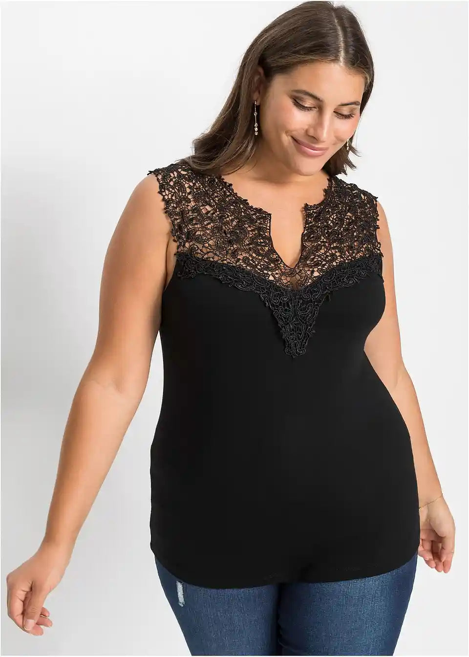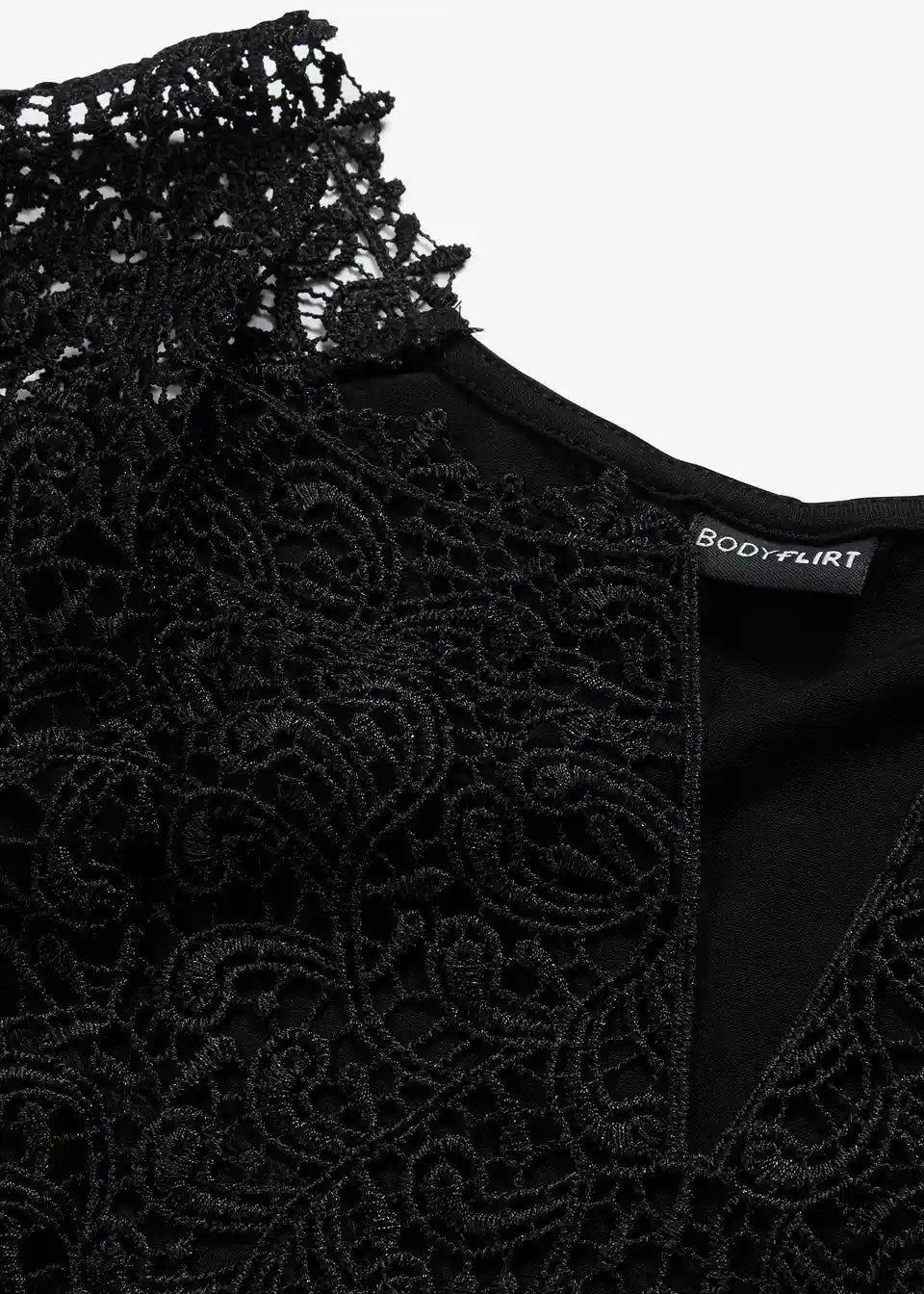 Ta postavo poudarjajoča majica se s čipkastimi detajli privlačno predstavi in daje zgornjemu delu ženstveno noto. Obilna čipkasta dekoracija obsega celotno področje ramen ter dekolteja. Zvečer majica z čipko znamke BODYFLIRT poskrbi za vtis v kombinaciji z legicami ali mini krilom iz imitacije usnja. Podnevi pa pride do izraza pod jopico ali prevelikim puloverjem z V-izrezom v hladnejših dneh.