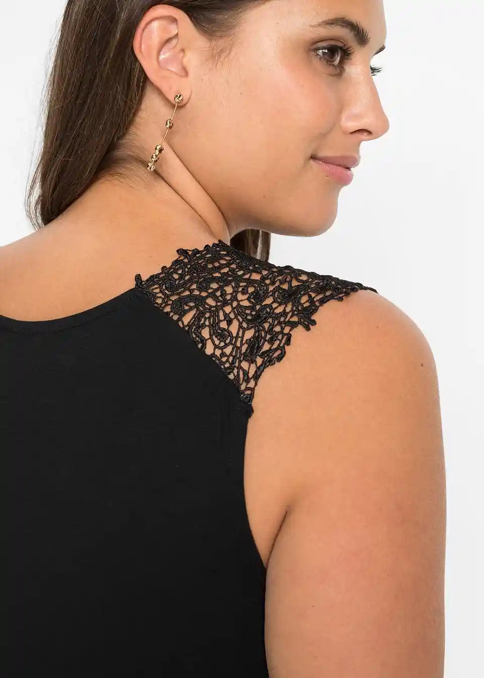 Material:zgornji material: 95% viskoza (certificirana), 5% elastan, čipka: 100% poliester