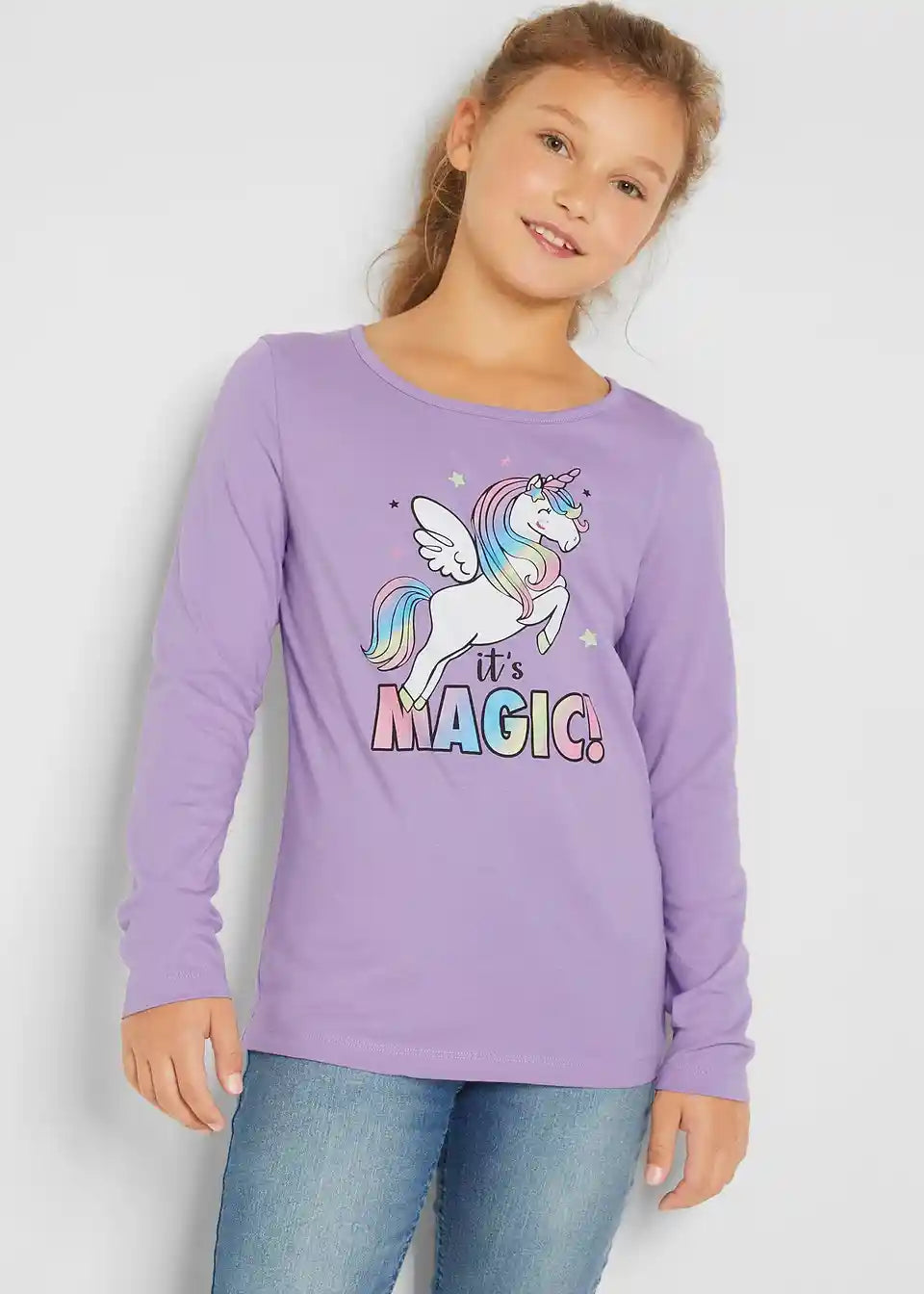 Čarobna majica za deklice v dvojnem pakiranju. Z osupljivim potiskom na sprednji strani in dolgimi rokavi.