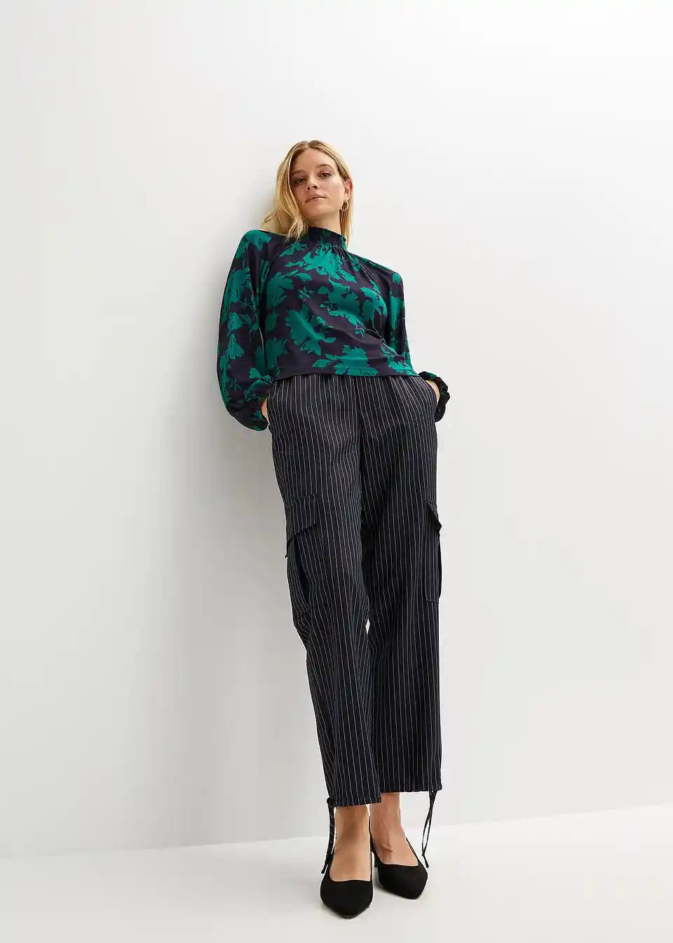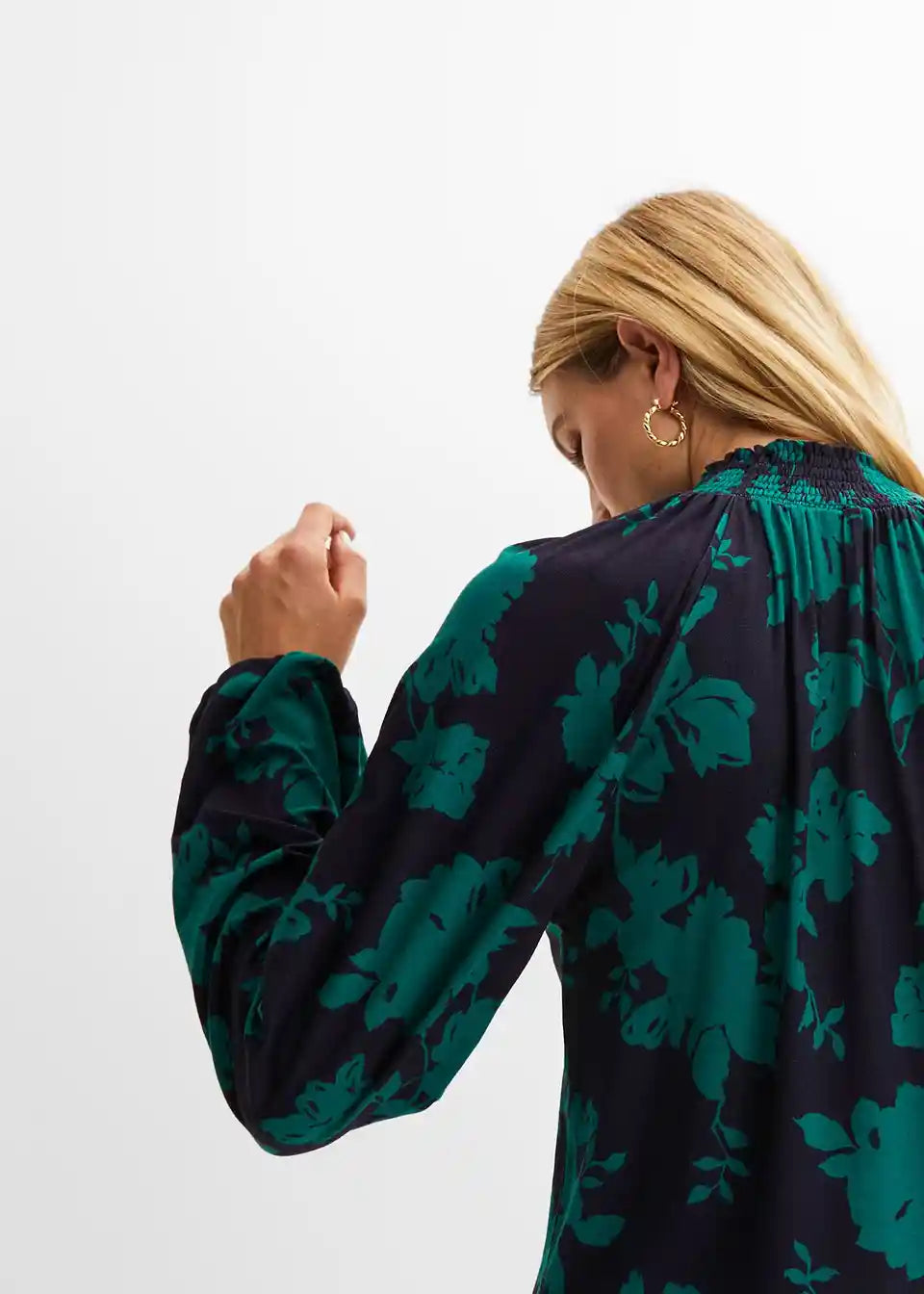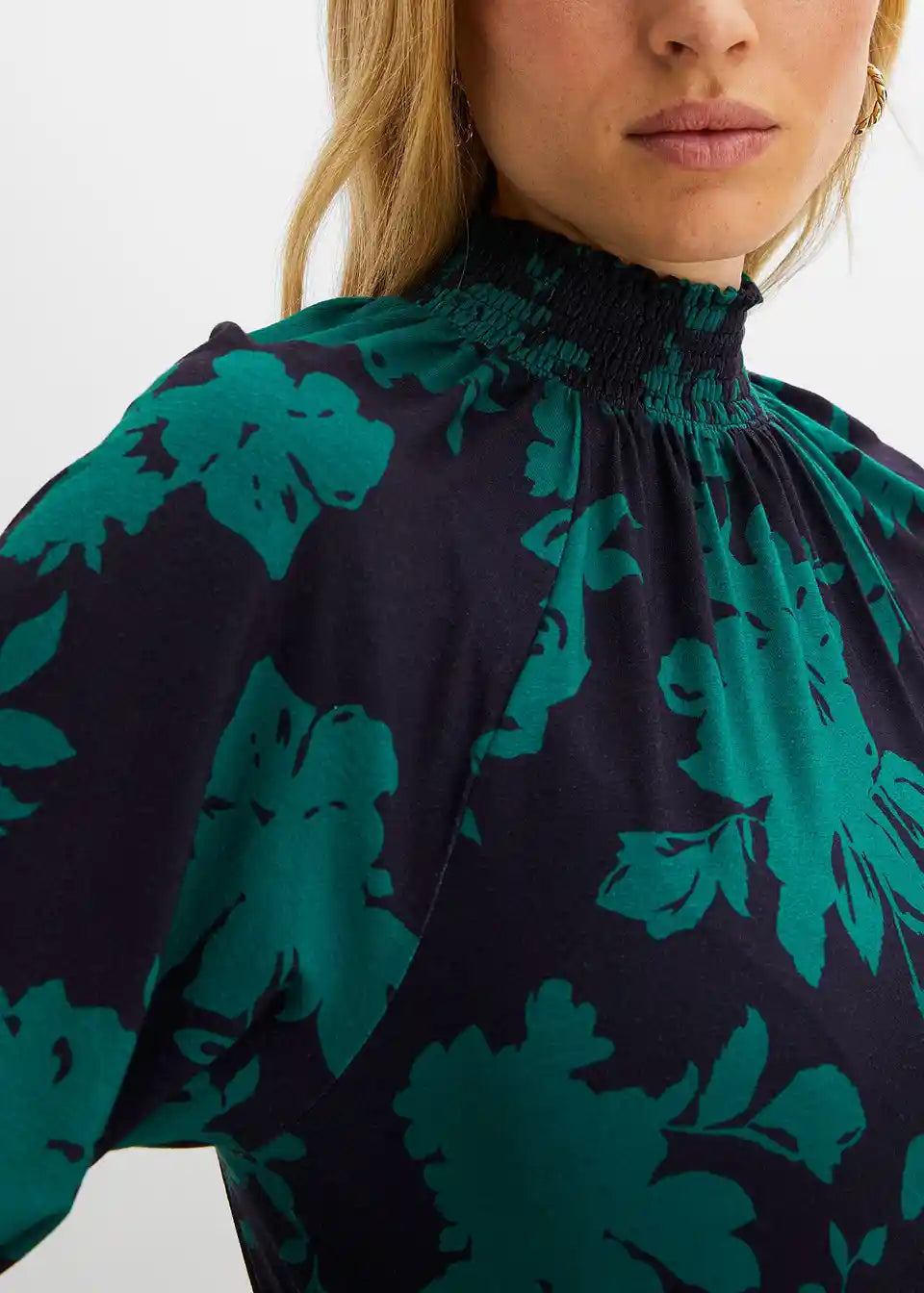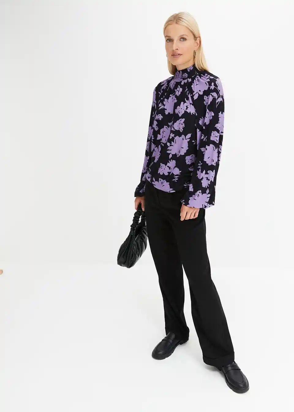 Elegantna majica z dolgimi rokavi, z nabranim ovratnikom in raglanskimi rokavi s čudovitim potiskom