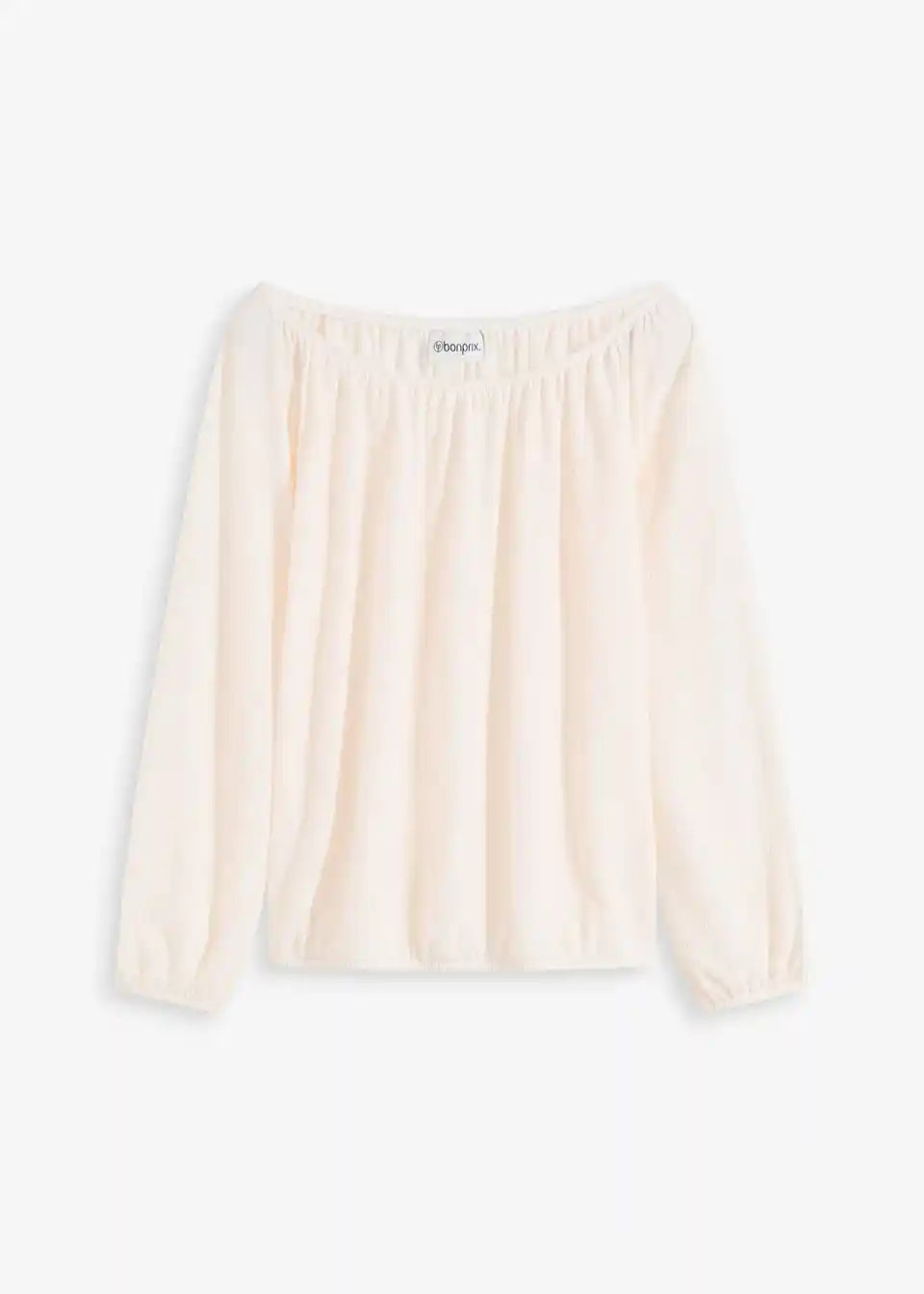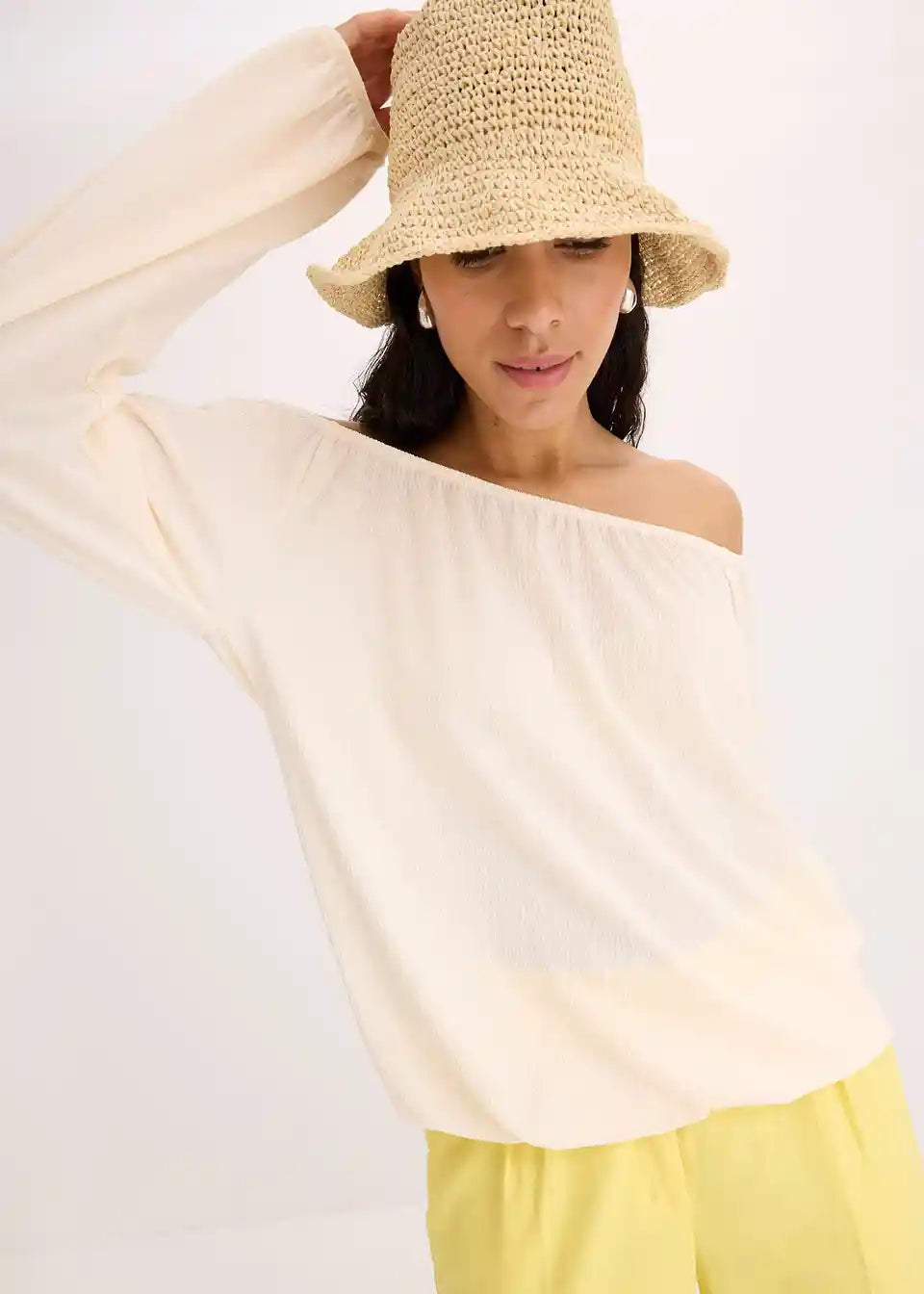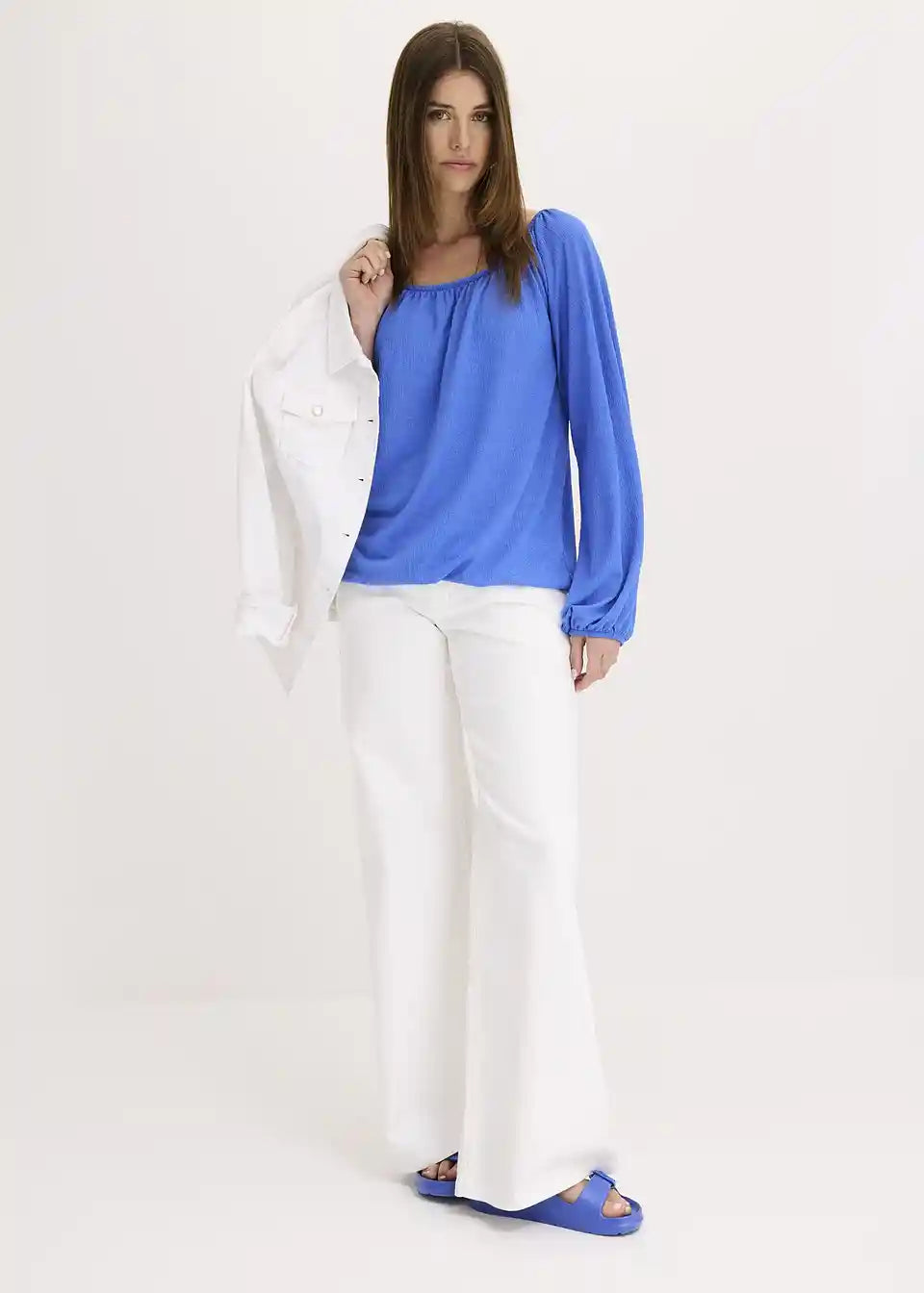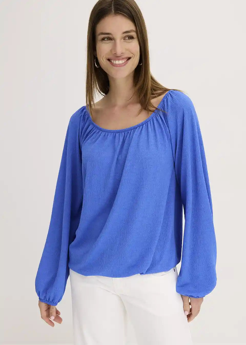 Mehko padajoča majica z dolgimi rokavi in širokim izrezom