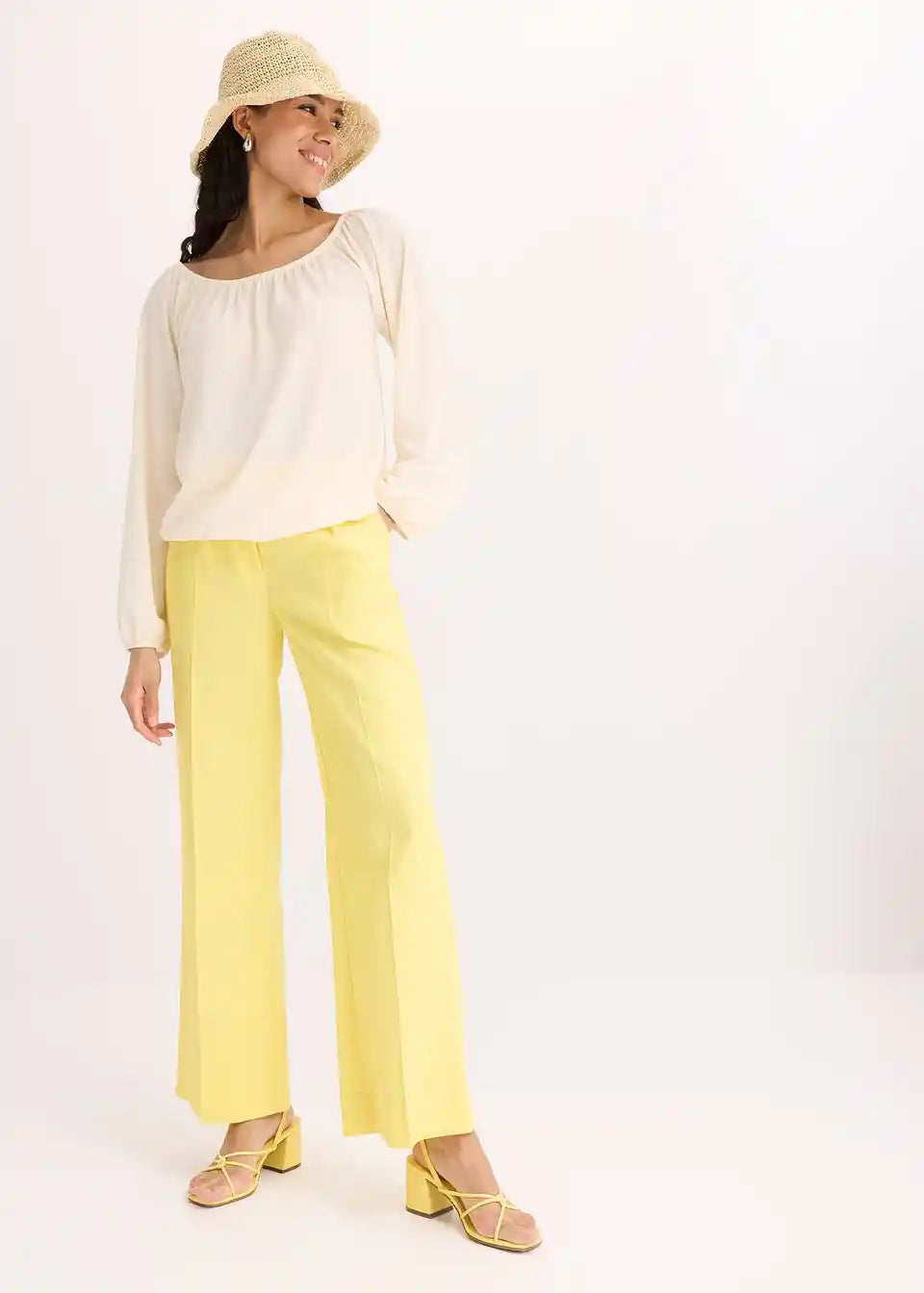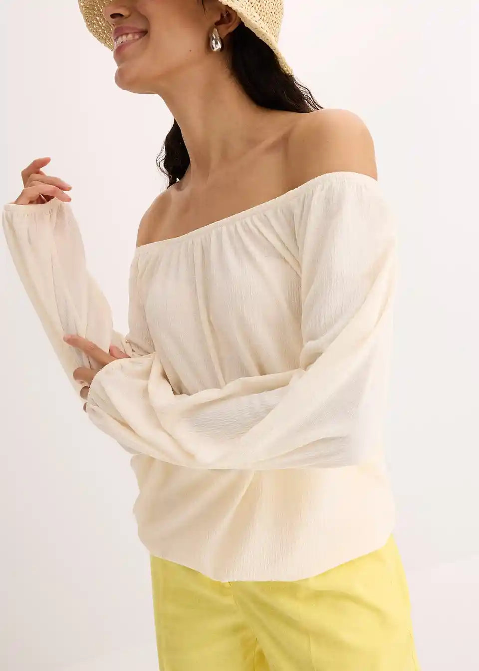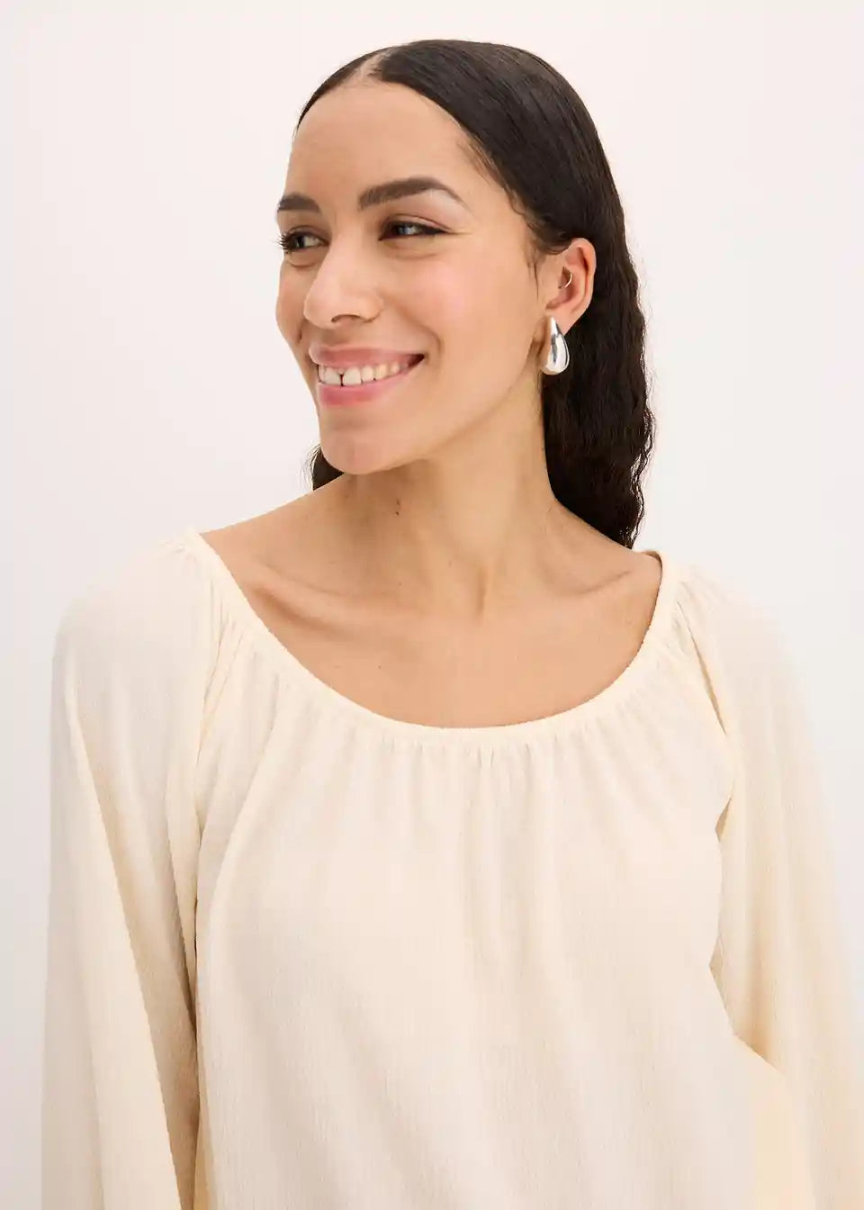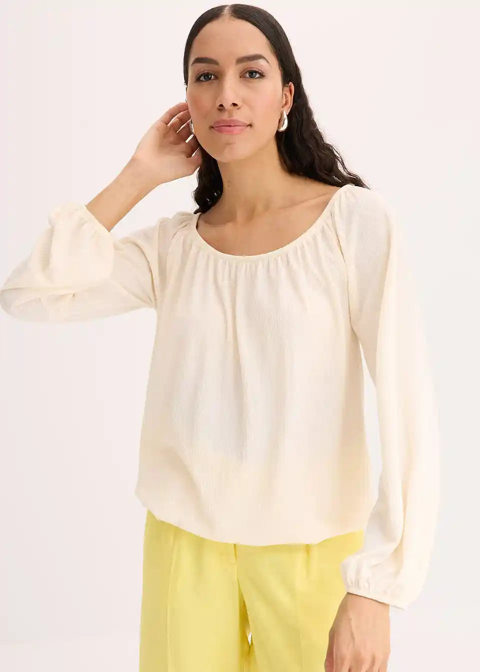 Mehko padajoča majica z dolgimi rokavi in širokim izrezom