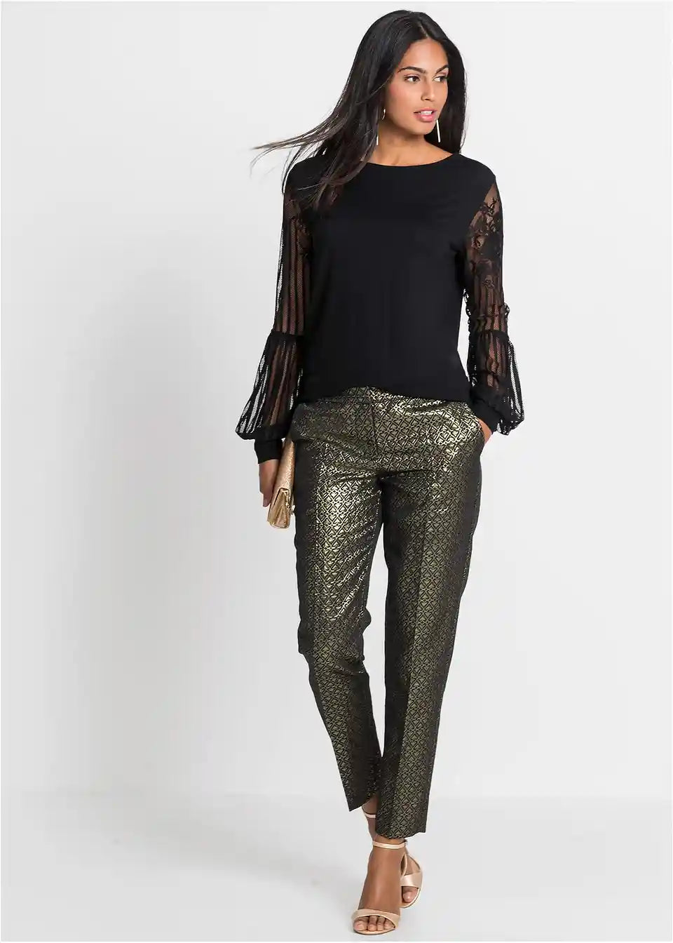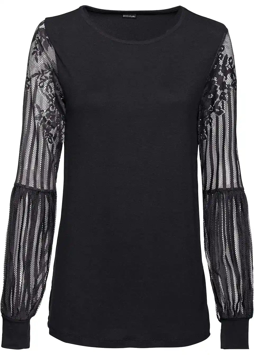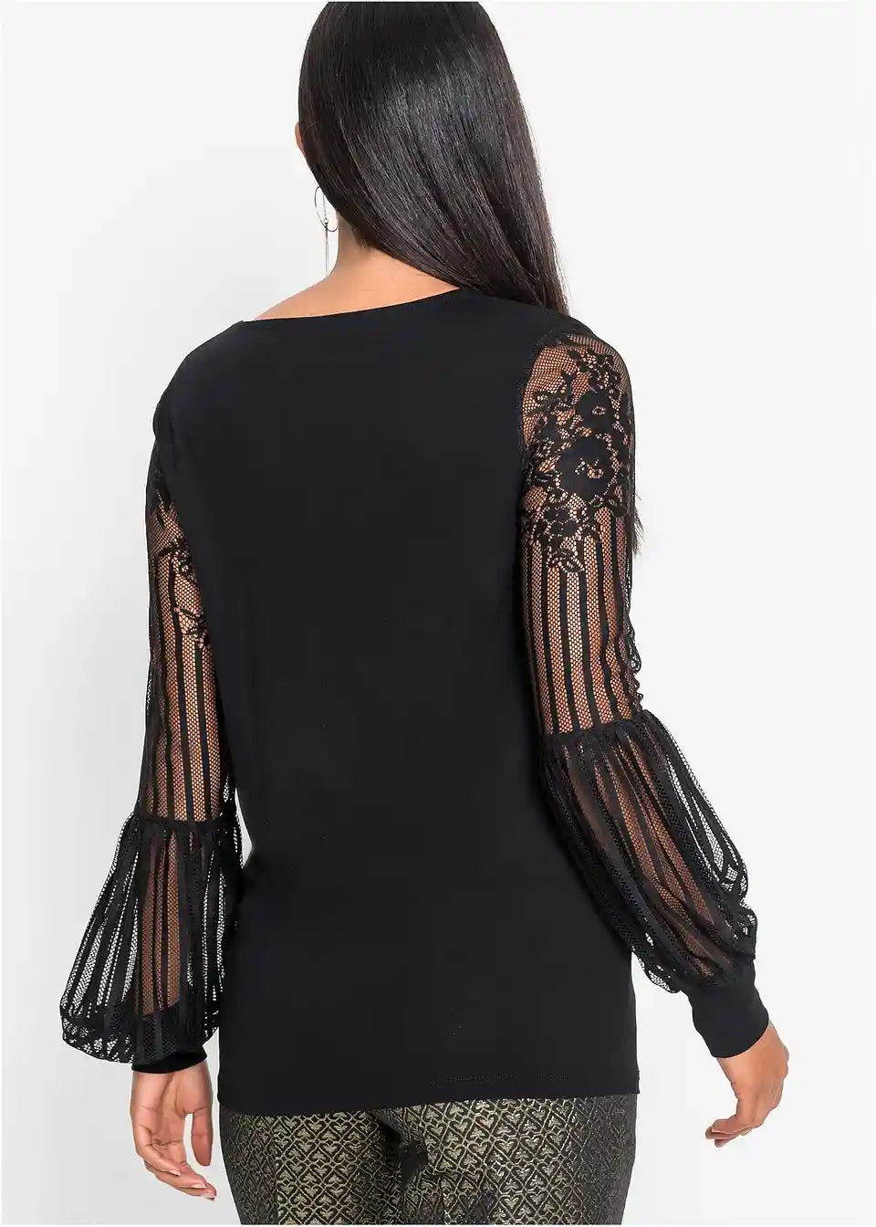 Elegantna majica z dolgimi rokavi in balonastimi rokavi iz čipke