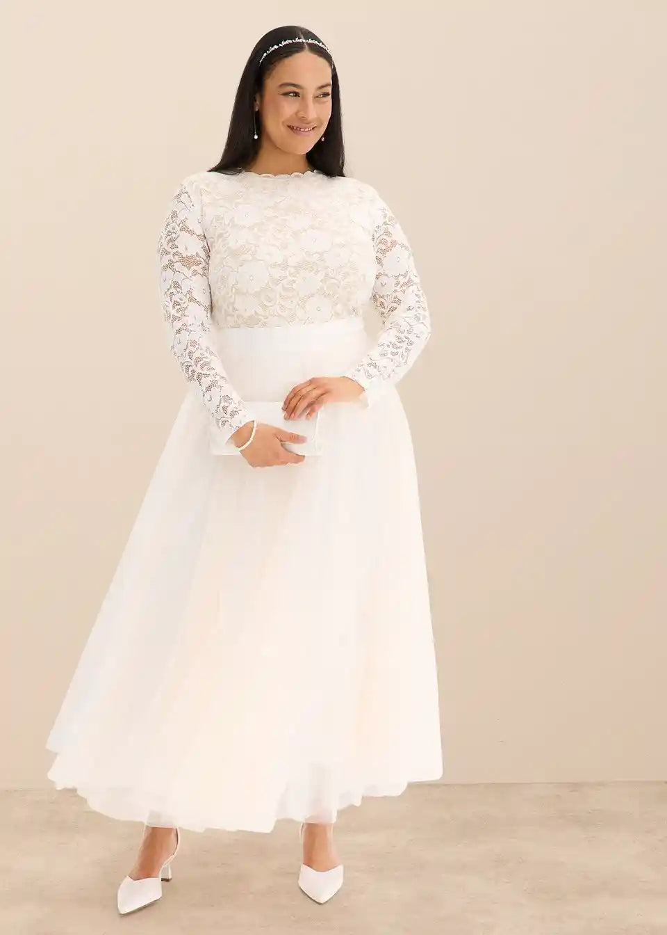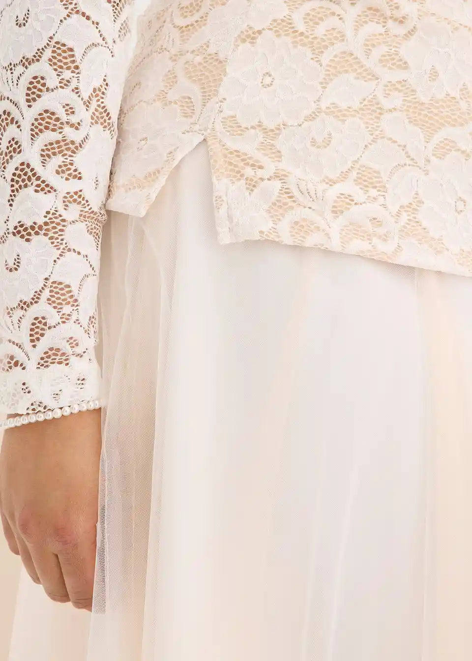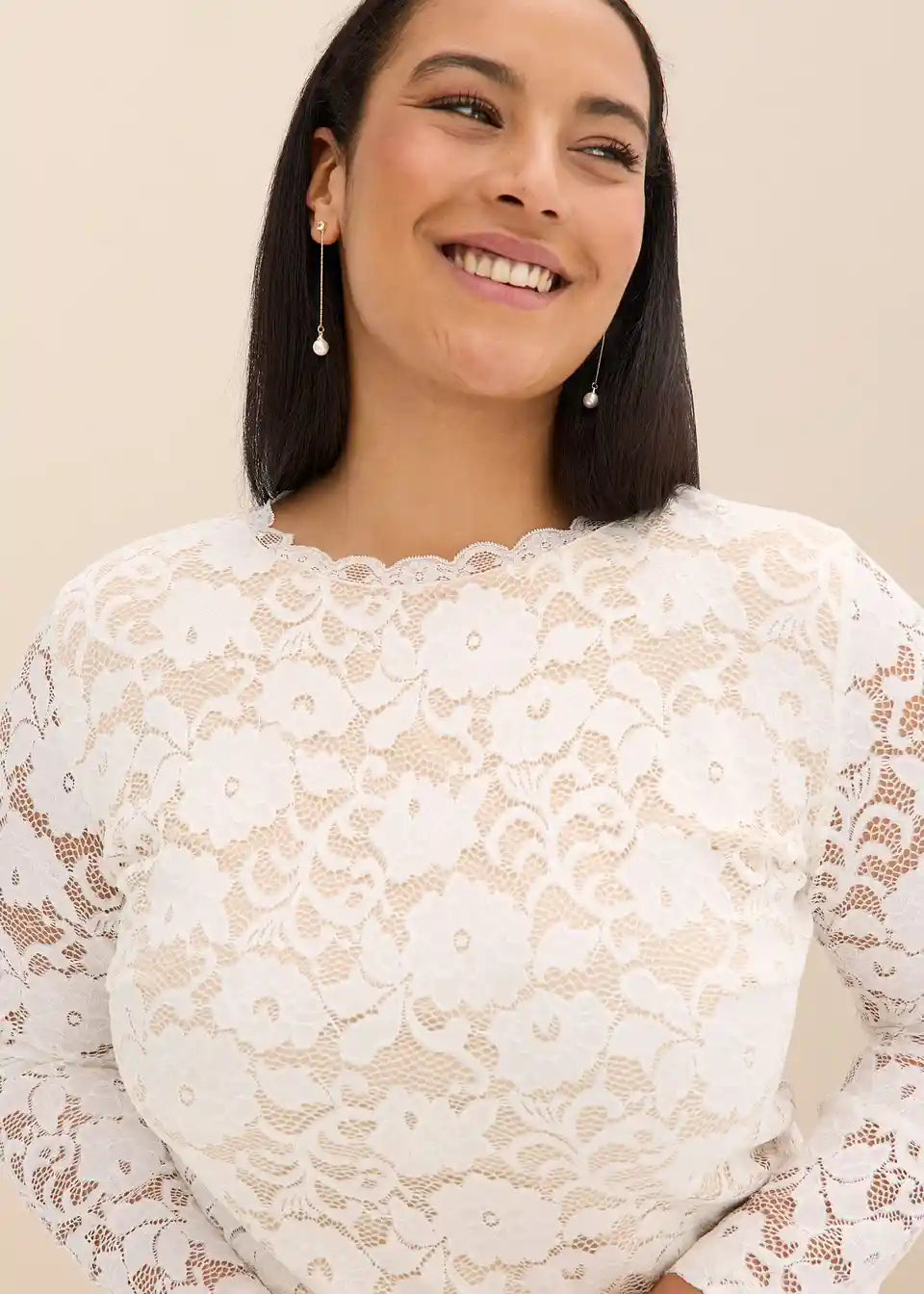 Romantična in ženstvena: majica z dolgimi rokavi iz čipke z romantičnim cvetličnim vzorcem in podlogo v barvi kože