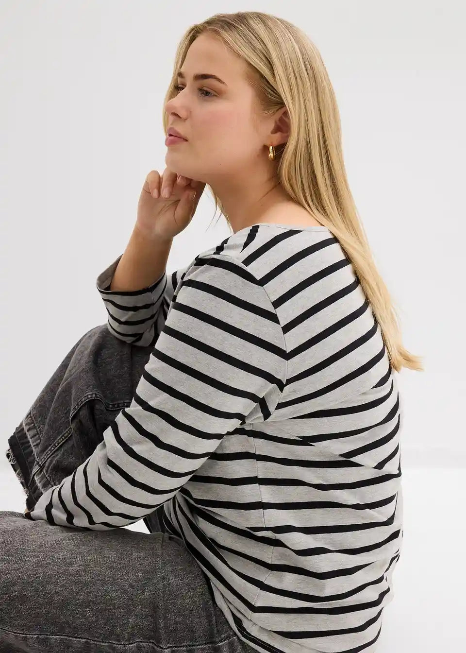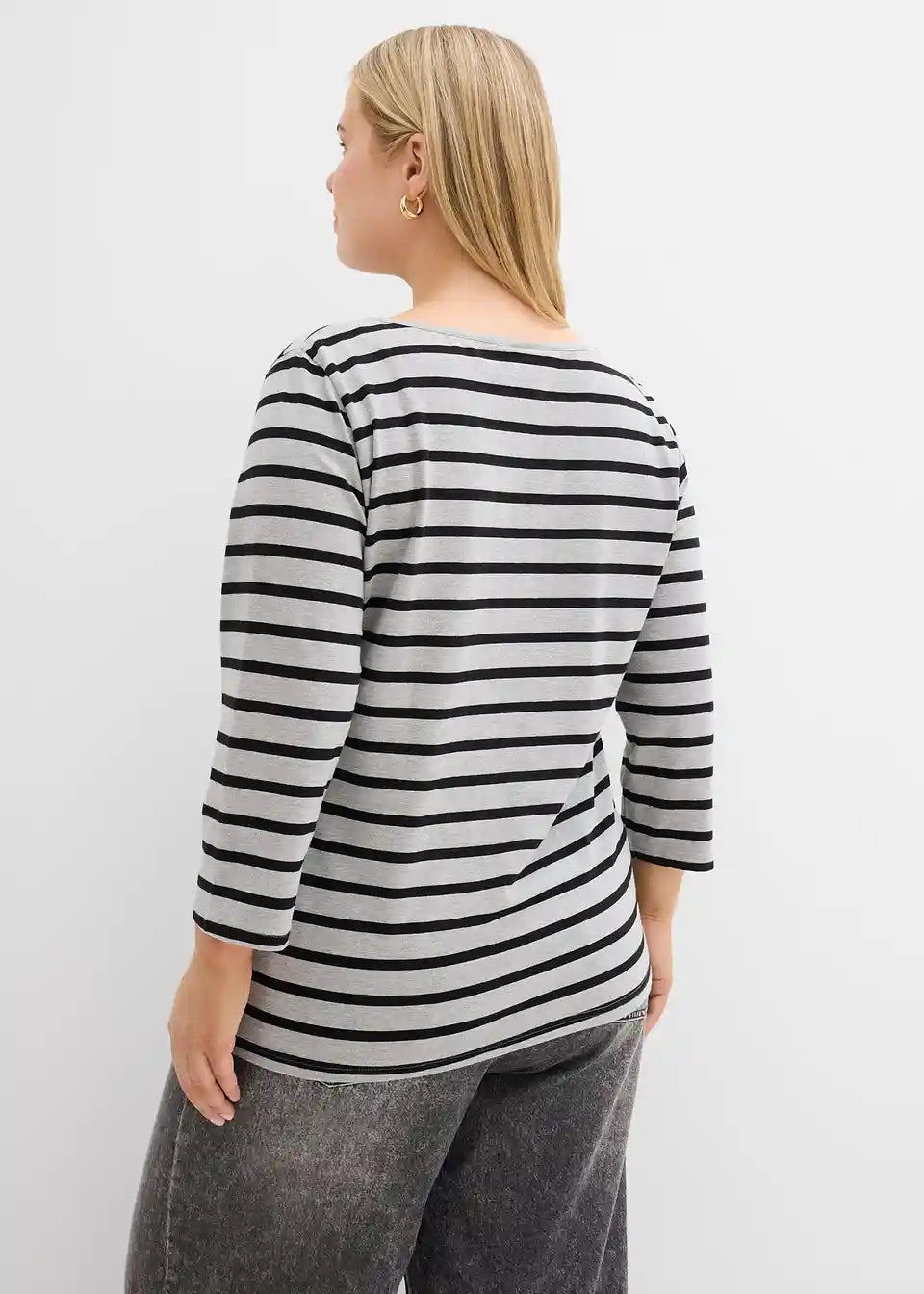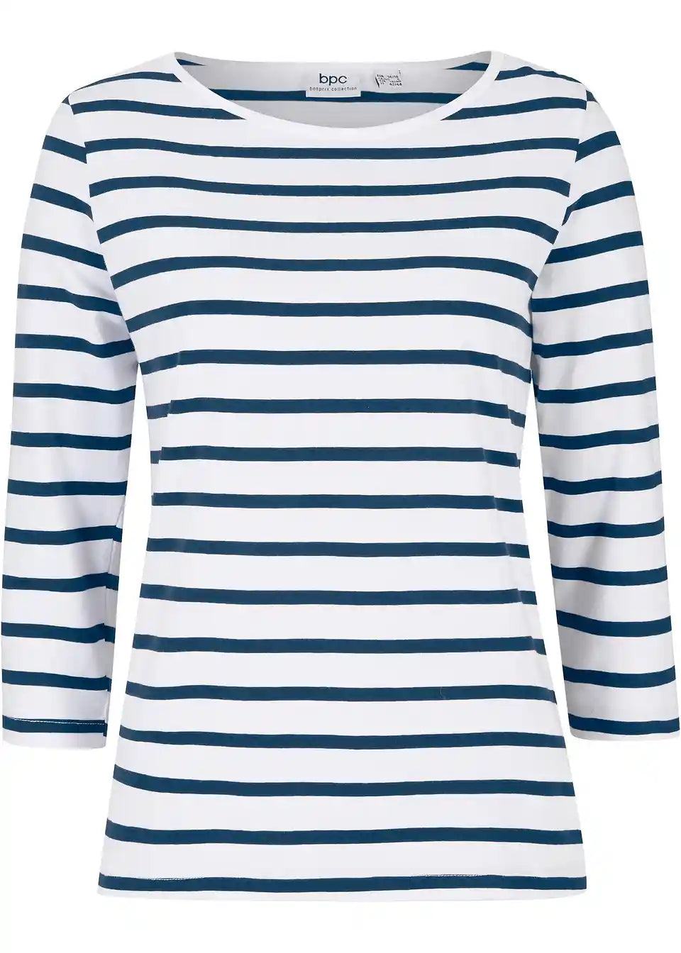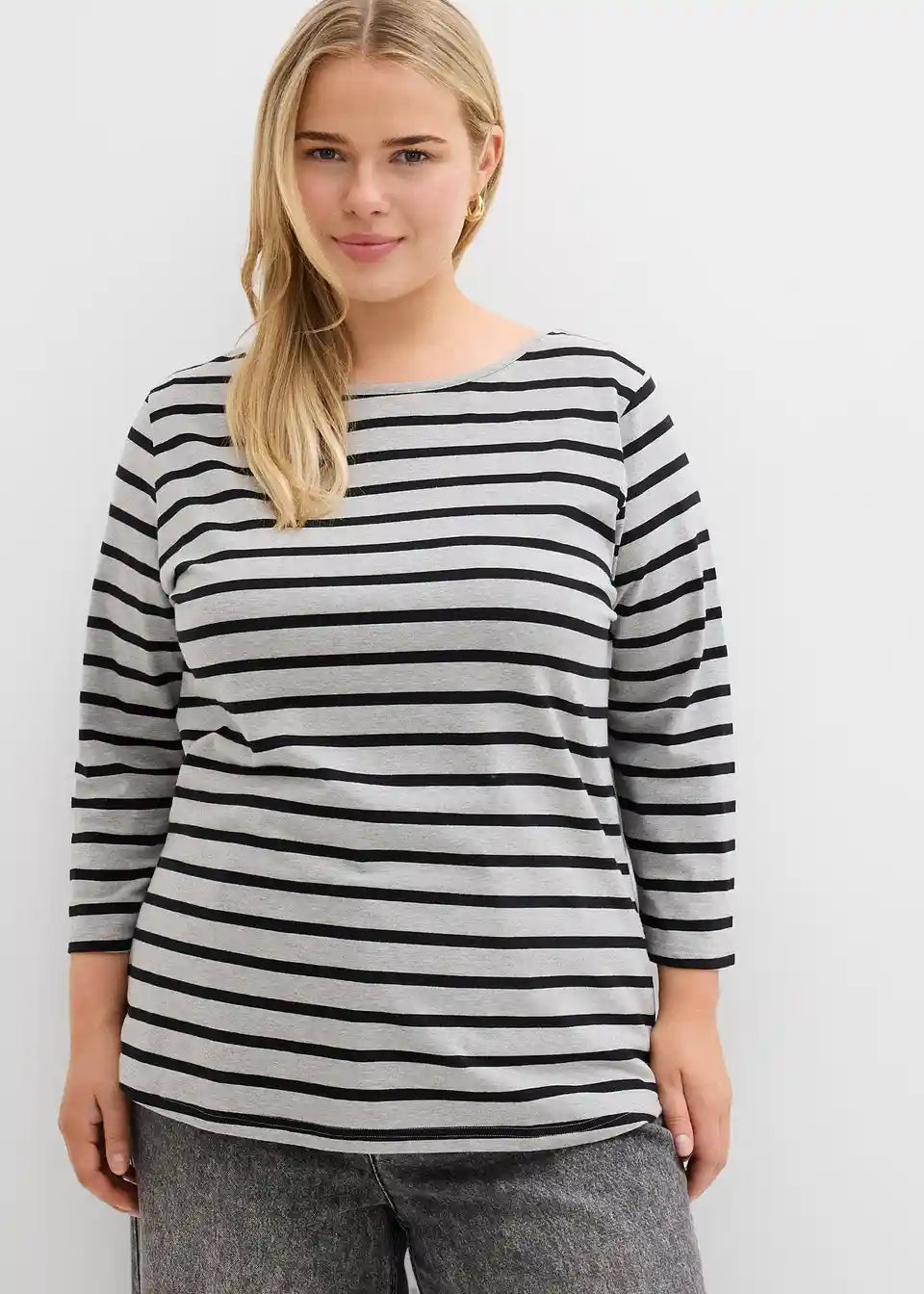 Udobna basic bombažna raztegljiva majica z ladijskim izrezom