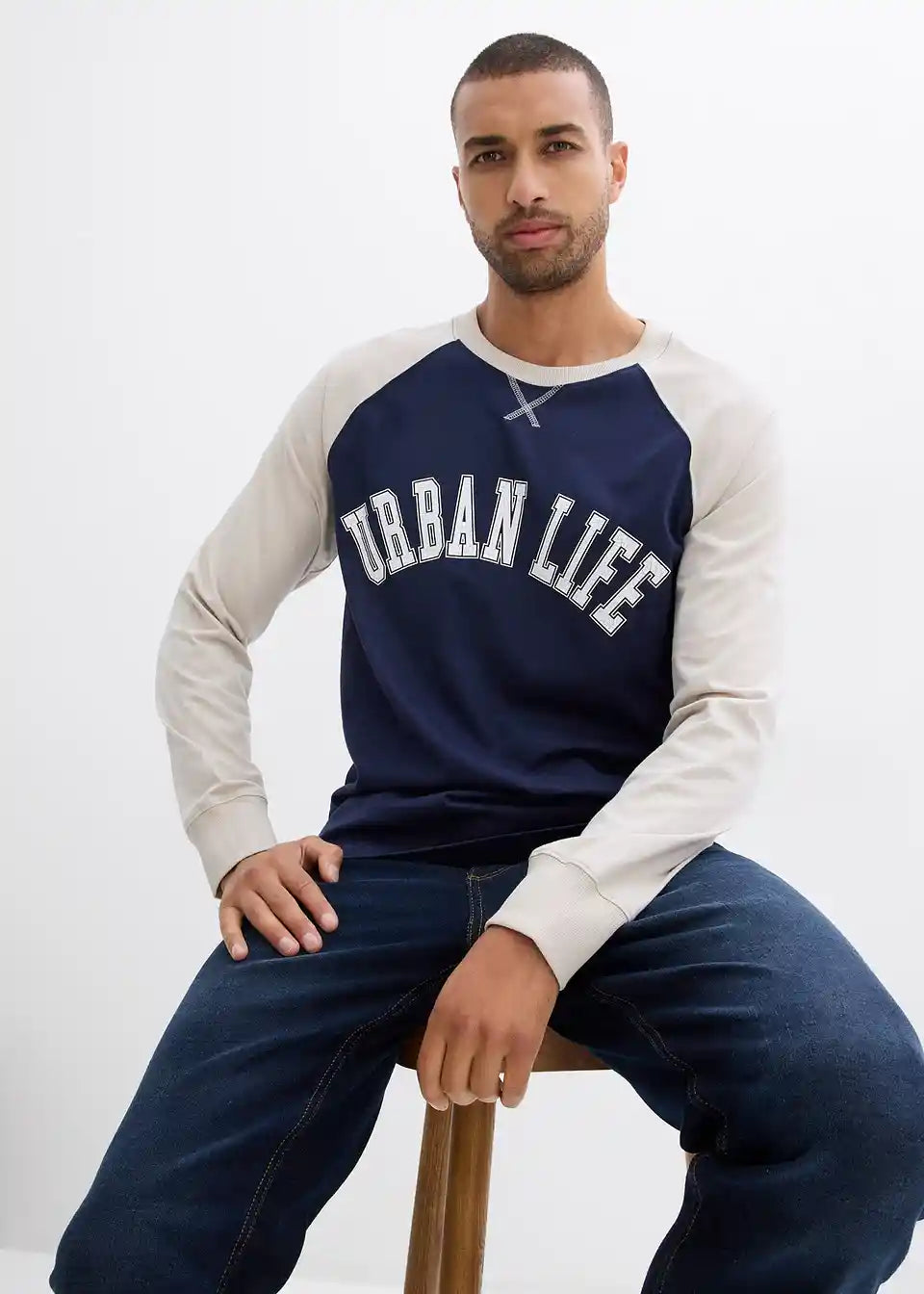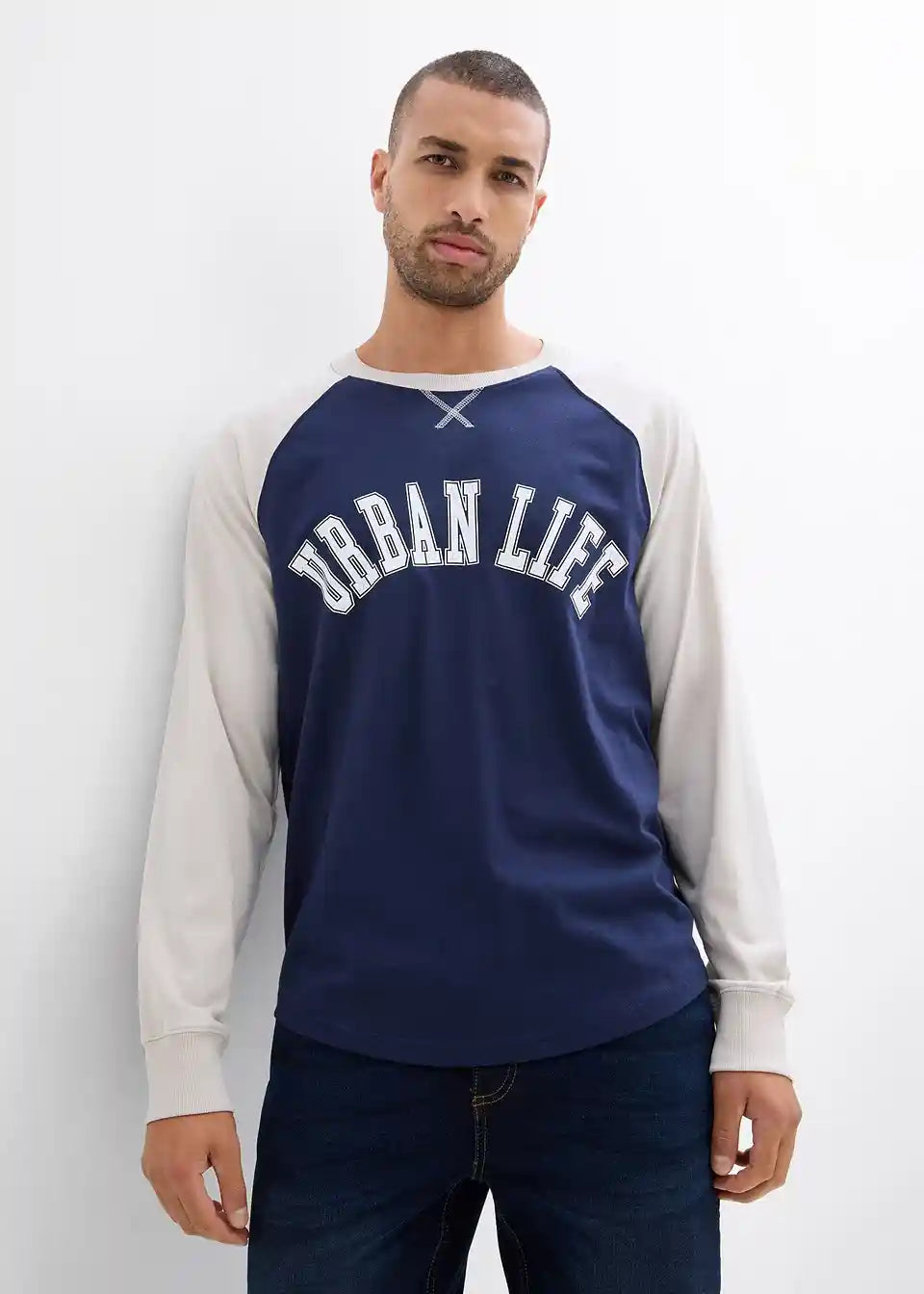 Moderna majica z dolgimi raglanskimi rokavi in potiskom spredaj